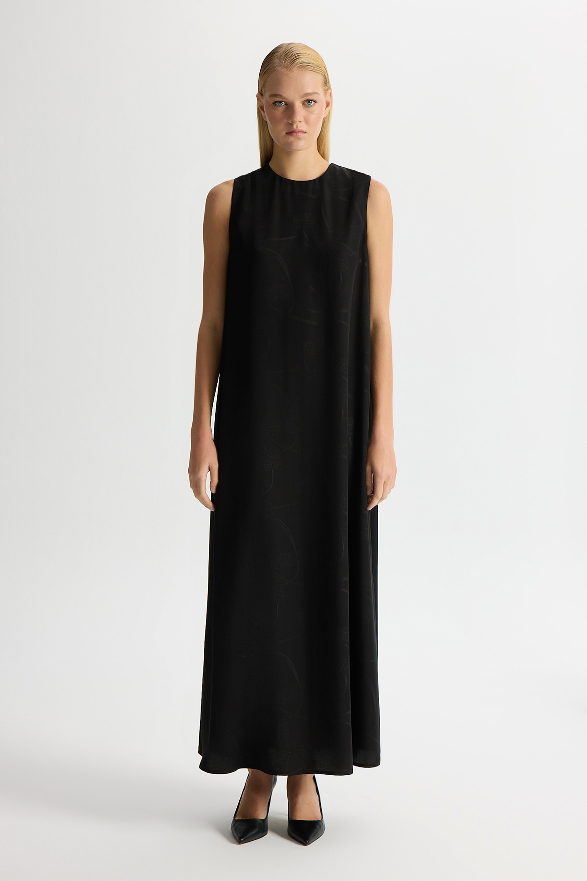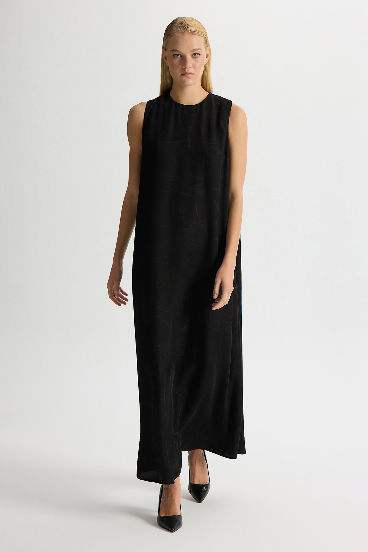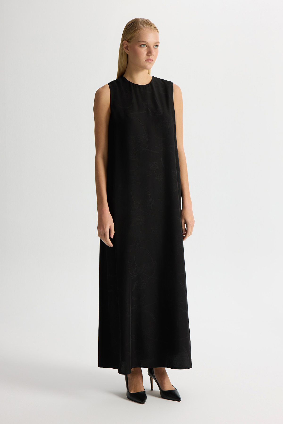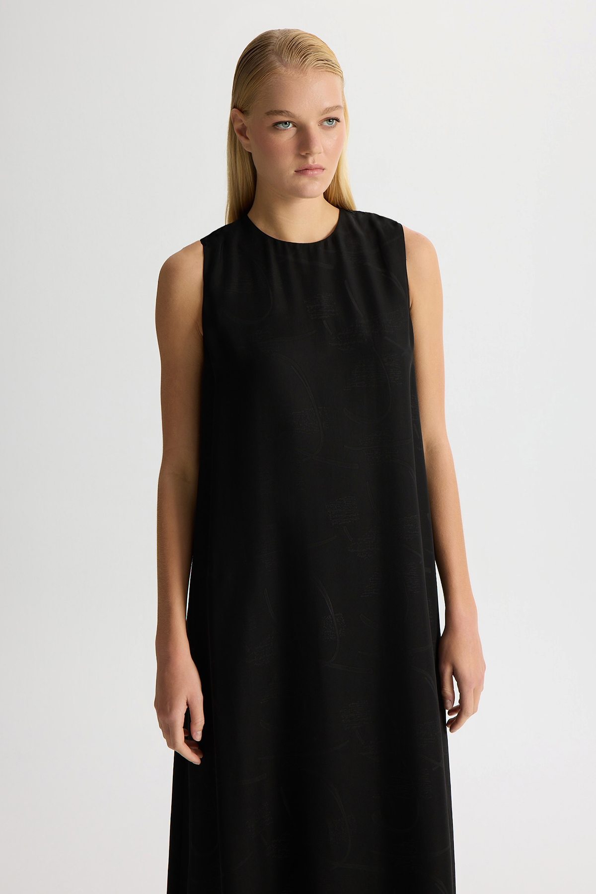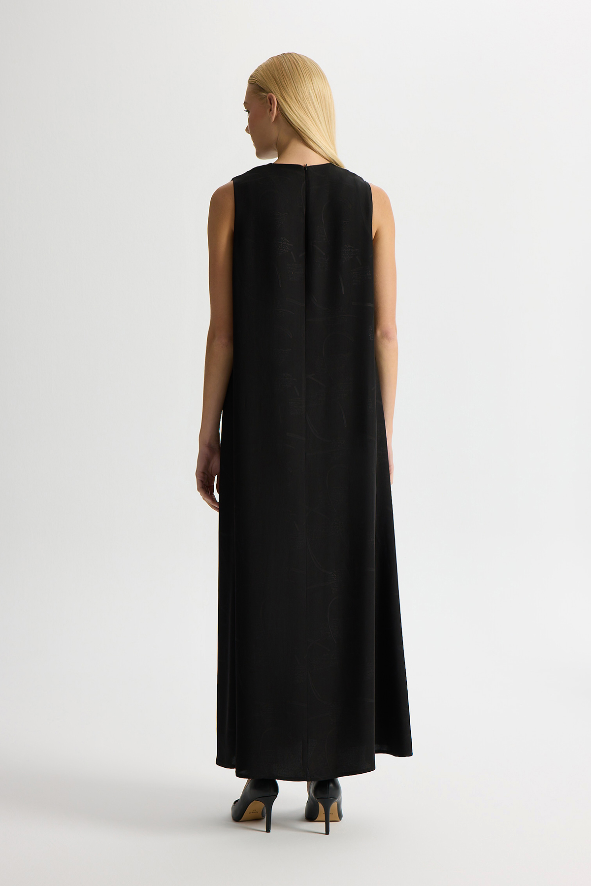 Jakarlı Kolsuz Elbise Siyah