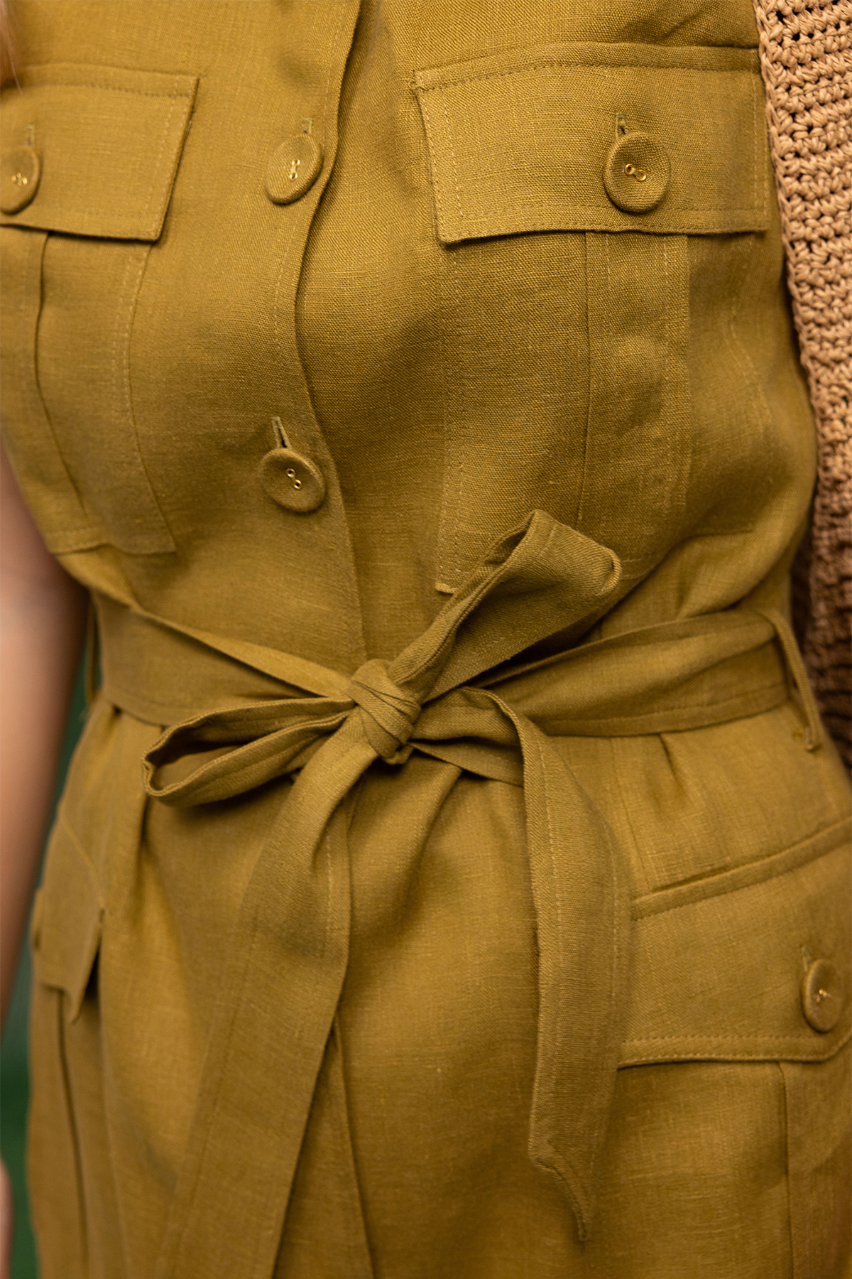 Kargo Cepli Uzun Keten Yelek Amber