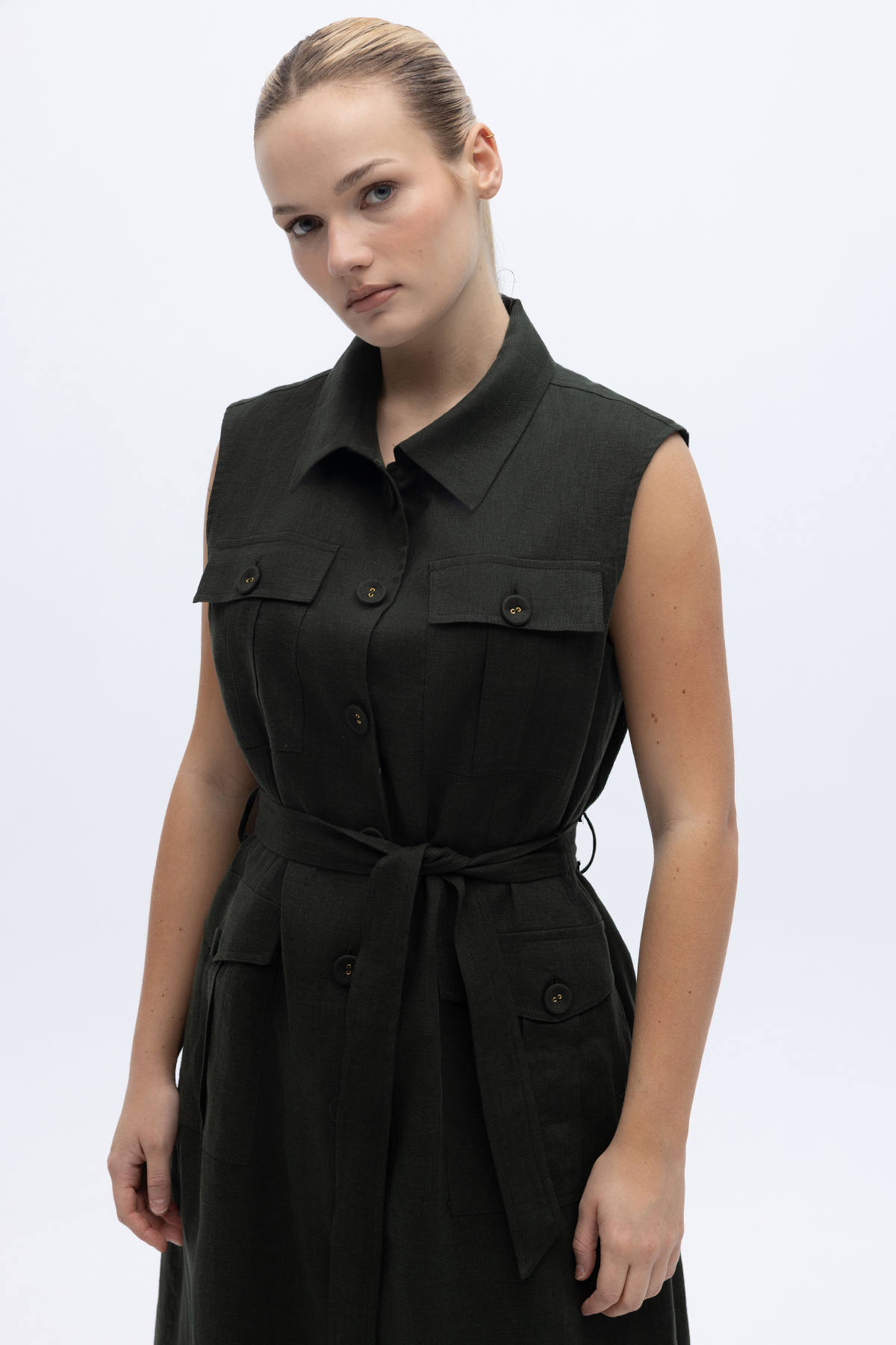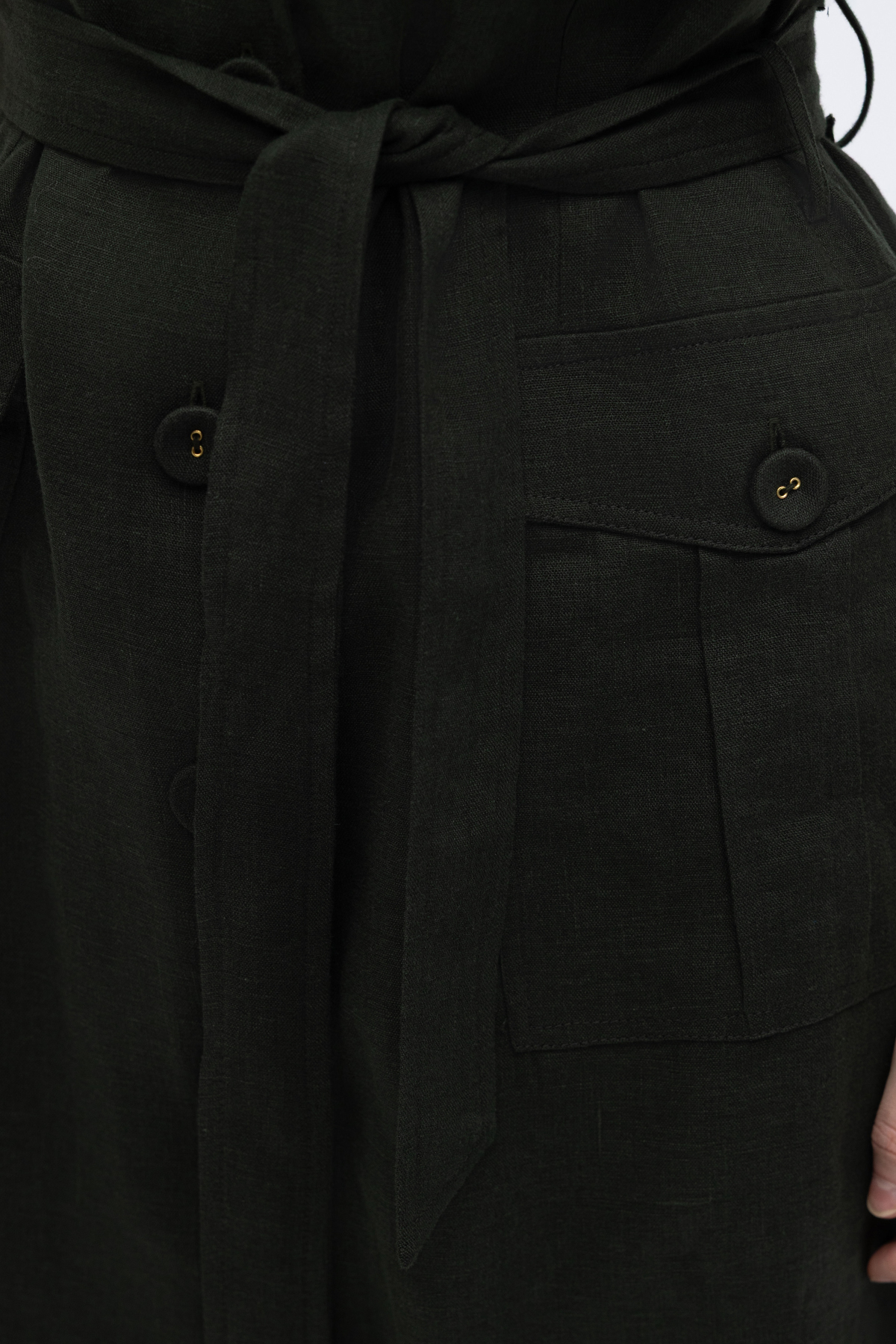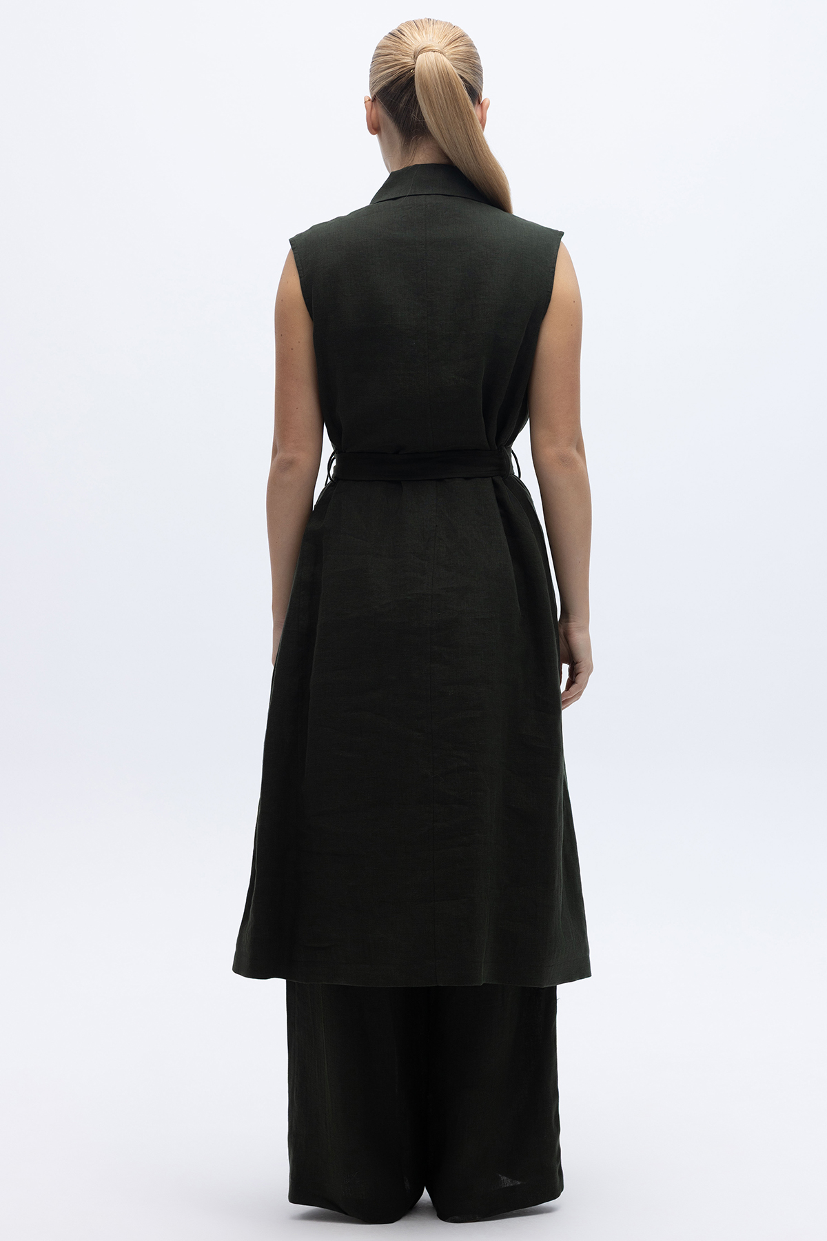 Kargo Cepli Uzun Keten Yelek Haki