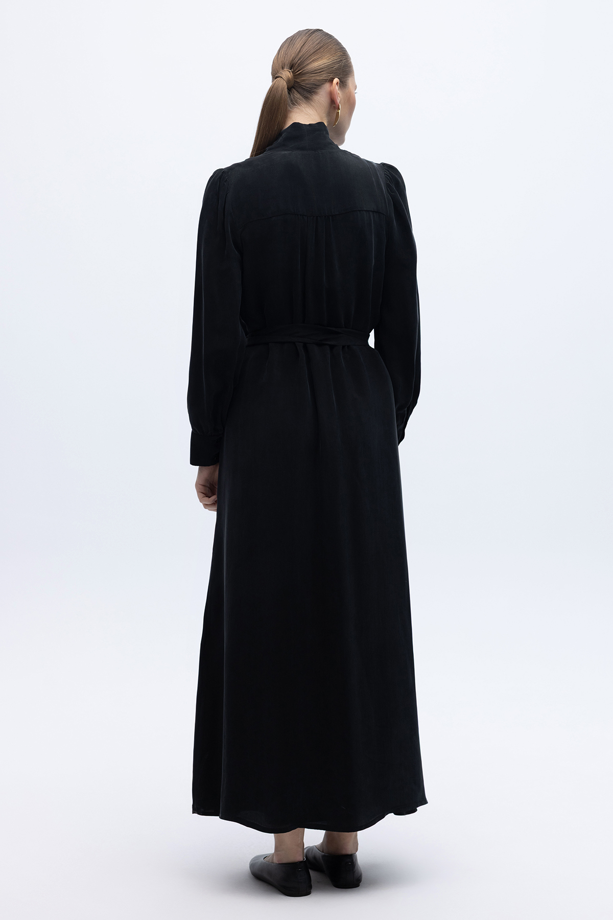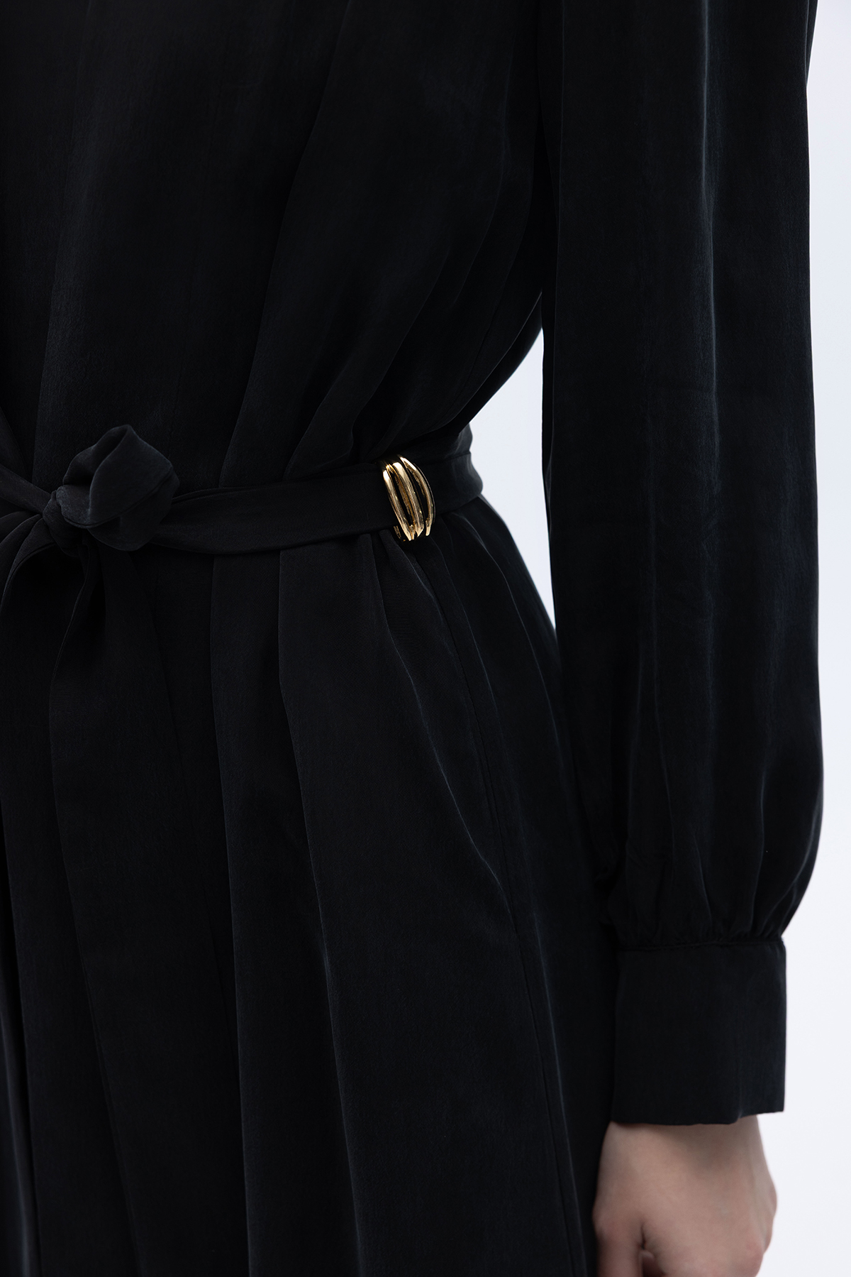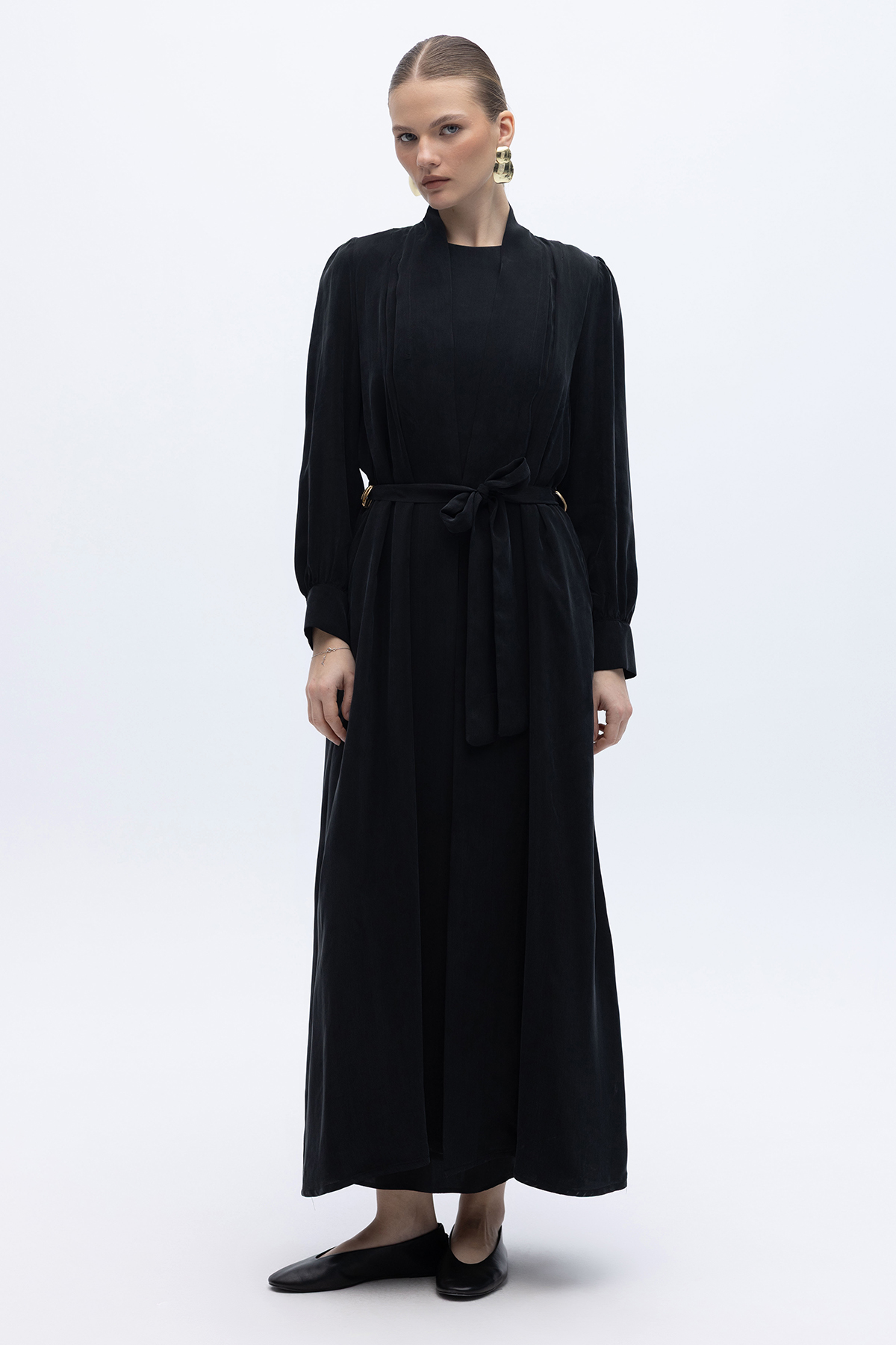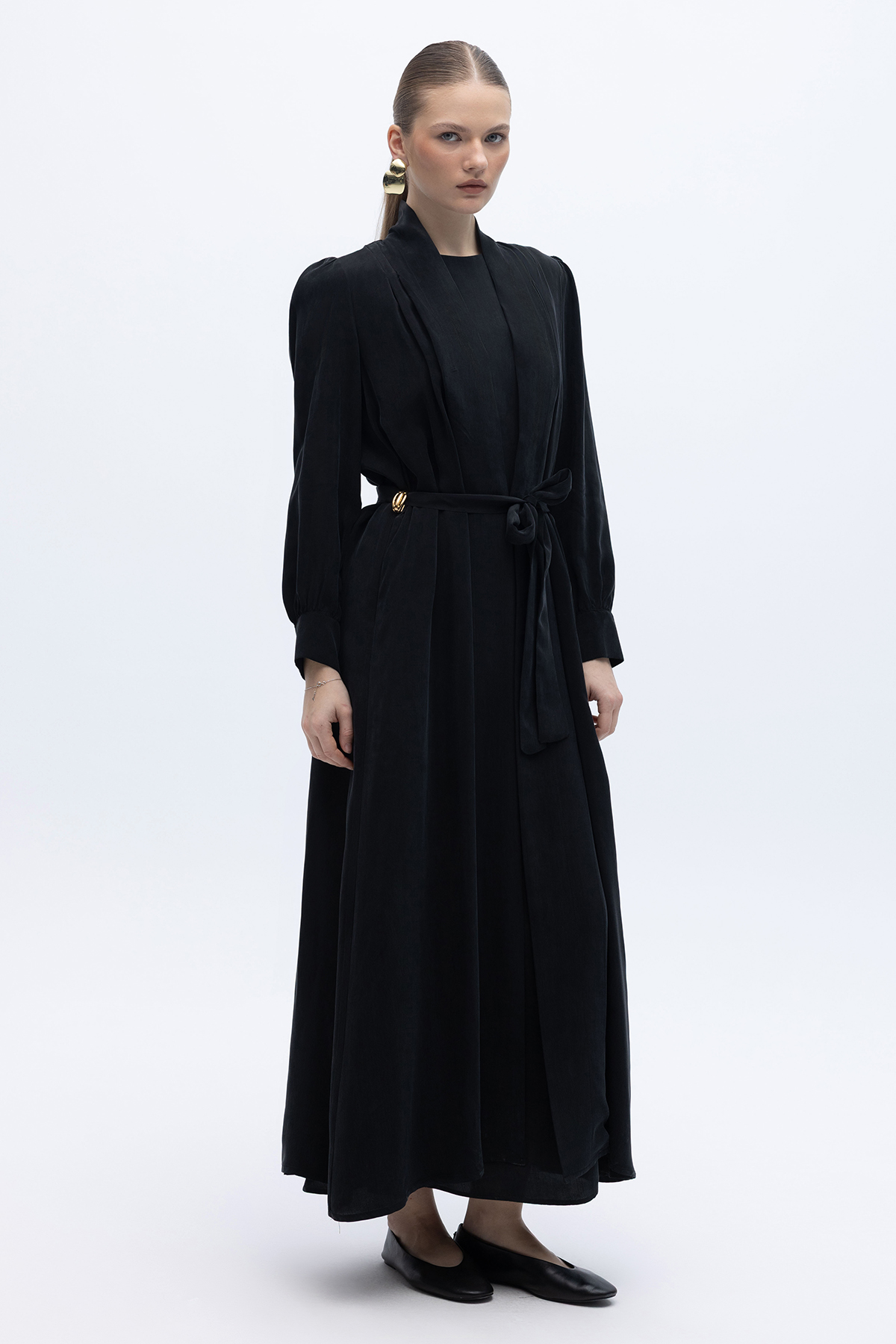 Kemer Tokalı Uzun Cupro Ceket Siyah