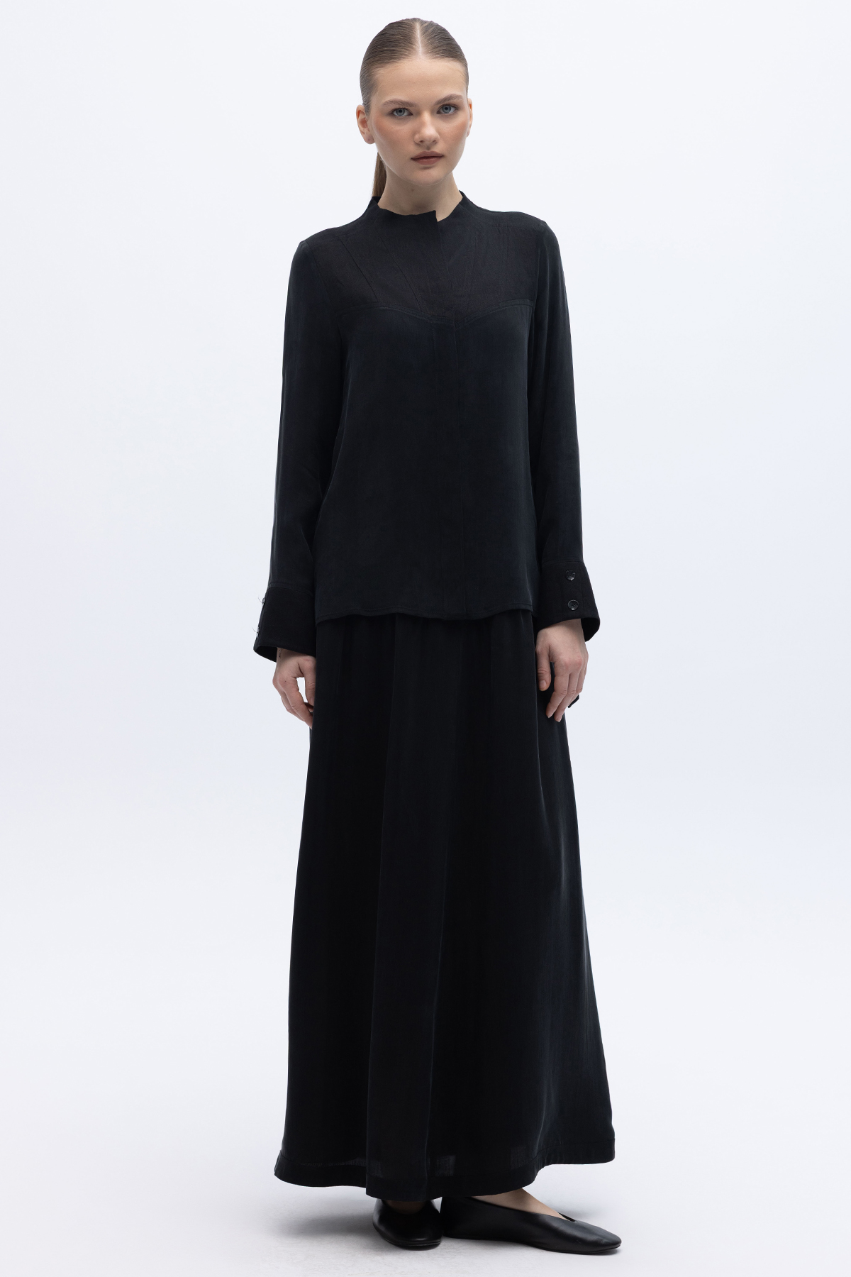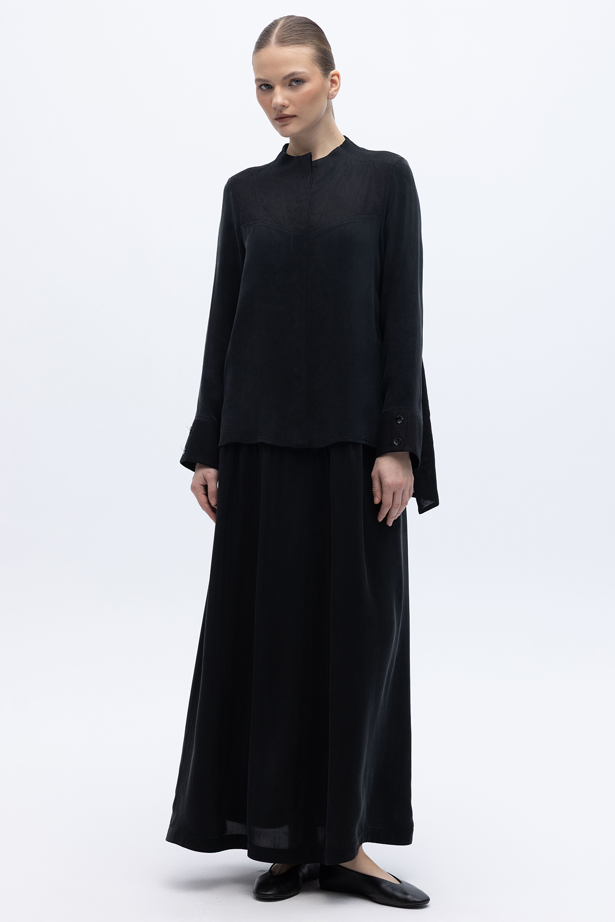 Keten Korsajlı Cupro Etek Siyah