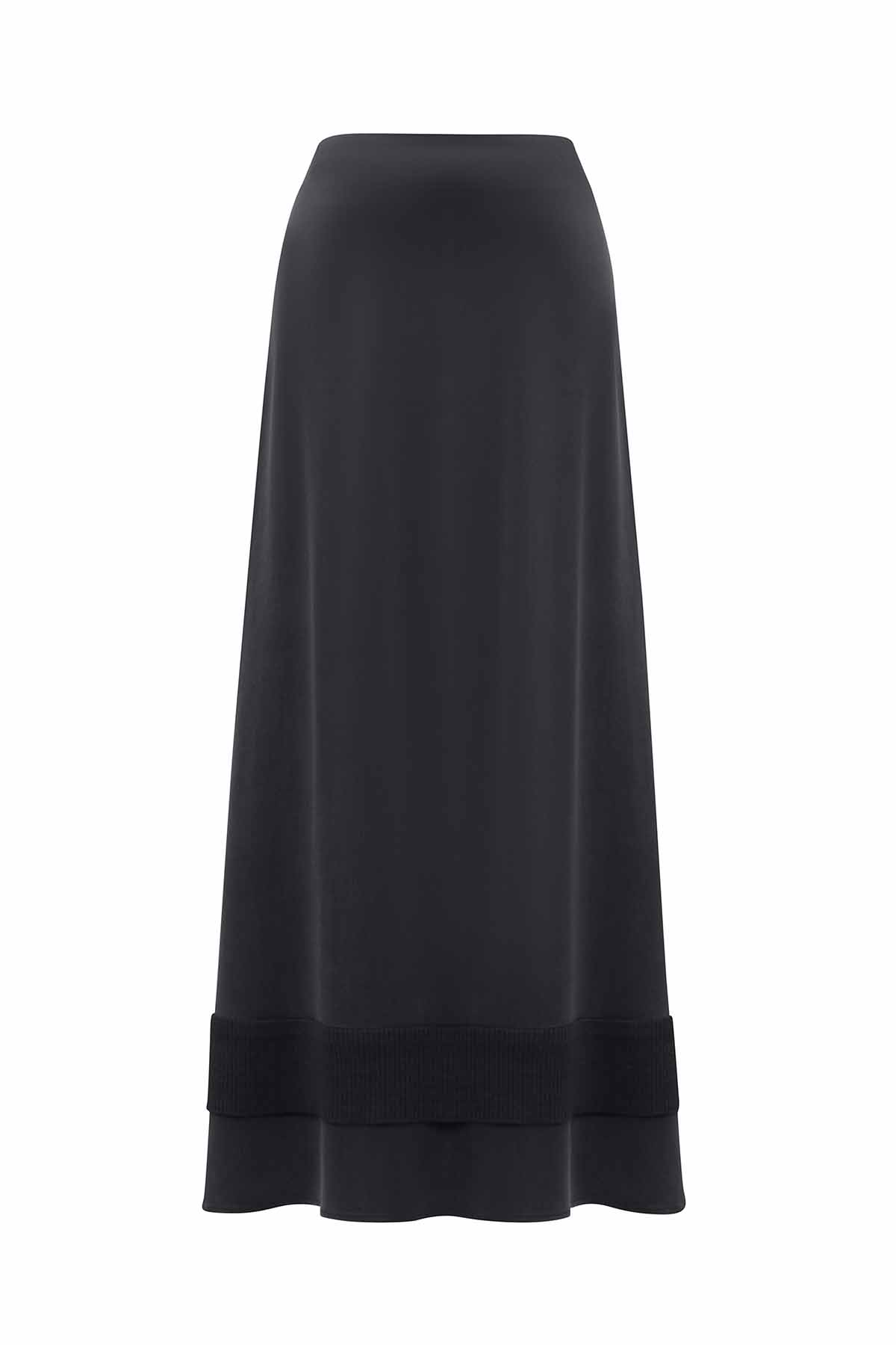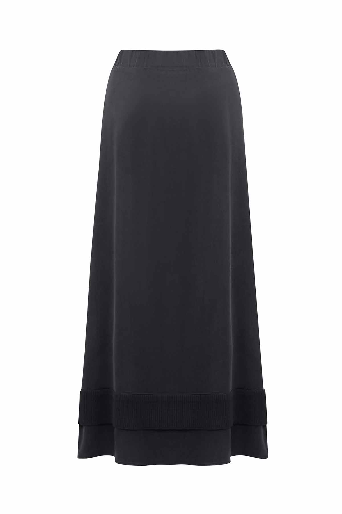 Knitted Band Detailed Grey Cupro Skirt