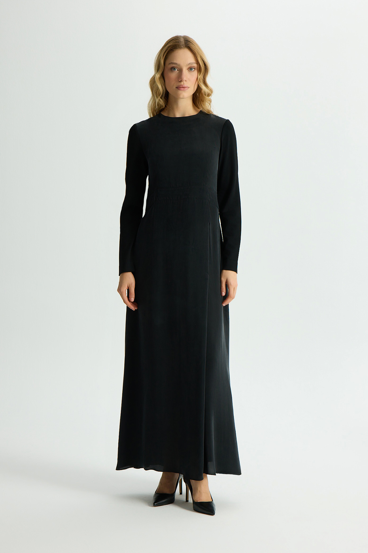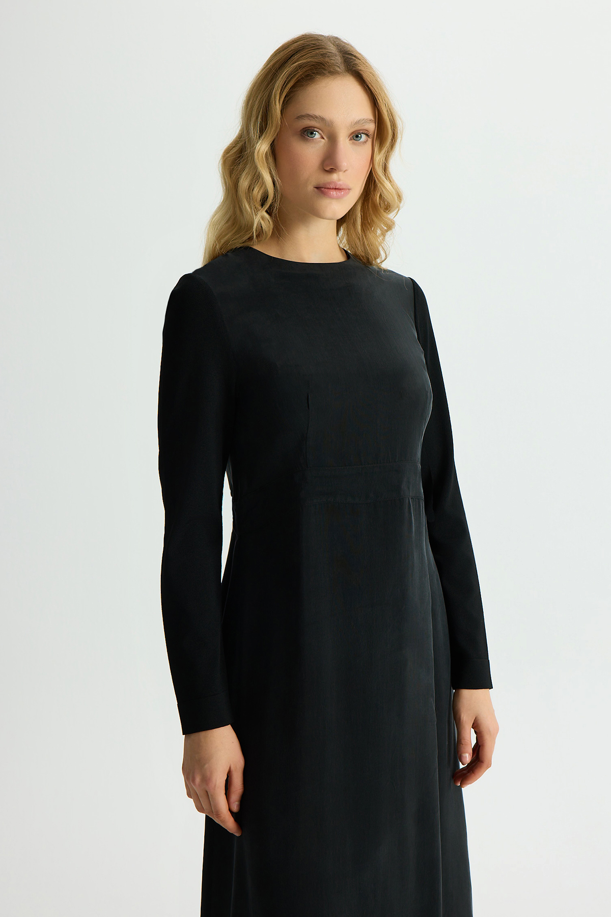 Solid Color Long Sleeve Cupro Dress