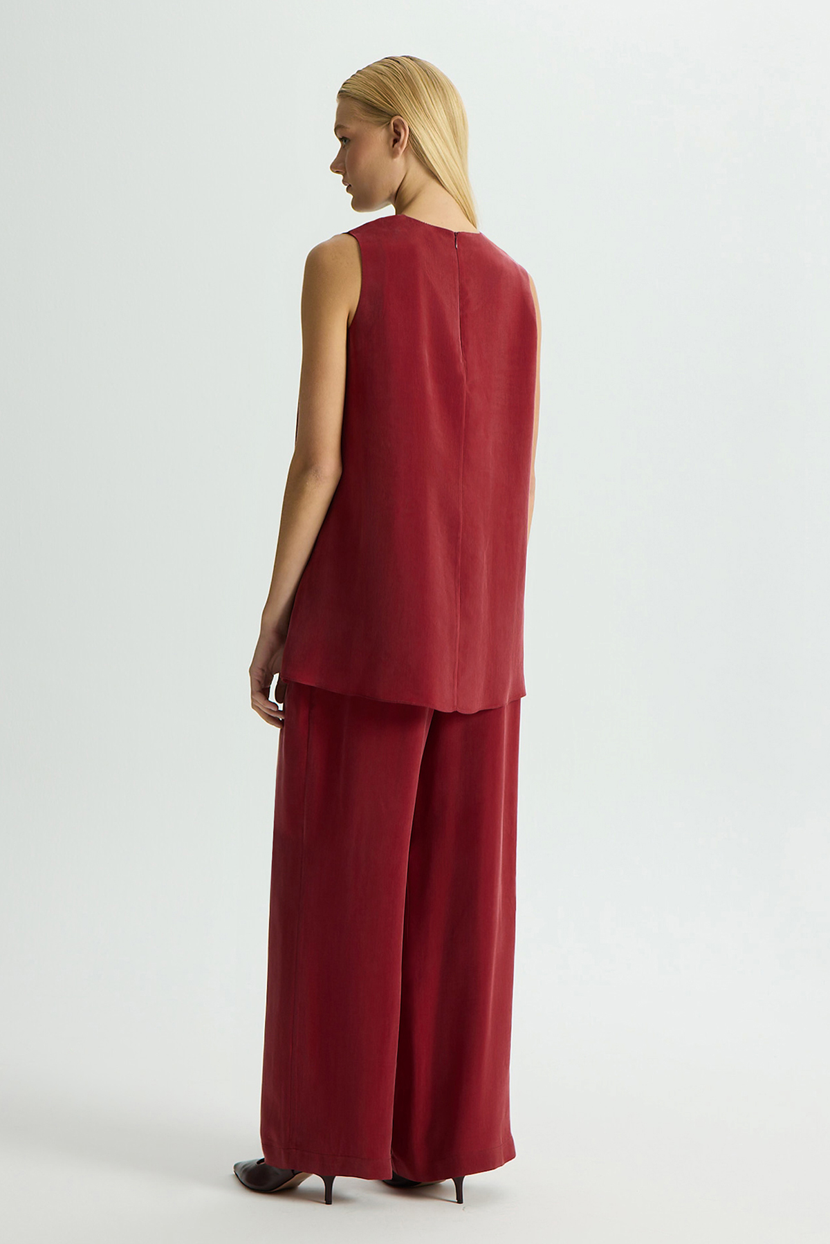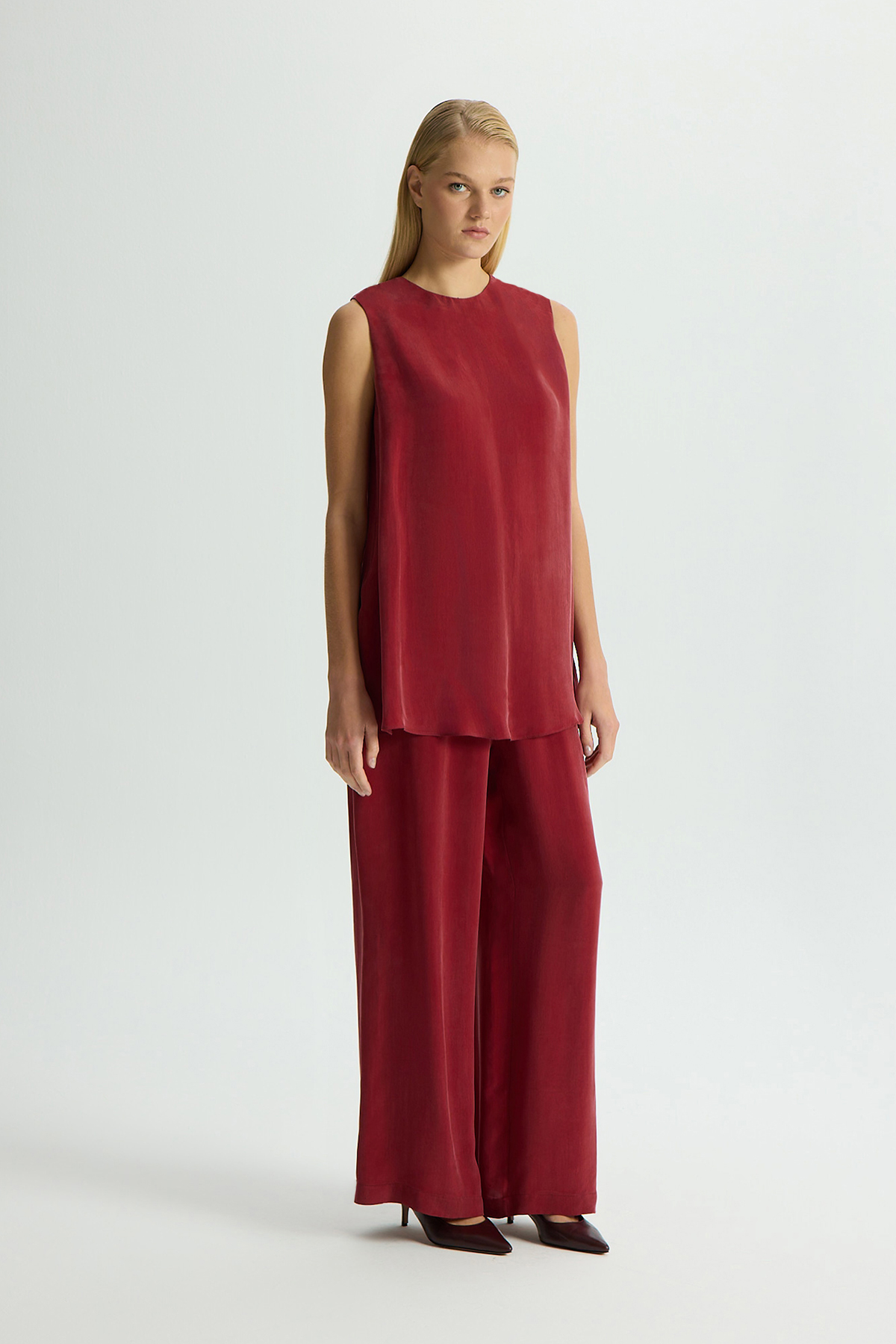 Cupro Tunic with Gathered Ankle Balloon Sleeves