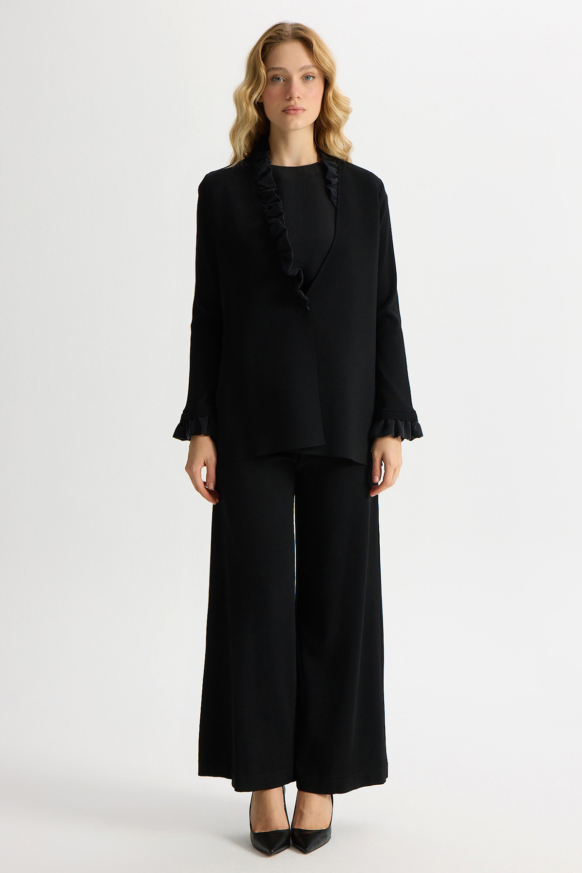 Kolsuz Cupro Tunik Takım Siyah