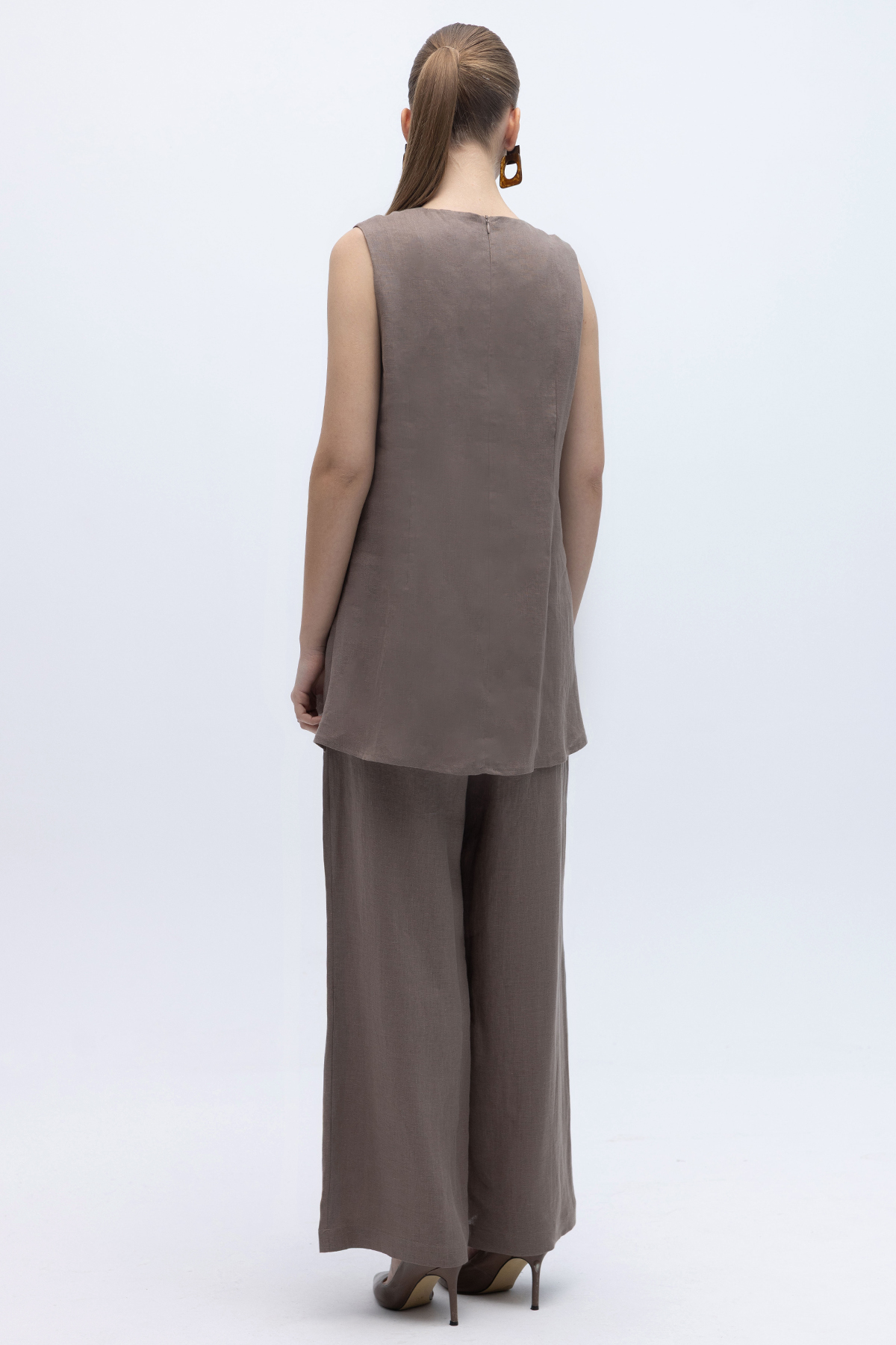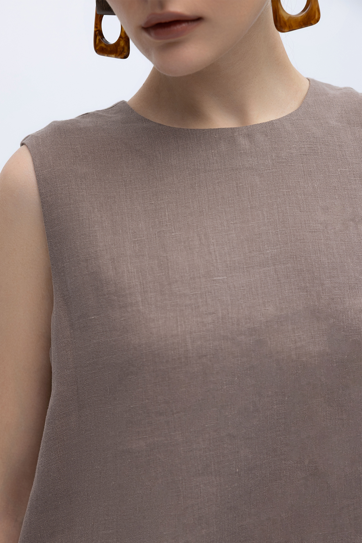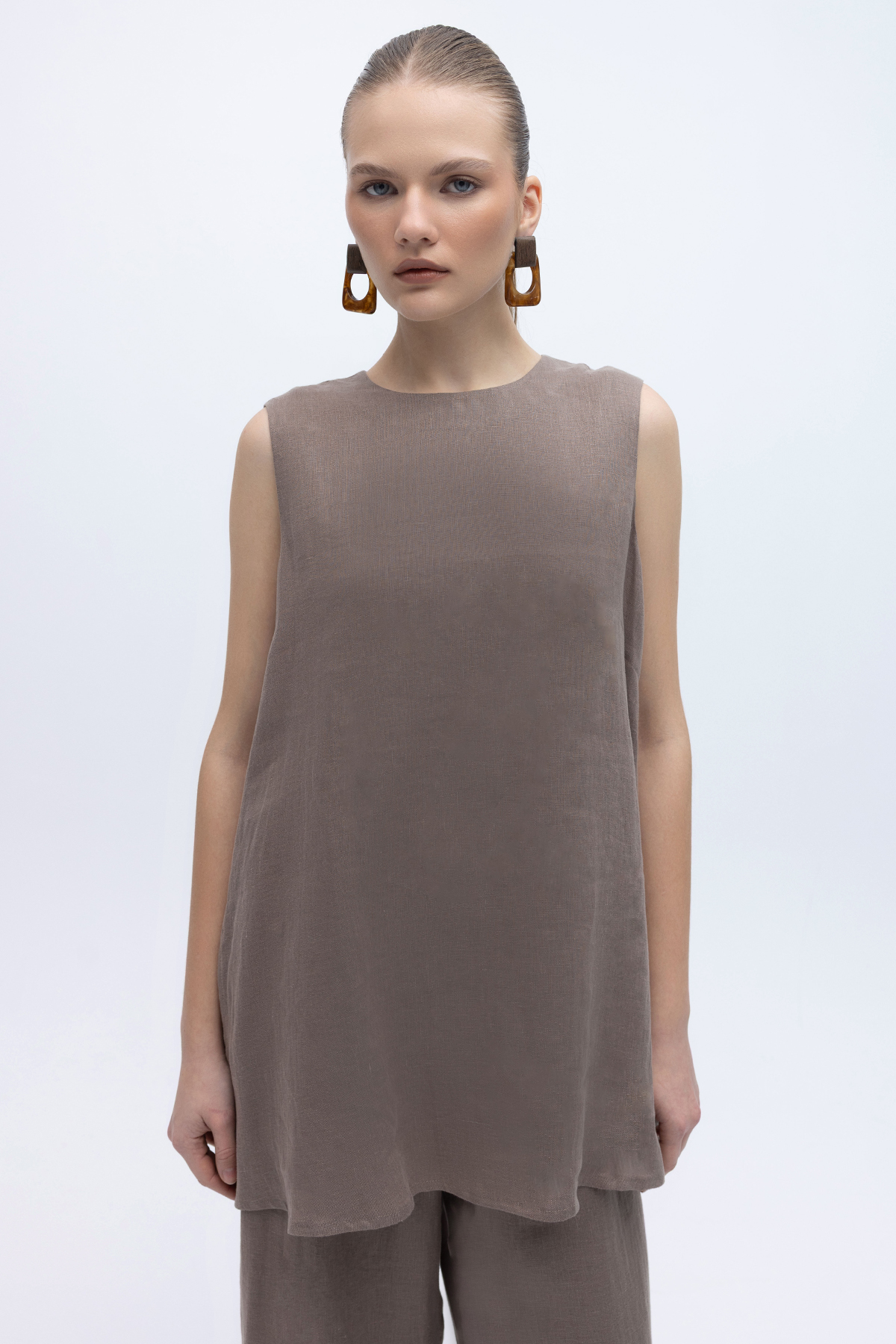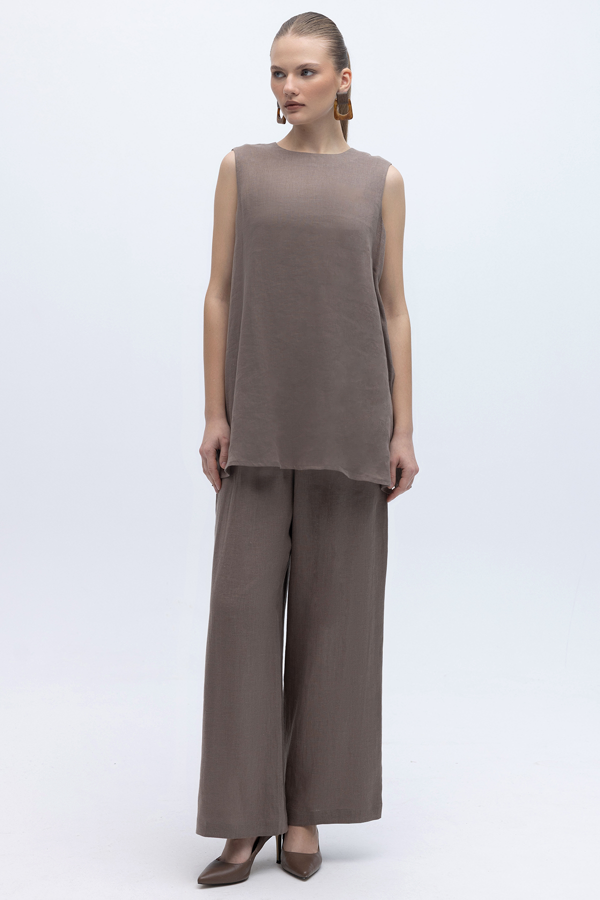 Kolsuz Düz Renk Keten Tunik Mink