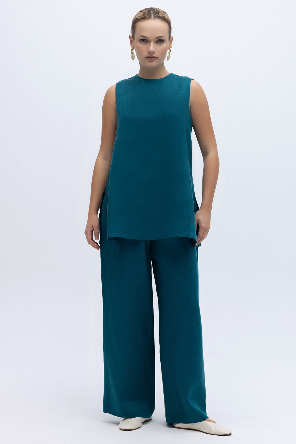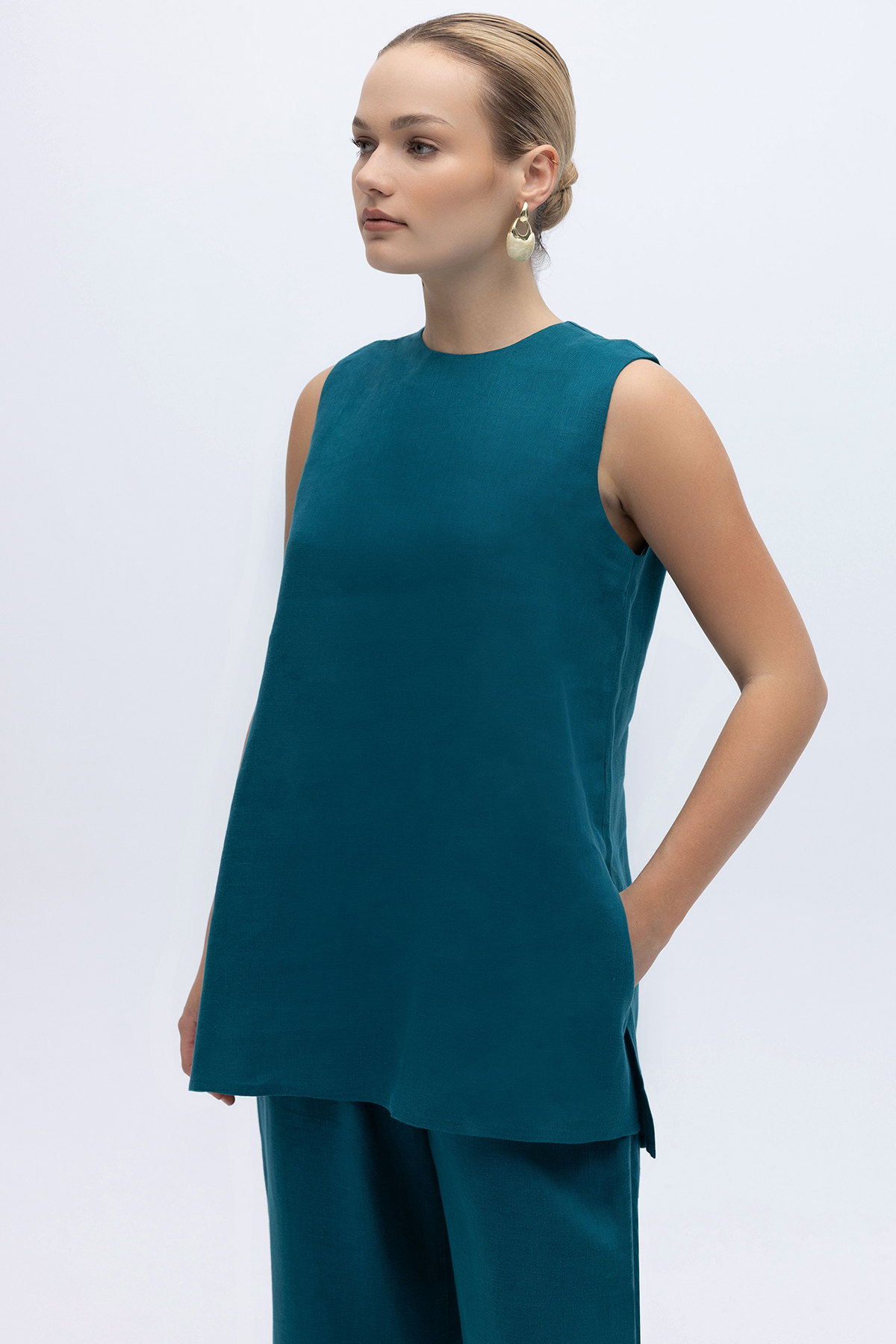 Kolsuz Düz Renk Keten Tunik North Sea