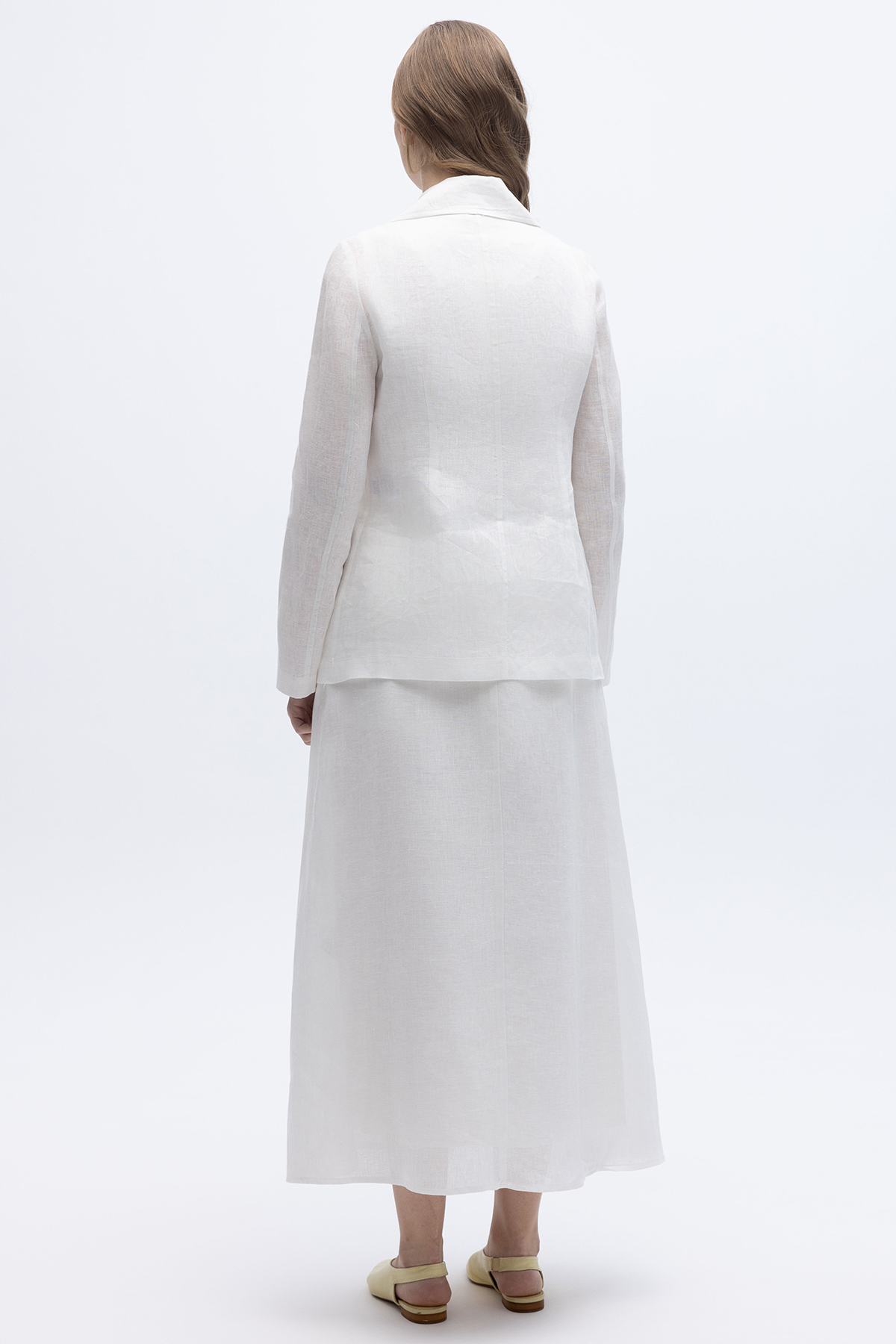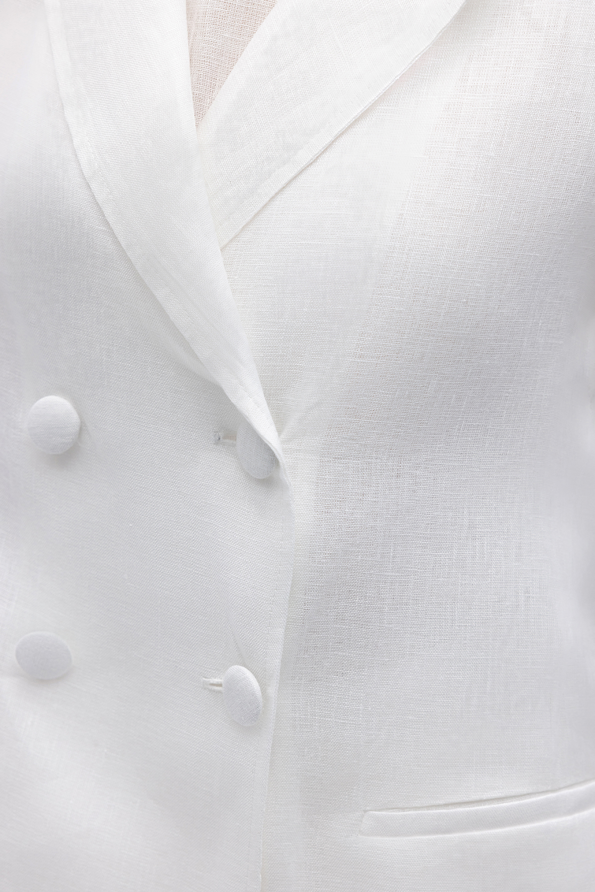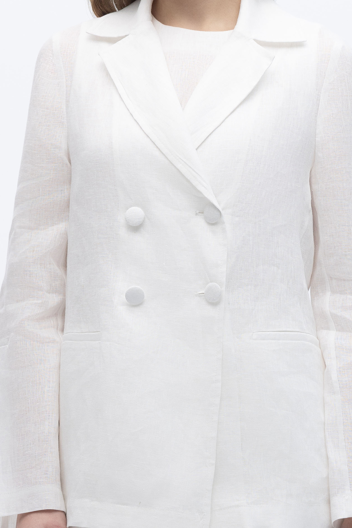 Kruvaze Kesim Keten Ceket Ekru