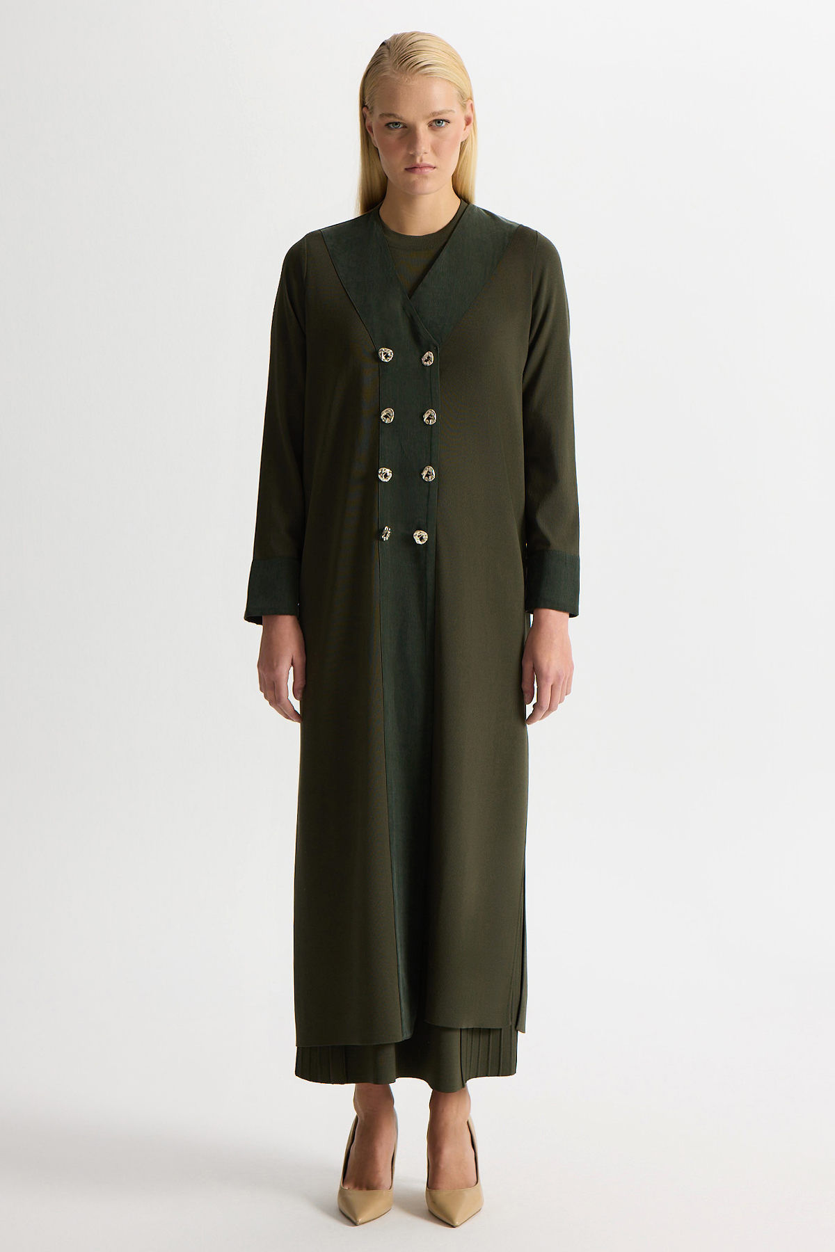 Double-Breasted Cupro Detailed Knit Cardigan