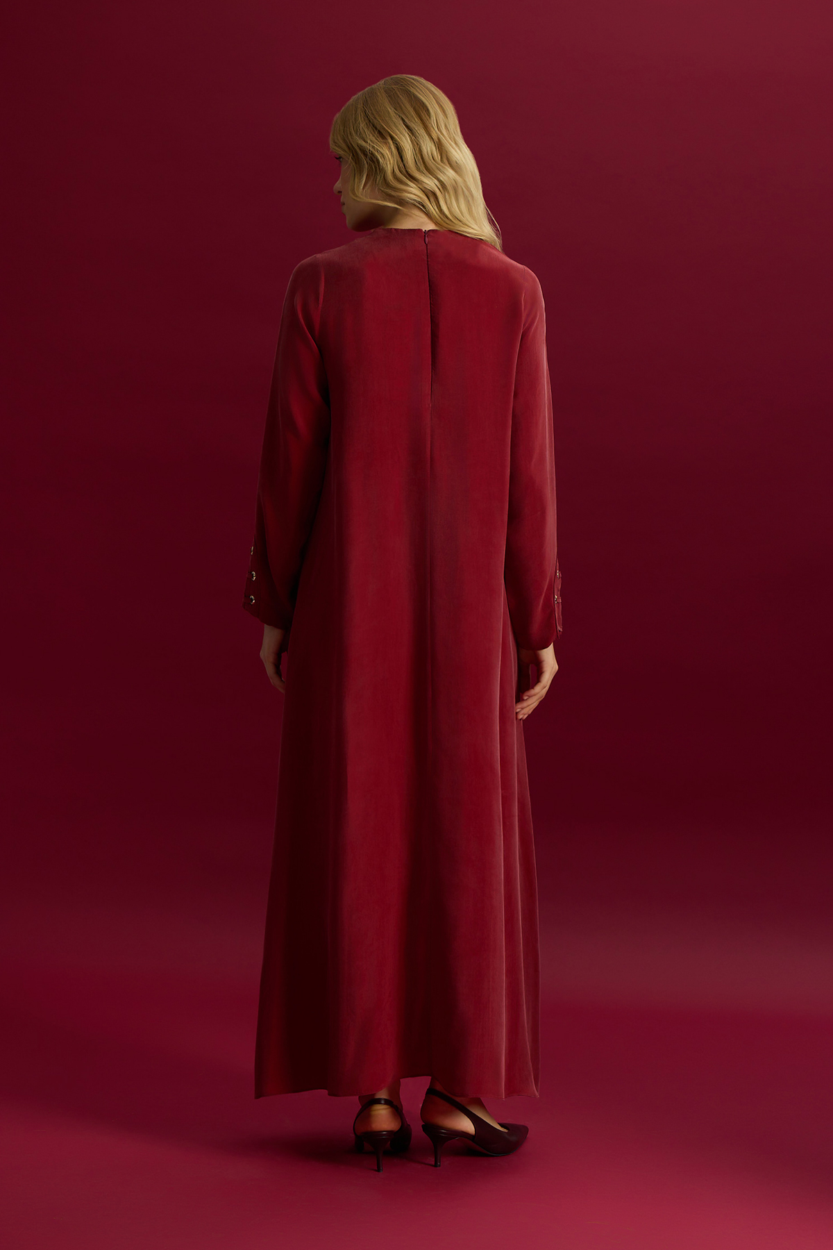 Kuş Gözü Detaylı Cupro Elbise Cherry