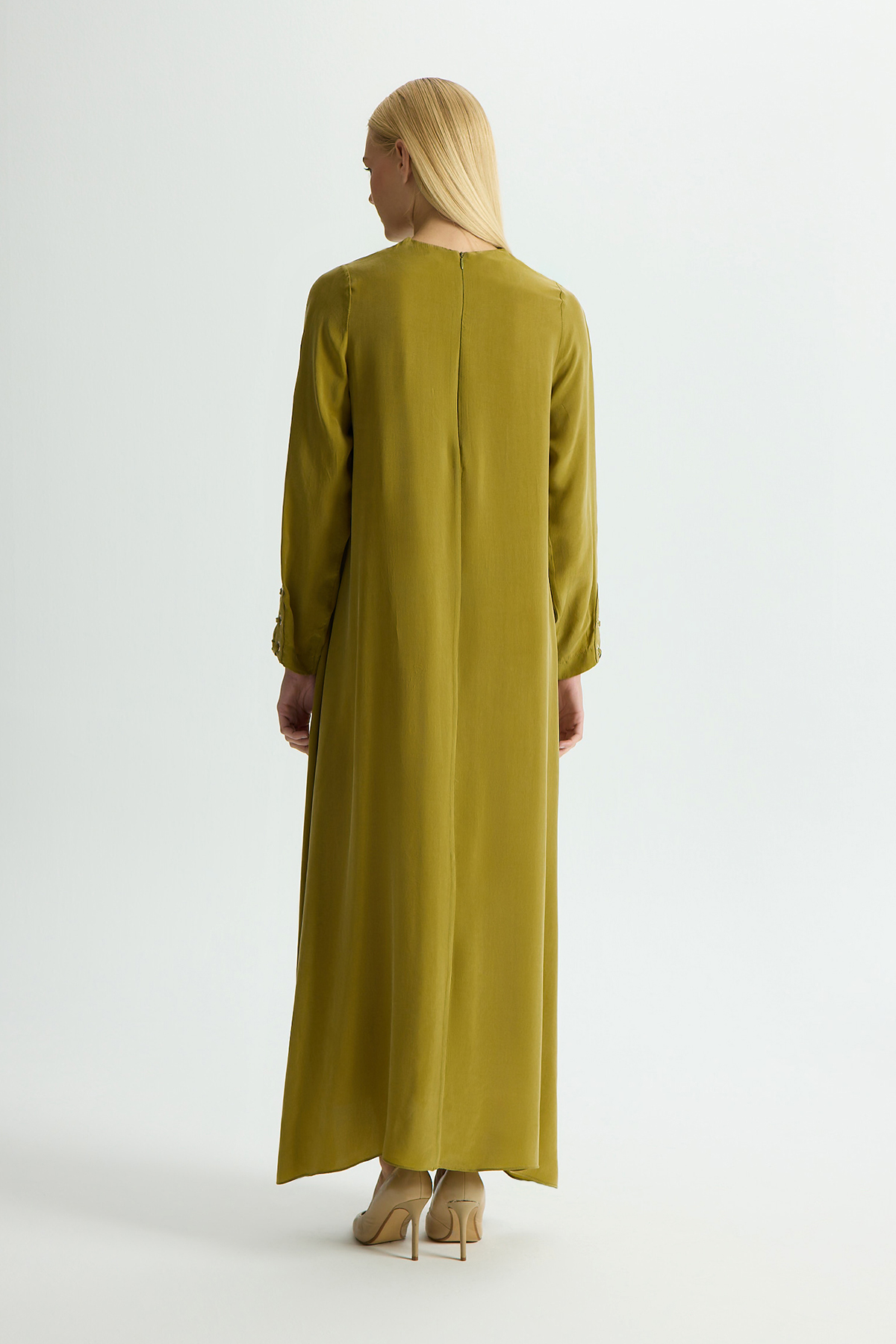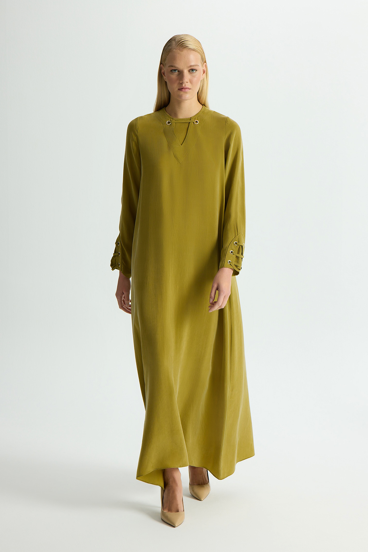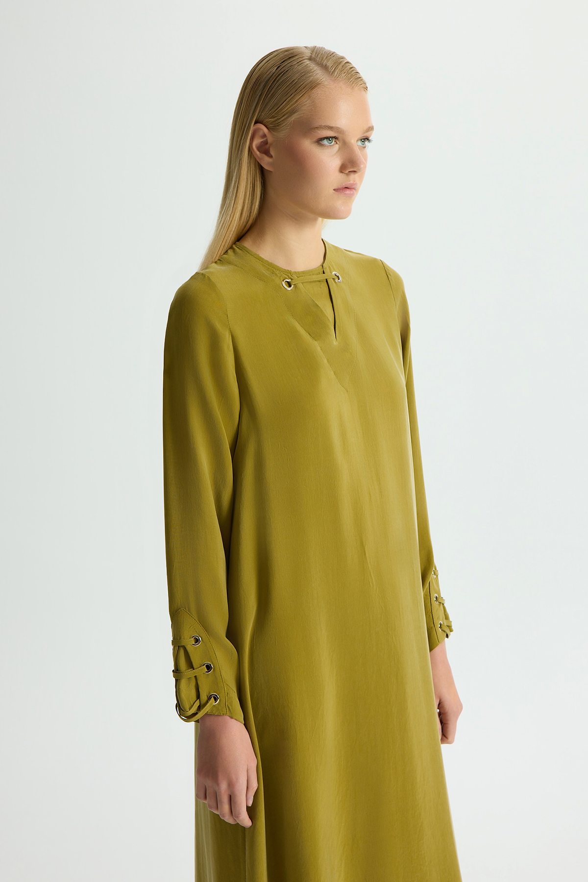 Kuş Gözü Detaylı Cupro Elbise Amber