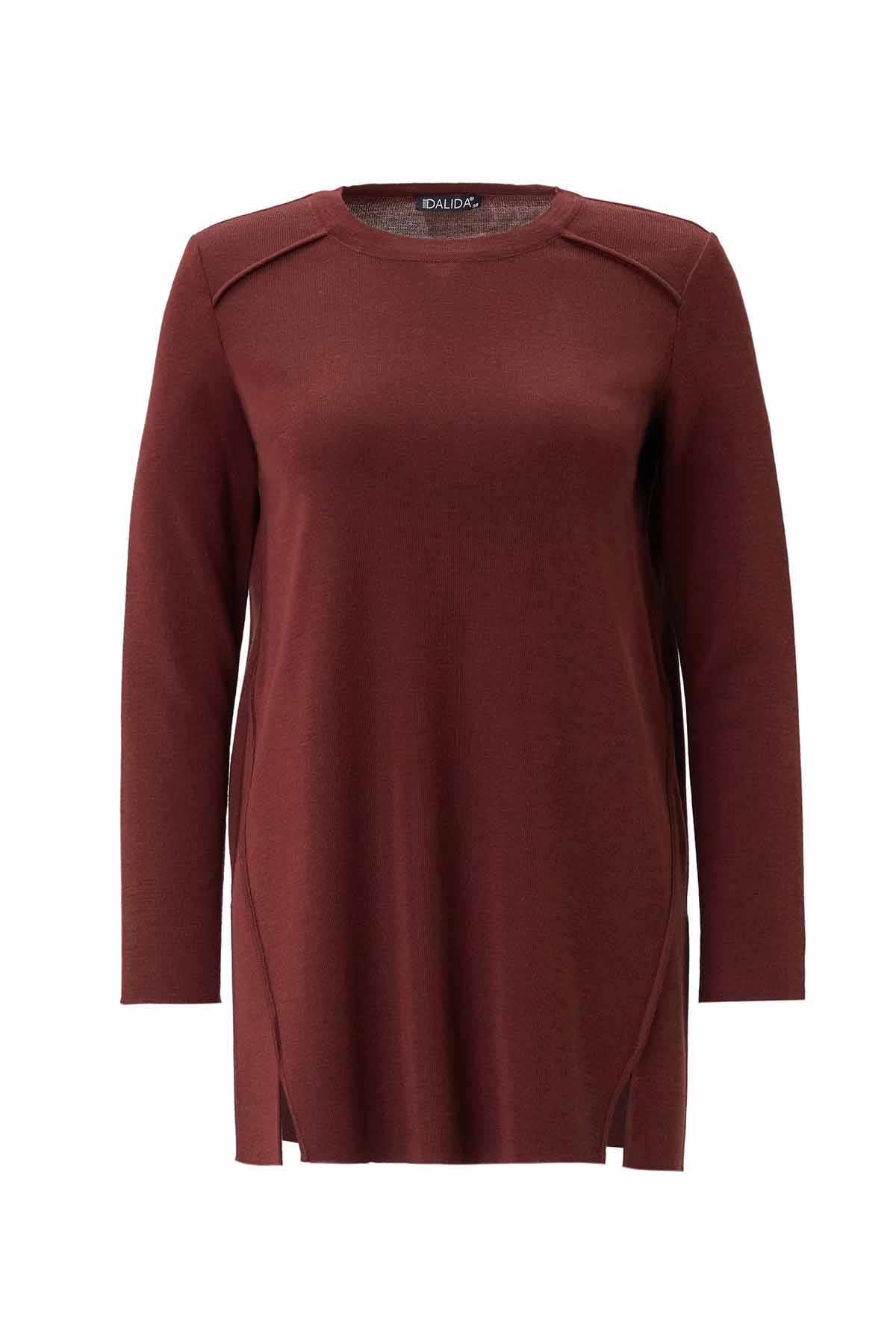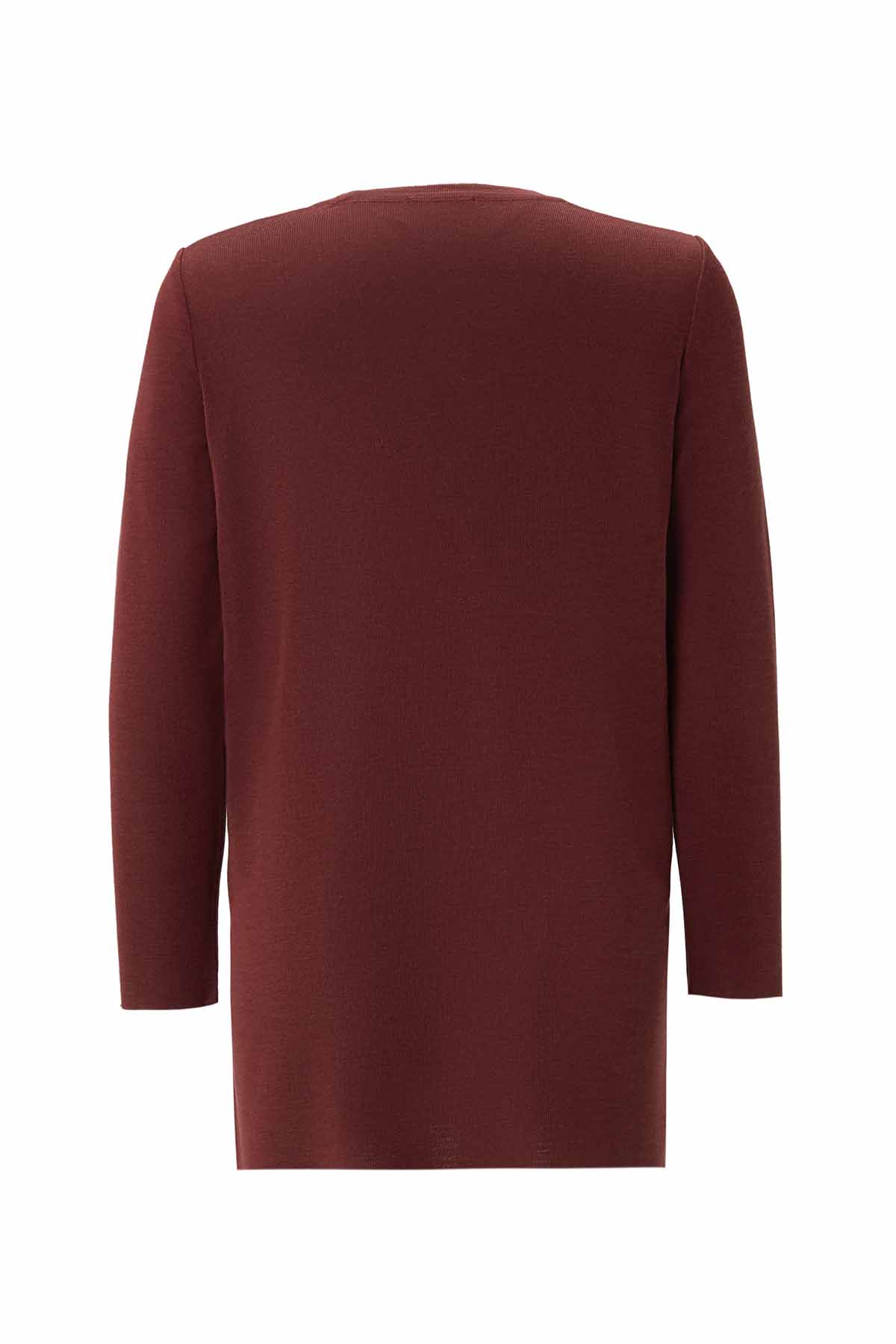 The Long Sleeve Basic Burgundy Knit Tunic features a deep burgundy hue and soft knit fabric for all-day comfort. Its minimalist design ensures versatility, making it a sophisticated choice for both casual and professional looks.