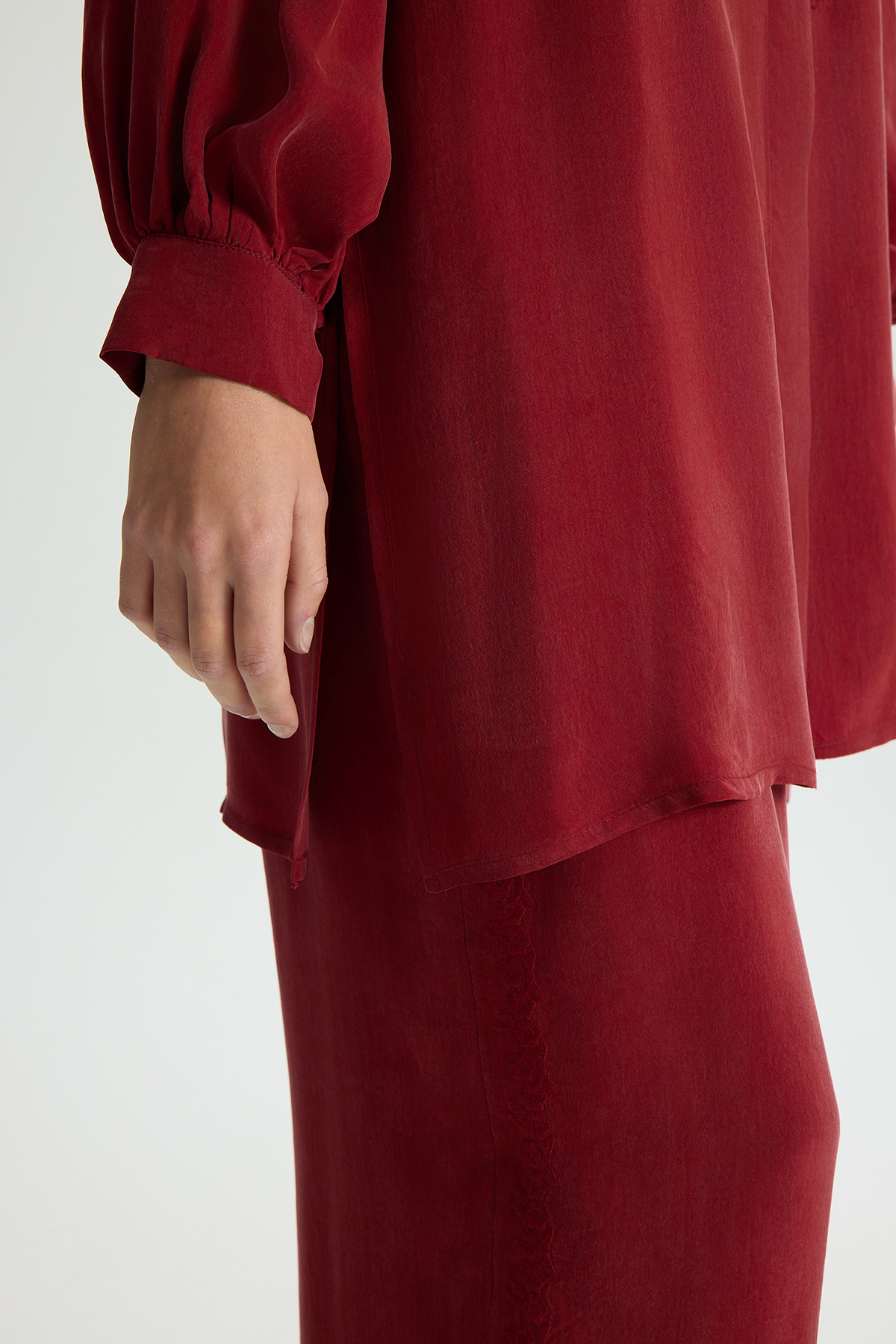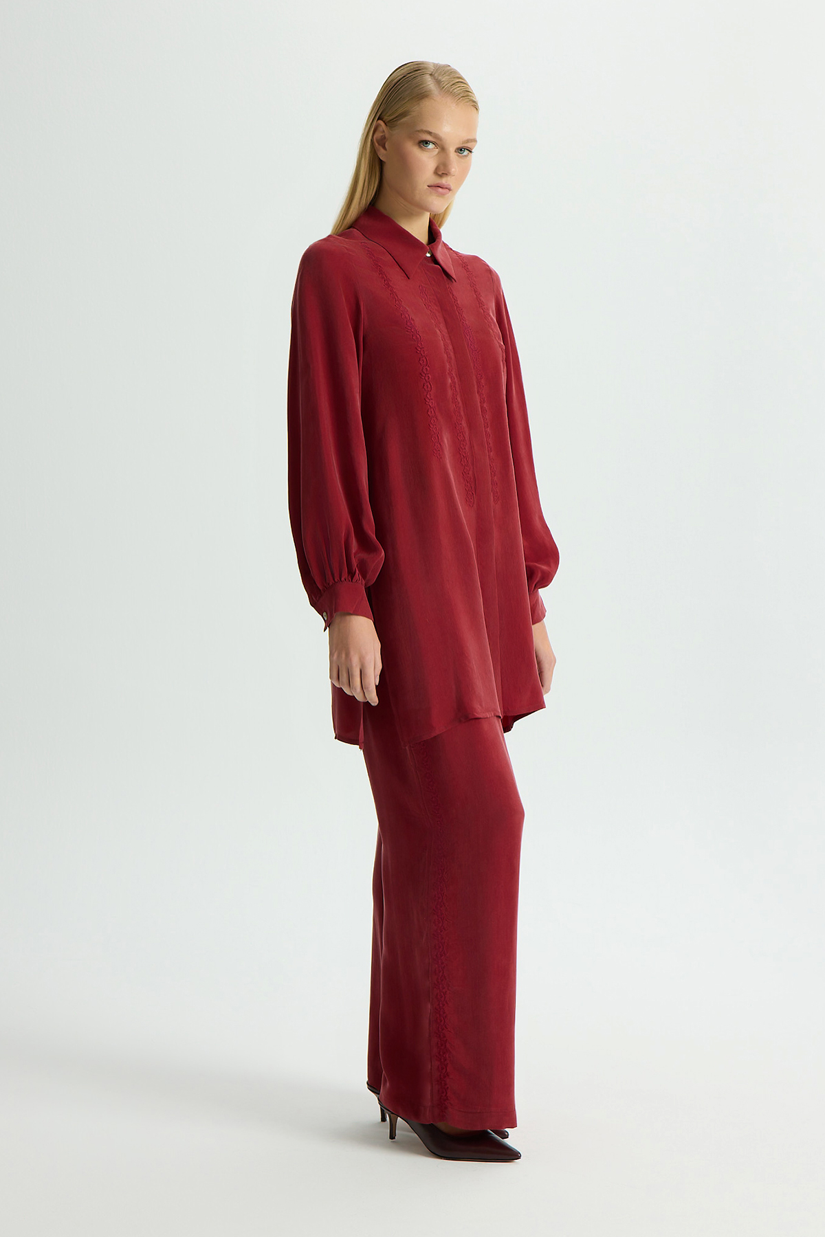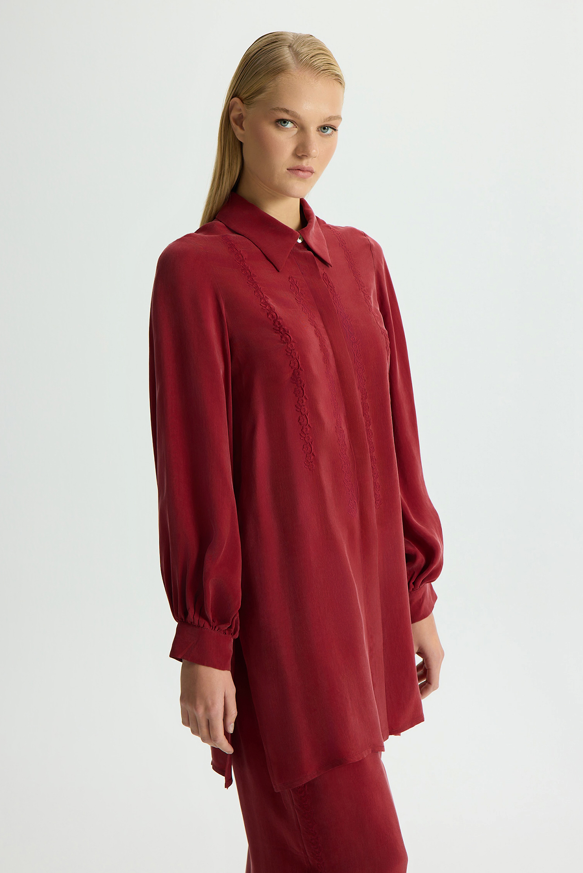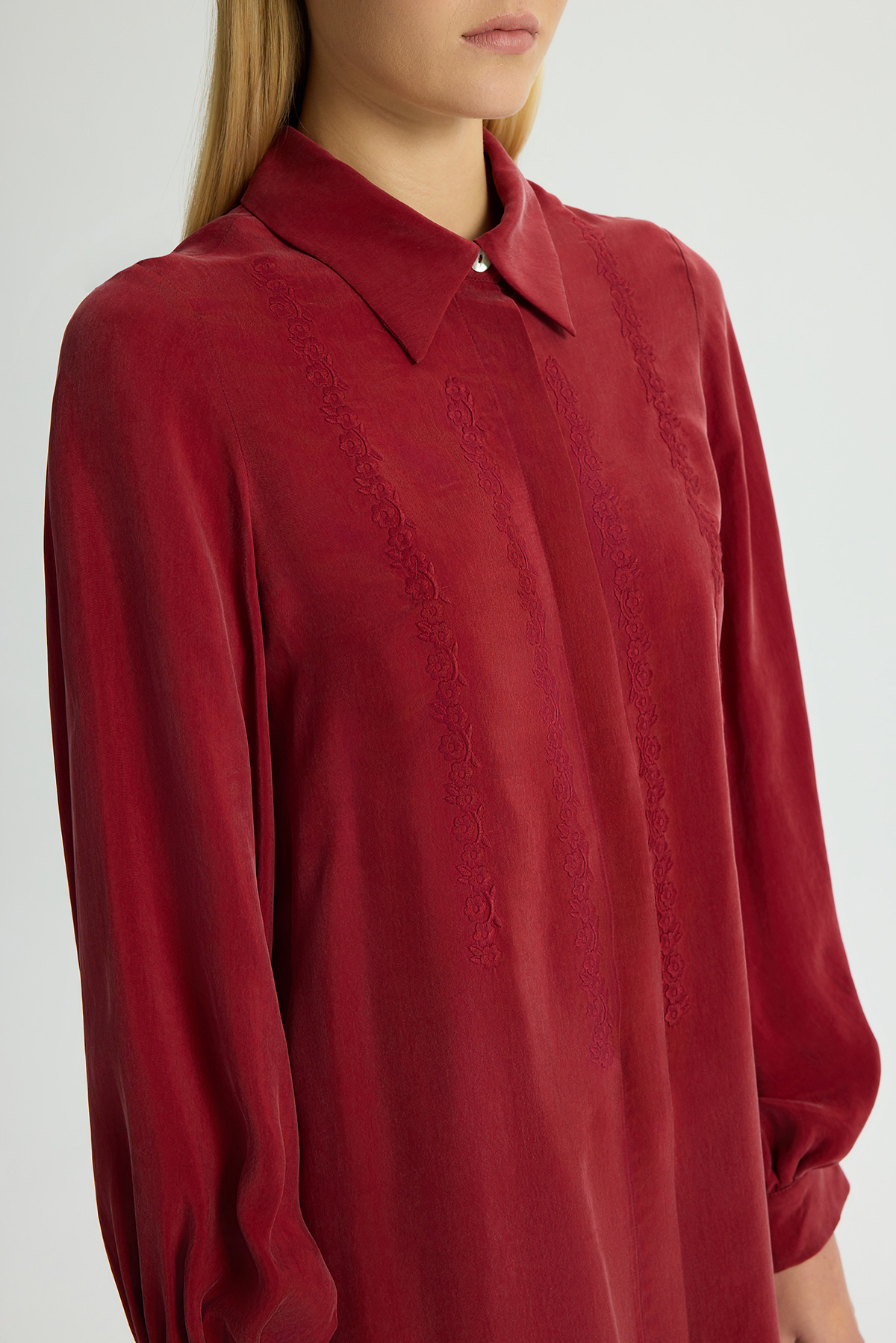 Nakış Detaylı Cupro Gömlek Cherry