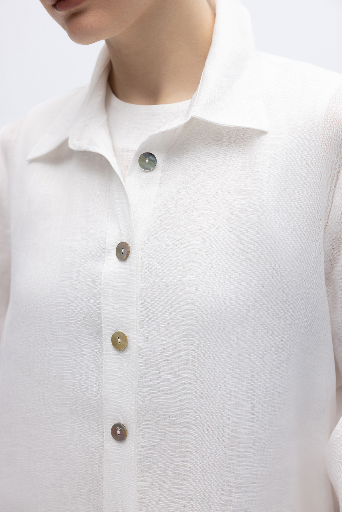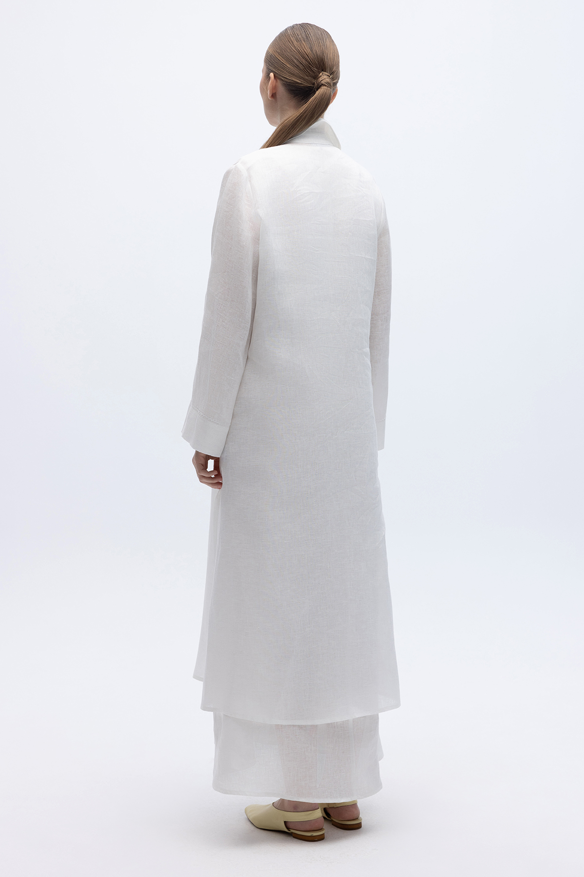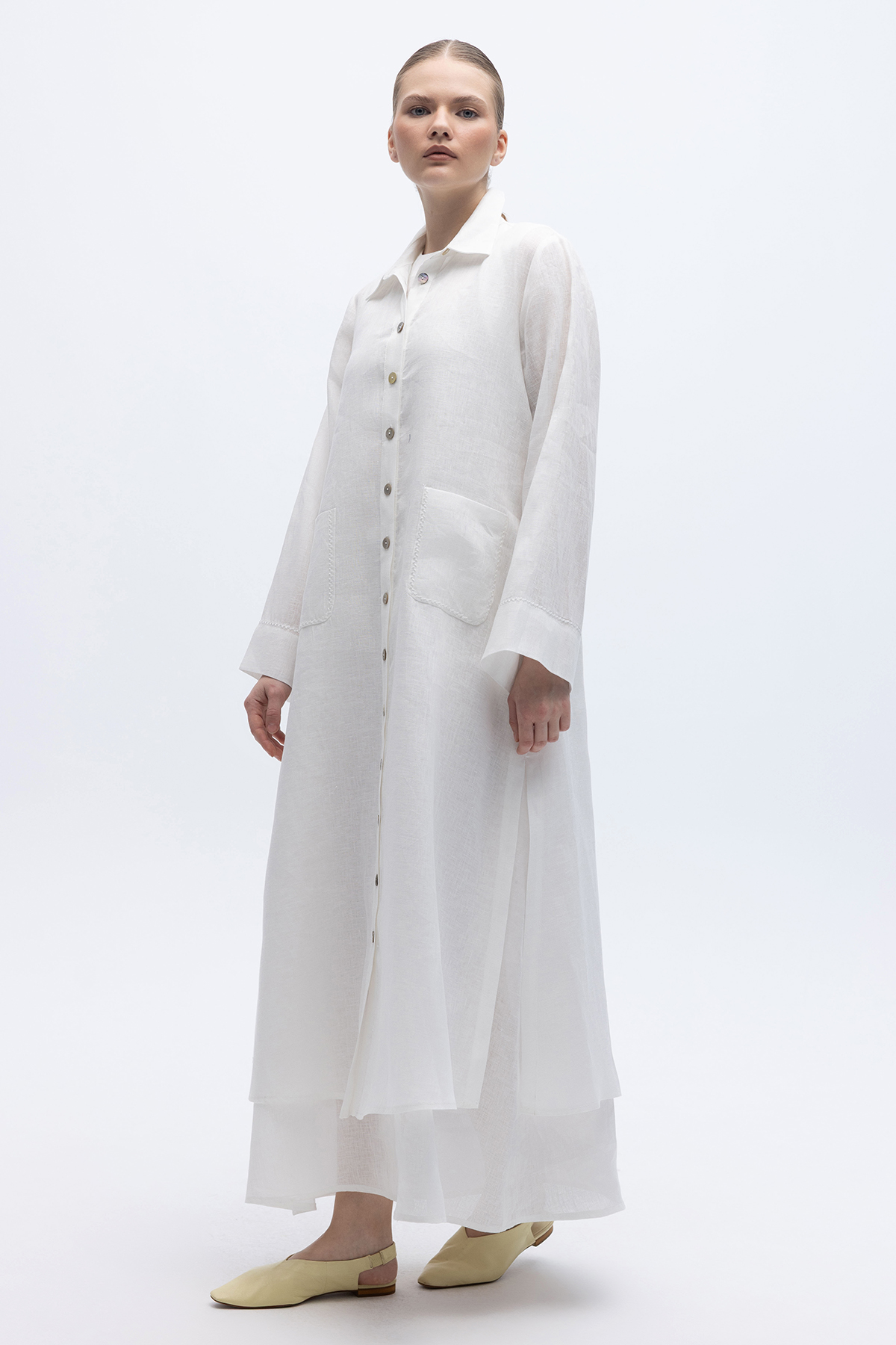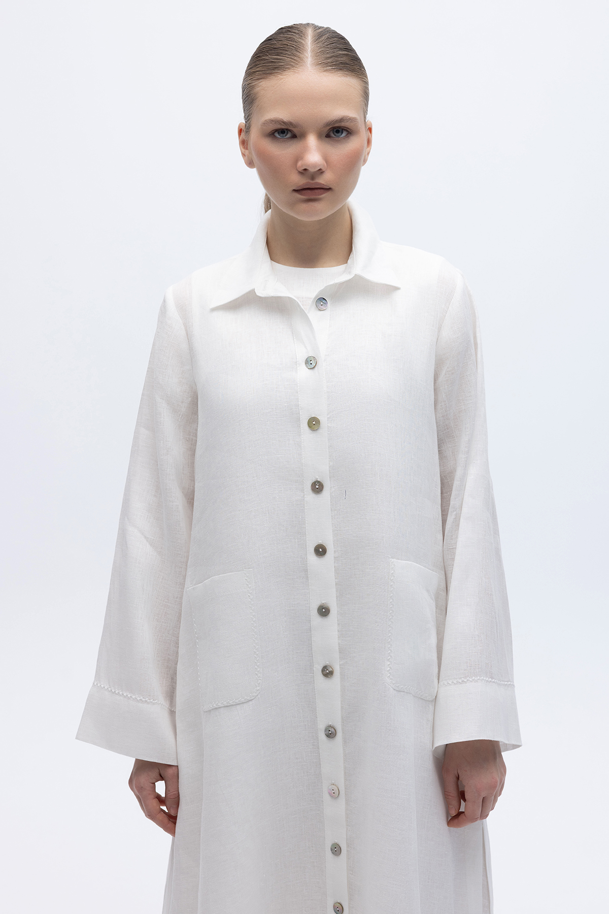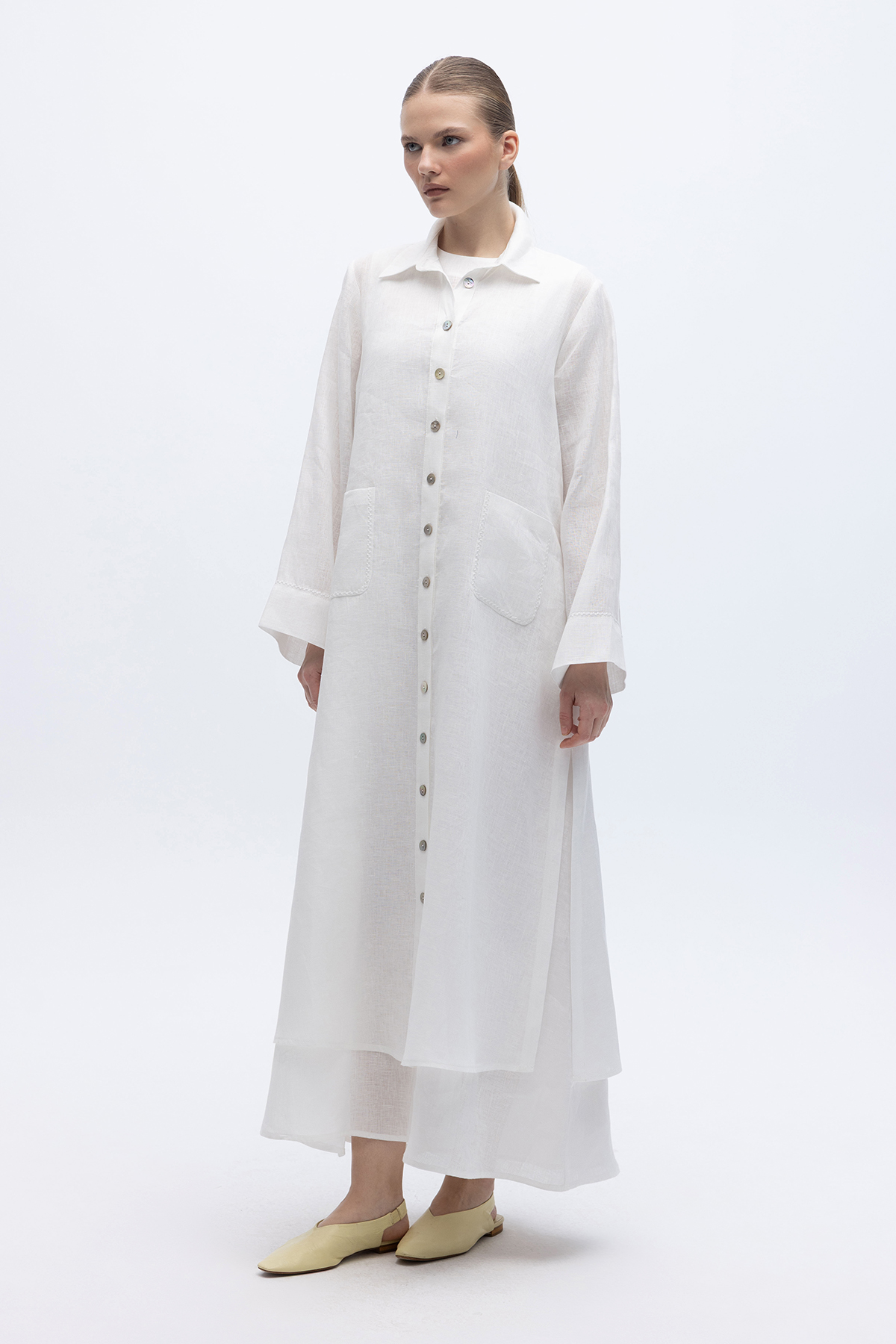 Nakış Detaylı Düğmeli Uzun Kap Ekru
