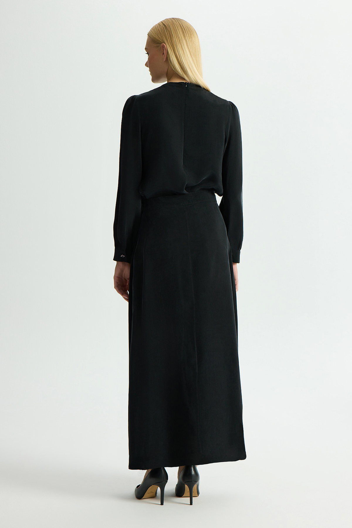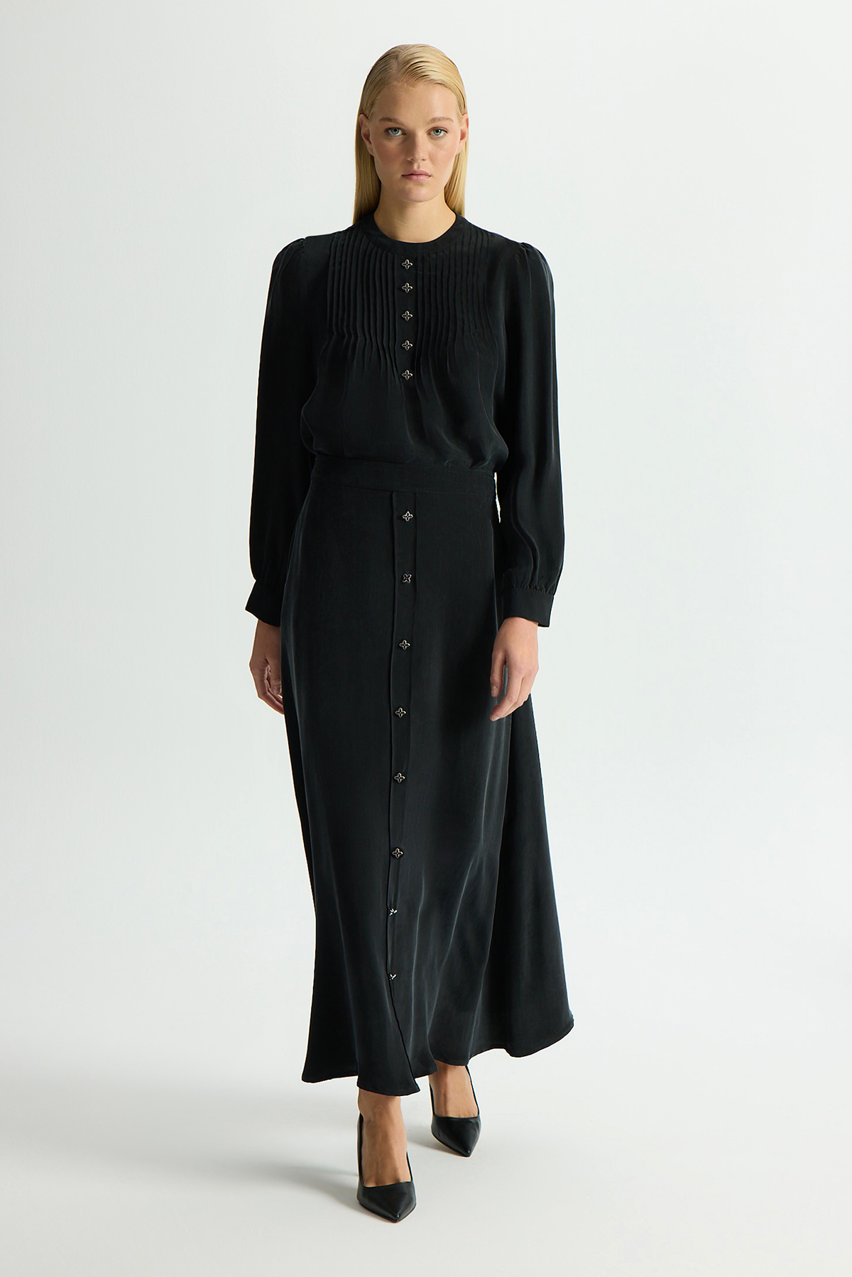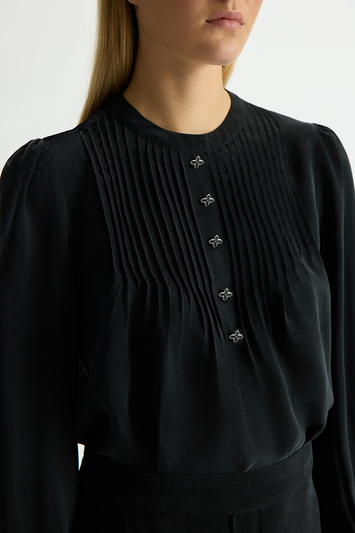 Ön Kısmı Aksesuarlı Cupro Tunik Siyah