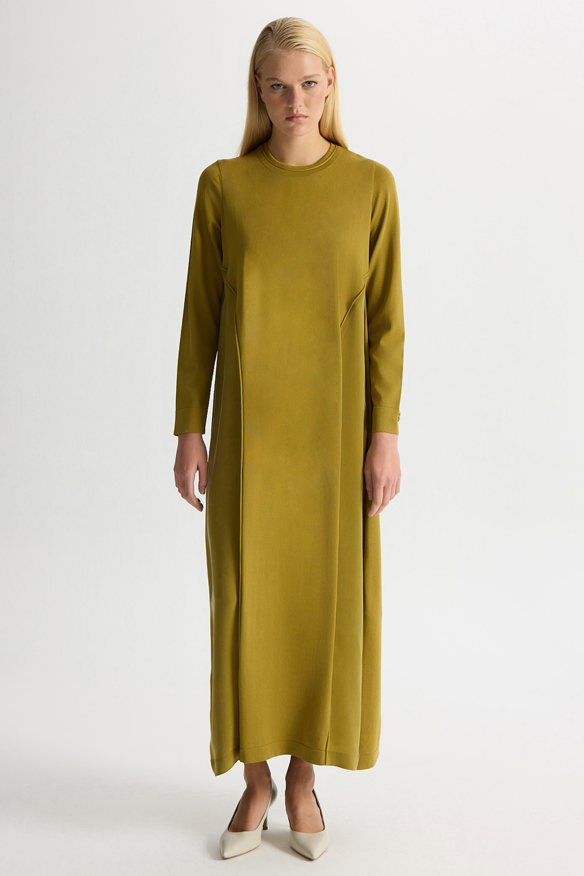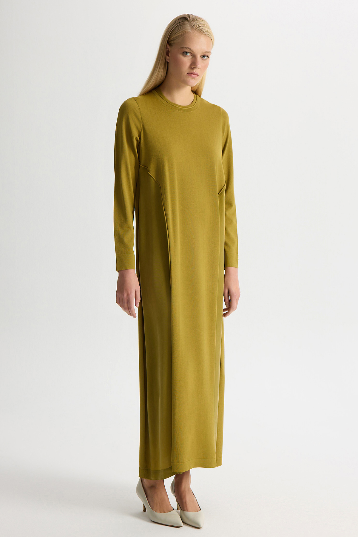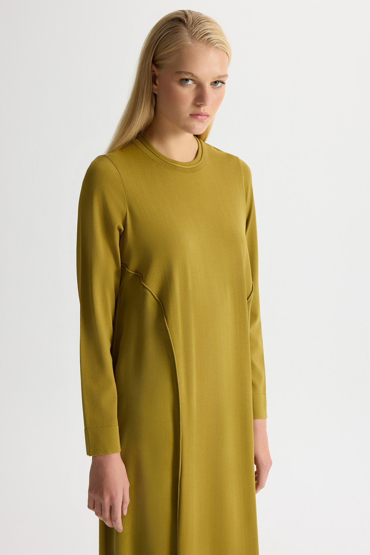 Ön Kısmı Cupro Detaylı triko Elbise Amber