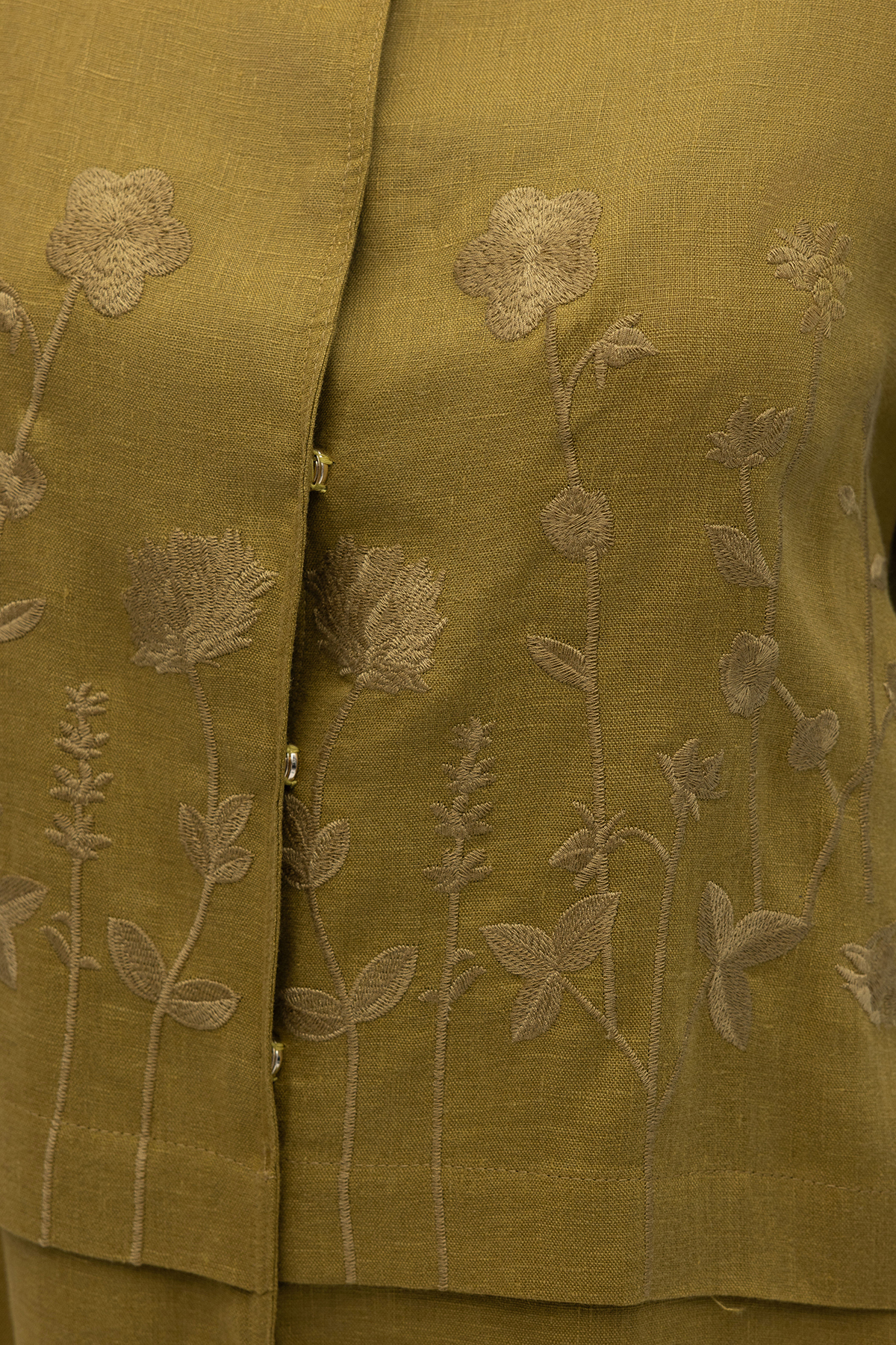 Önü Nakışlı Hakim Yaka Ceket Amber