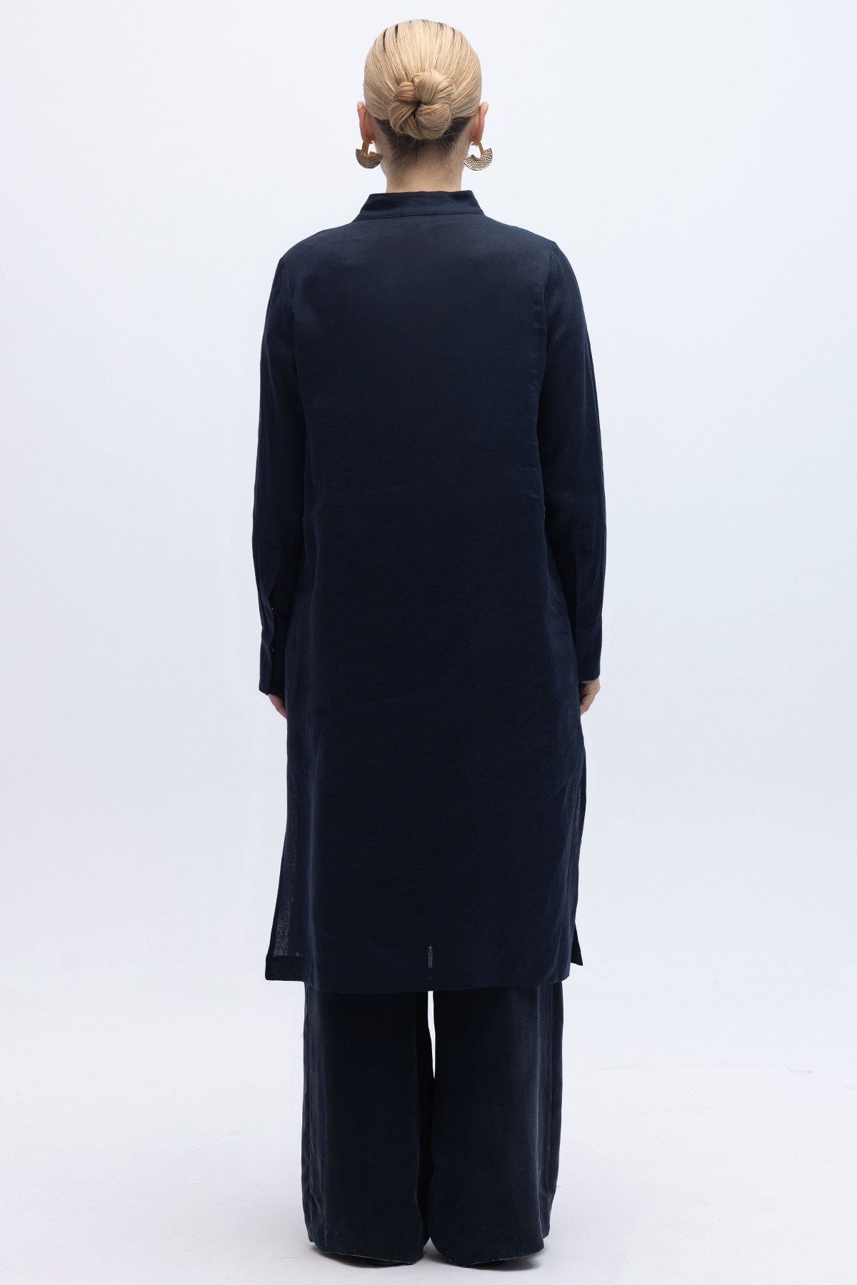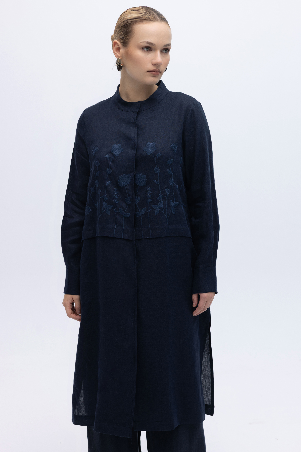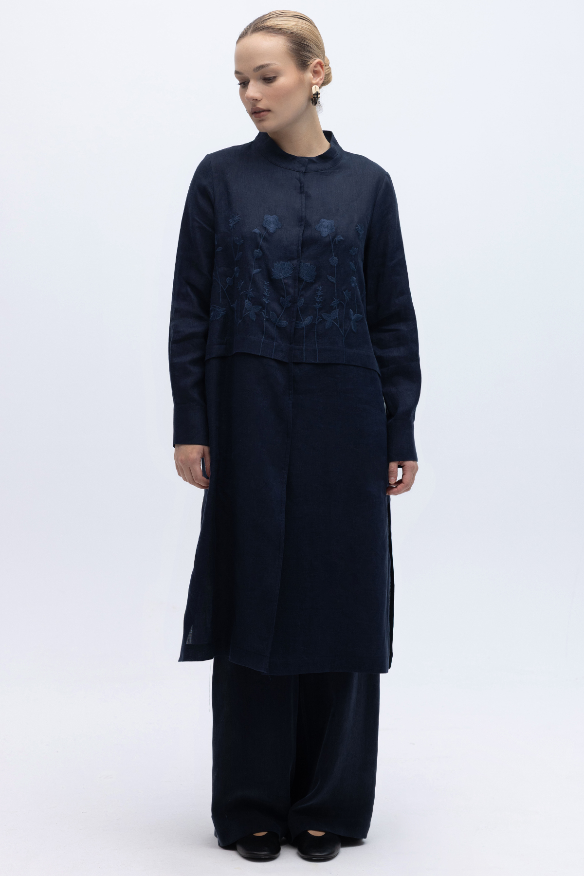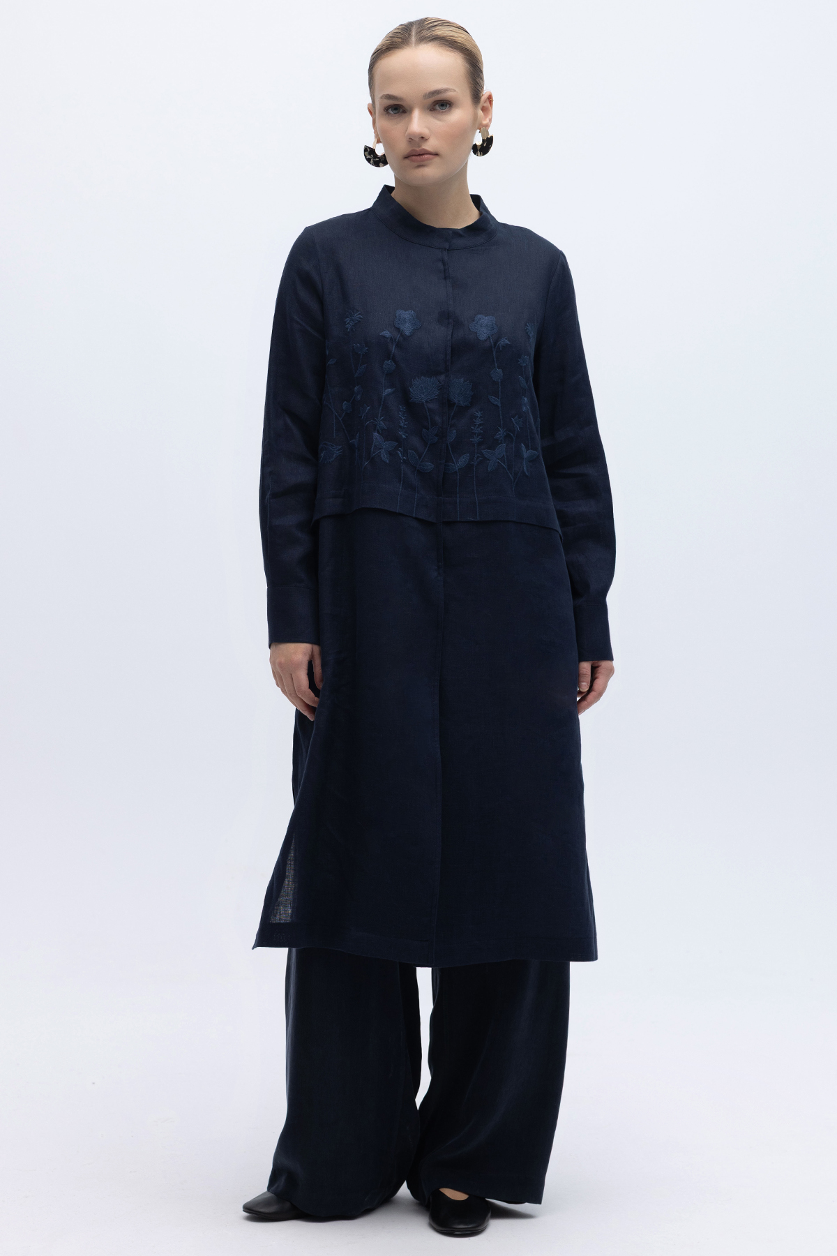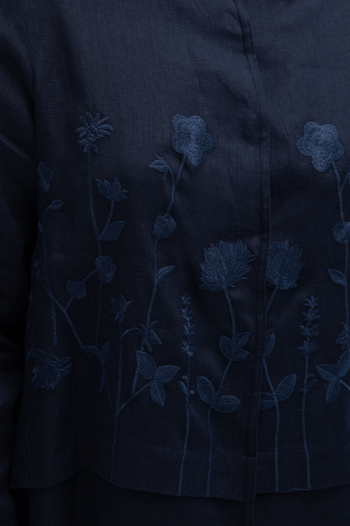Önü Nakışlı Hakim Yaka Ceket Lacivert