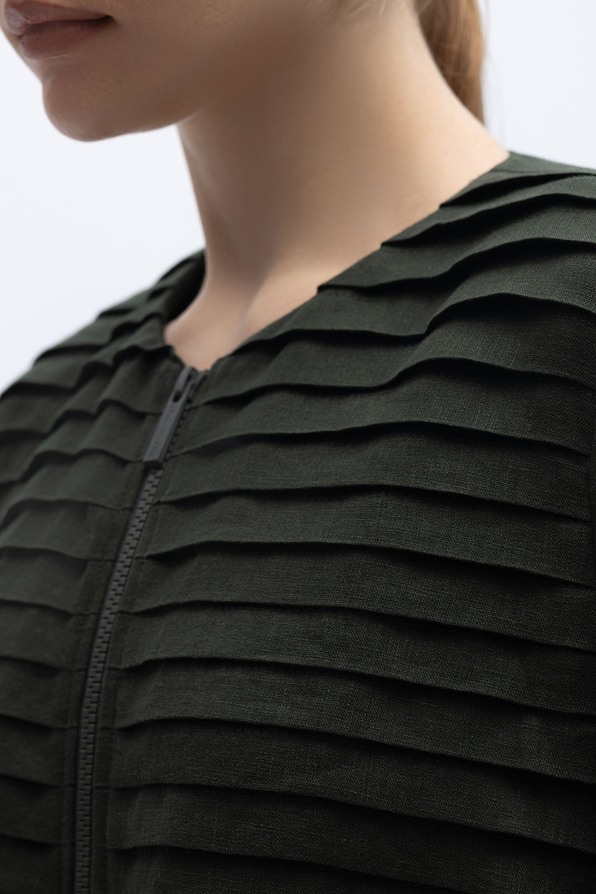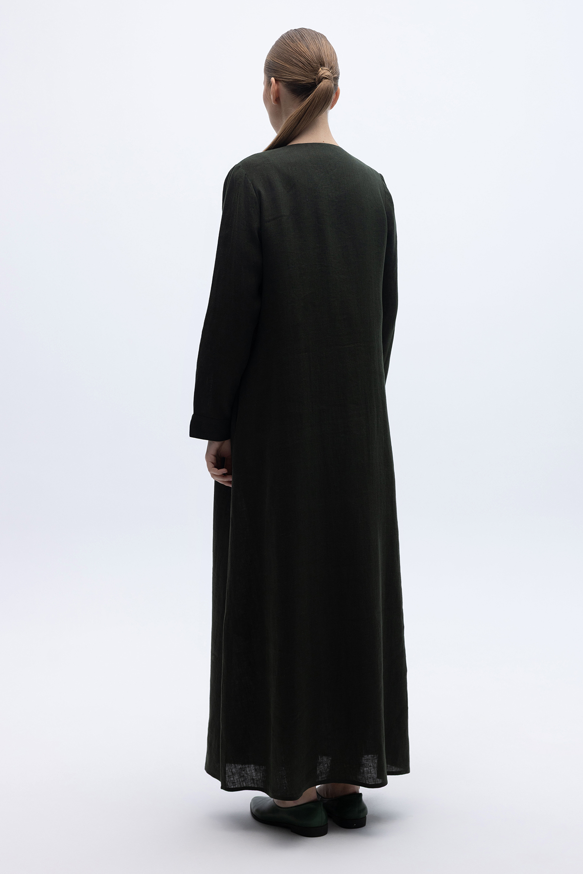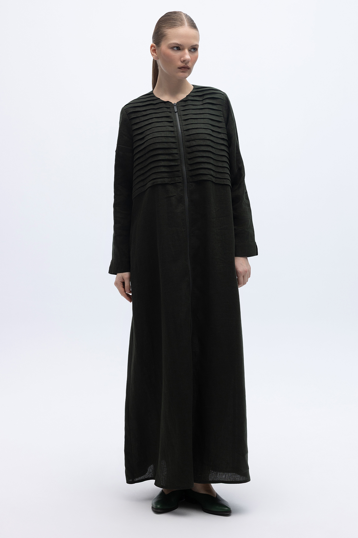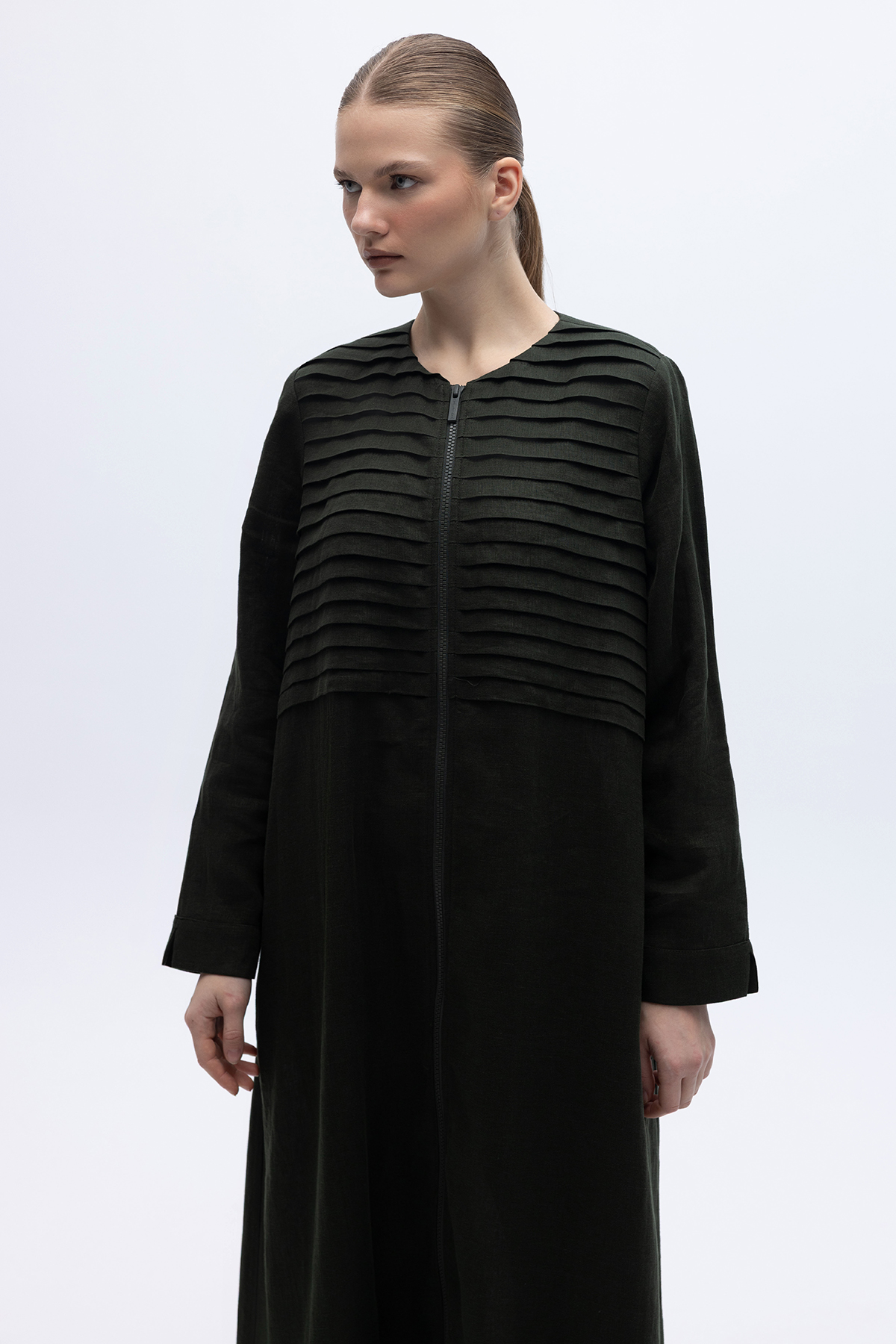 Önü Nervürlü Uzun Keten Kap Haki