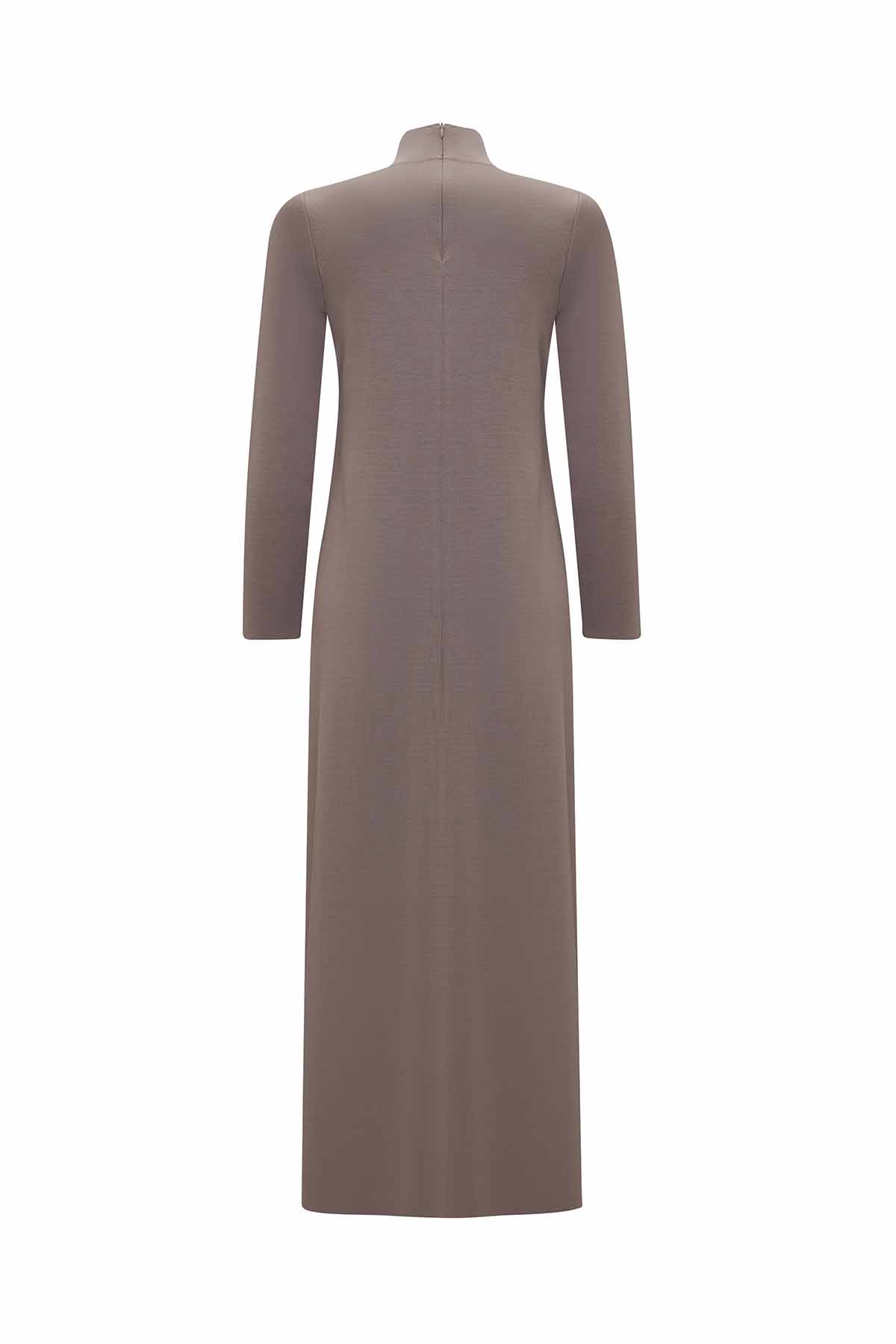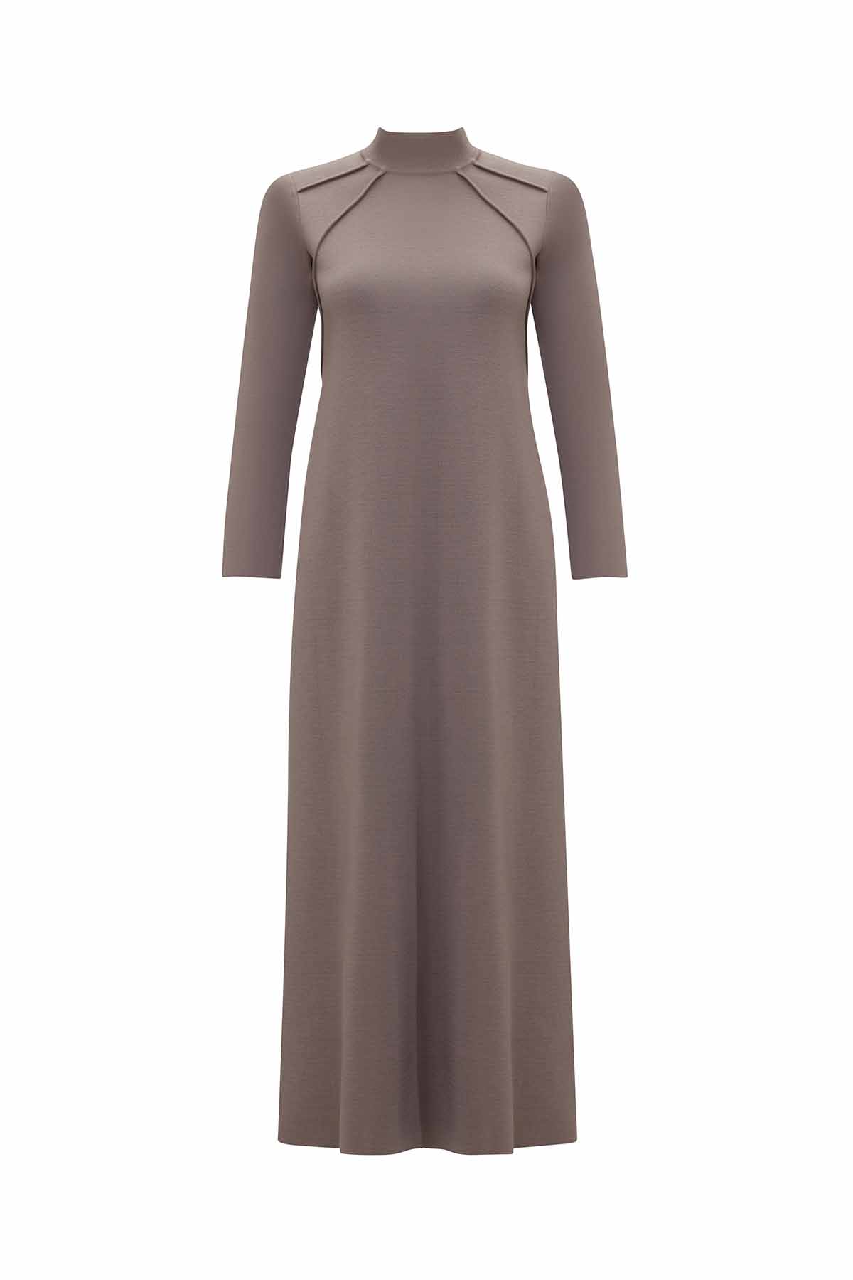 T26K-4014 Önü Örgü Teknikli Düz Renk Elbise CAPRI-MINK