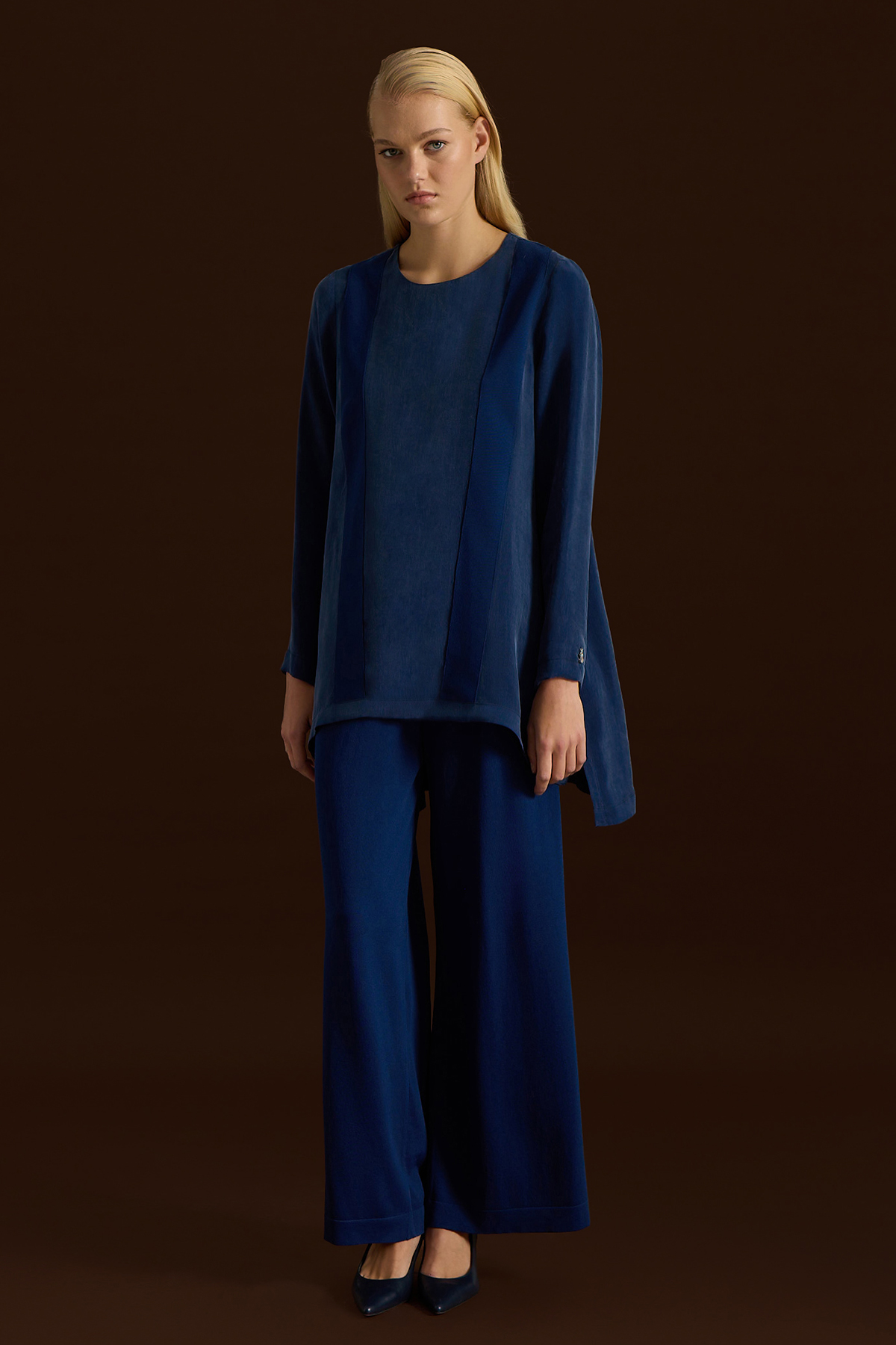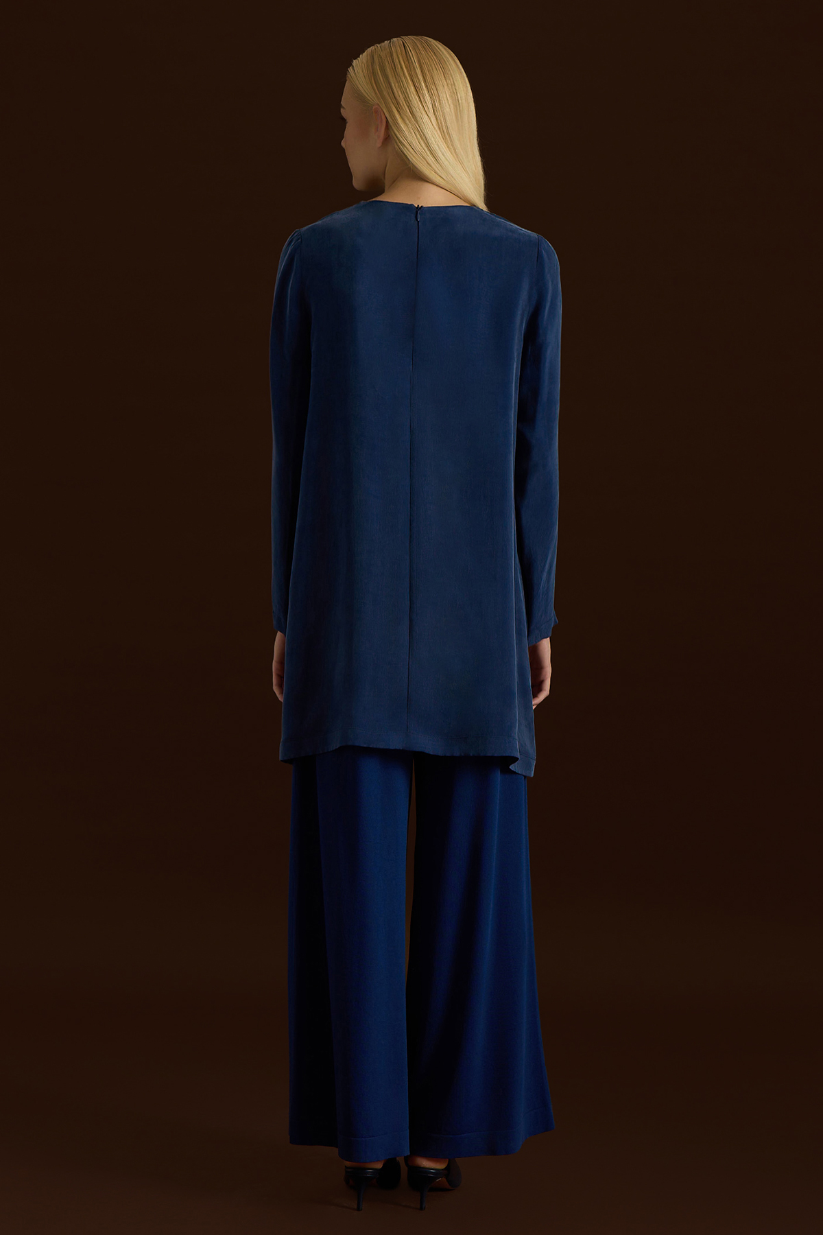 Cupro Tunic with Gathered Ankle Balloon Sleeves