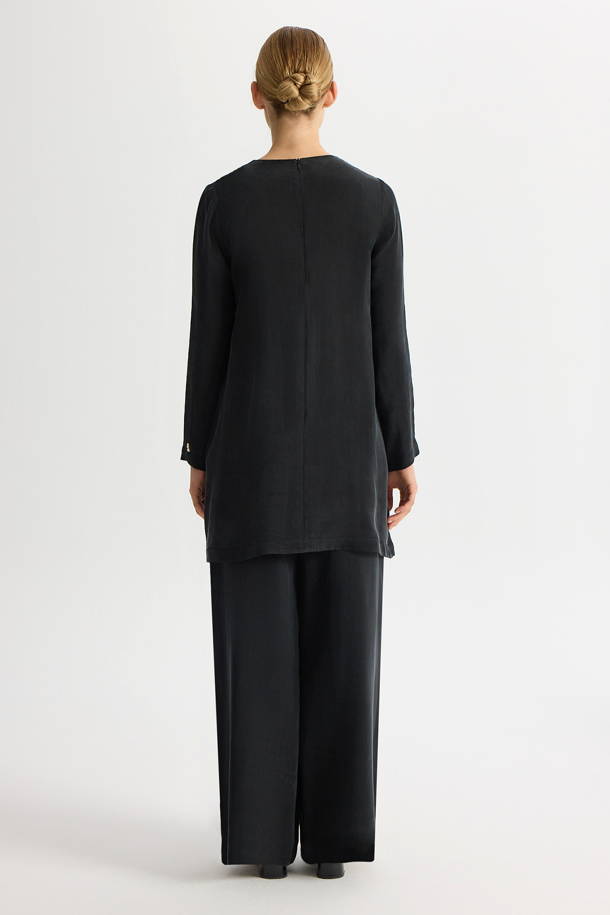 Cupro Tunic with Gathered Ankle Balloon Sleeves
