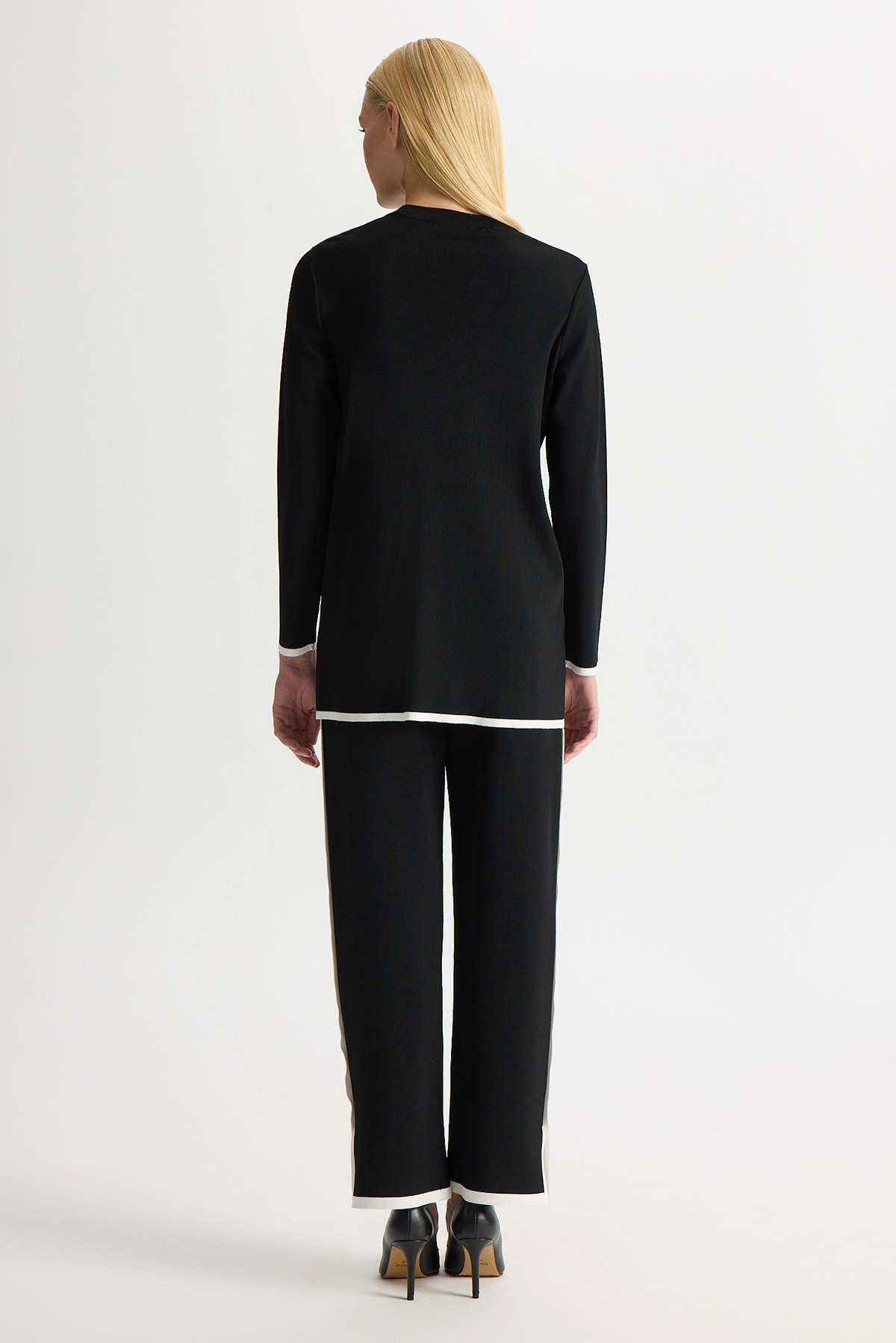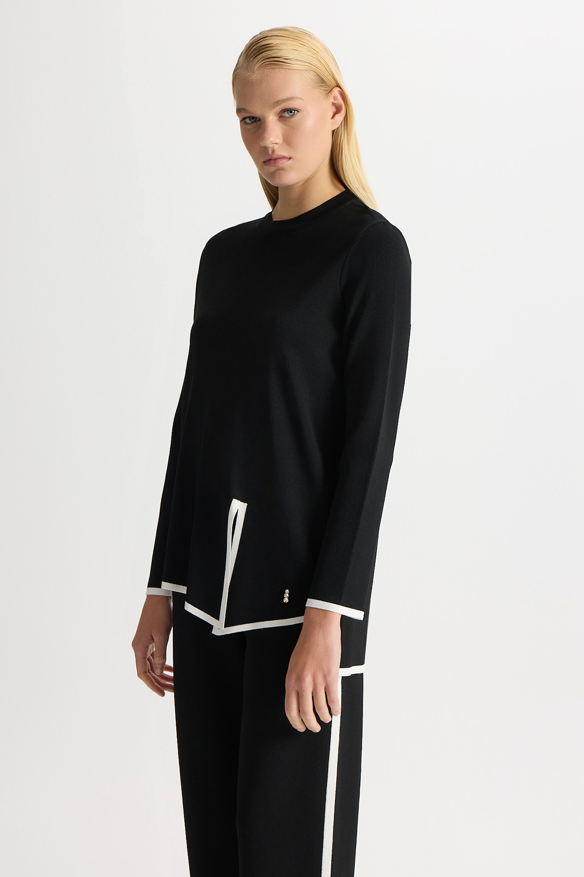 Önü Yırtmaç ve Tiktak Detaylı Triko Tunik Siyah