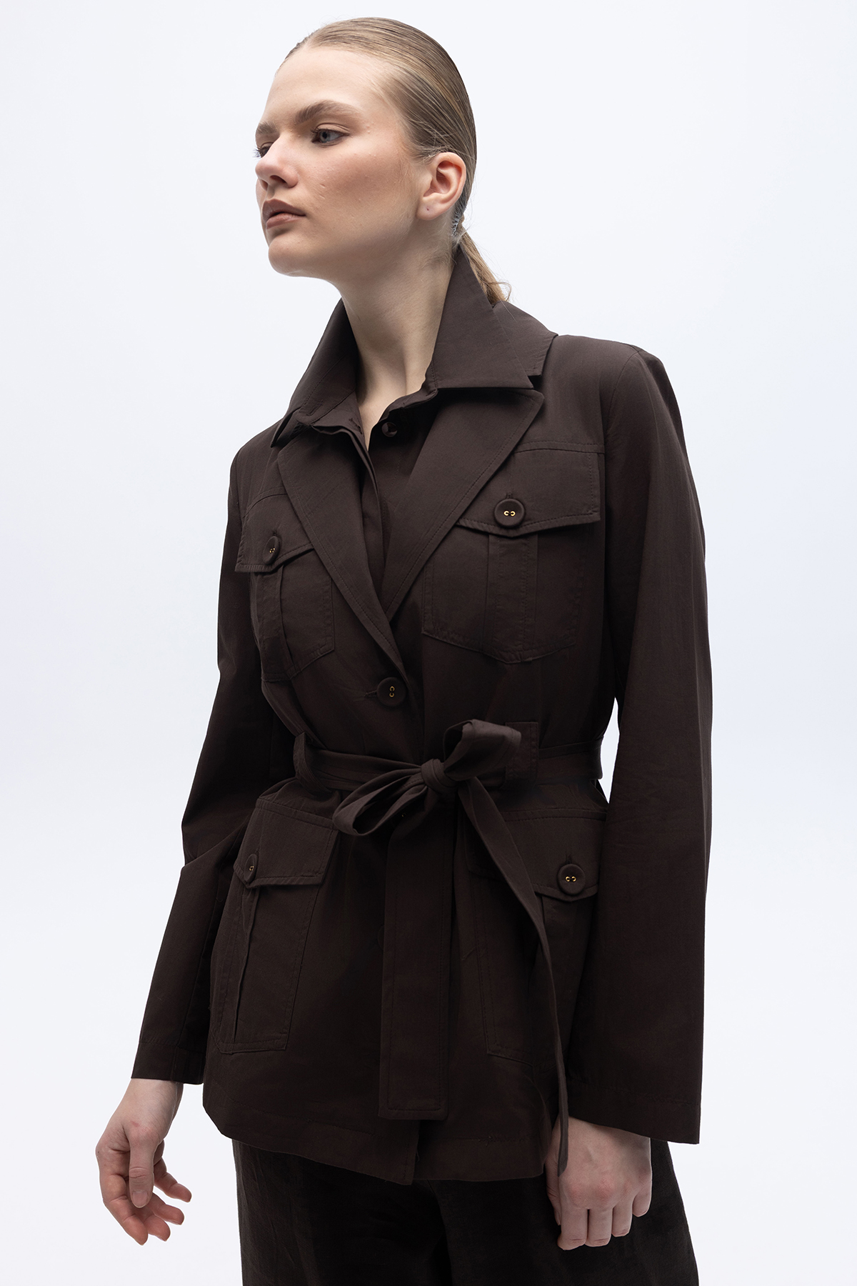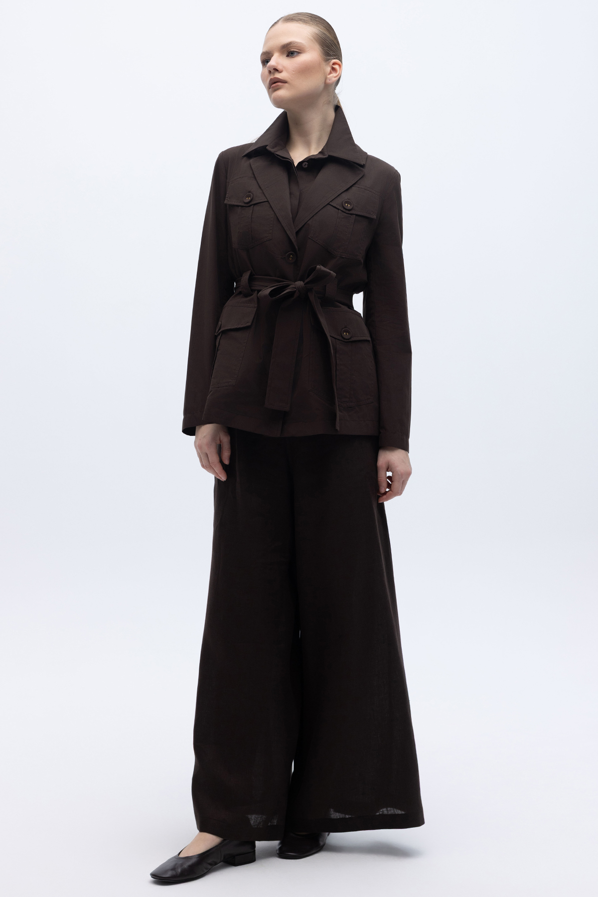 Pamuklu Kolsuz Yaka Gömlek Kahverengi