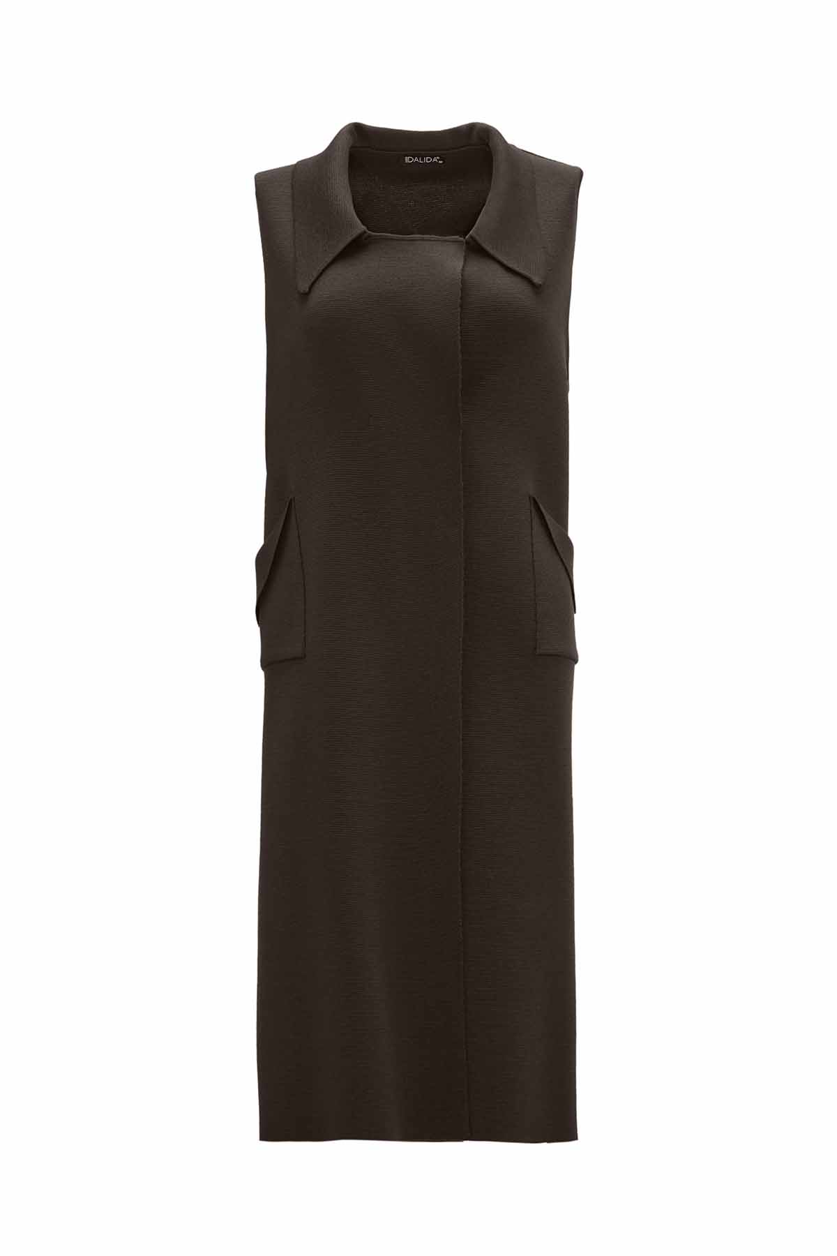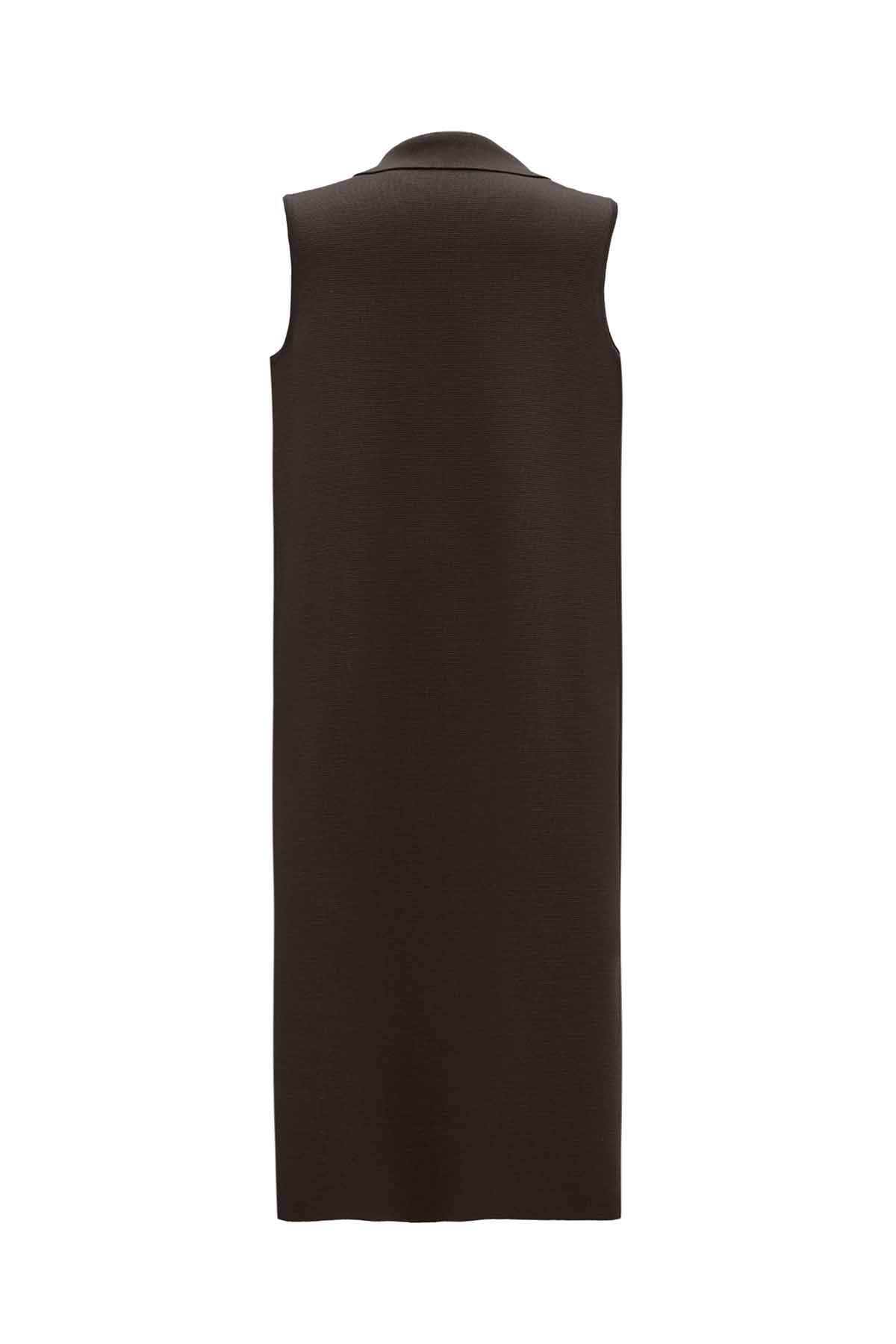 The Pocket Detailed Brown Knit Vest features functional pocket details for a modern look. Its soft knit fabric ensures all-day comfort. The warm brown color pairs effortlessly with various tops and accessories, ideal for both casual and office outfits.