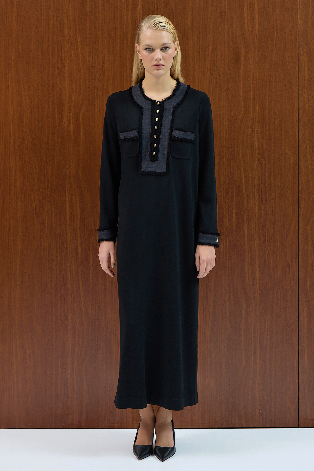 Knit Dress with Collar and Wrist Details