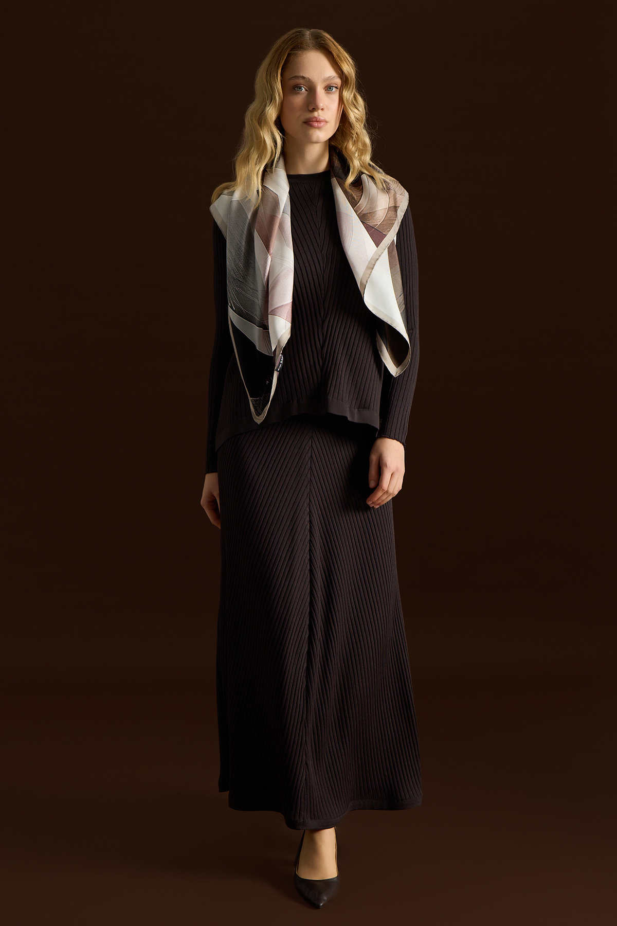 Rahat Kesim Fitilli Triko Etek Kahverengi