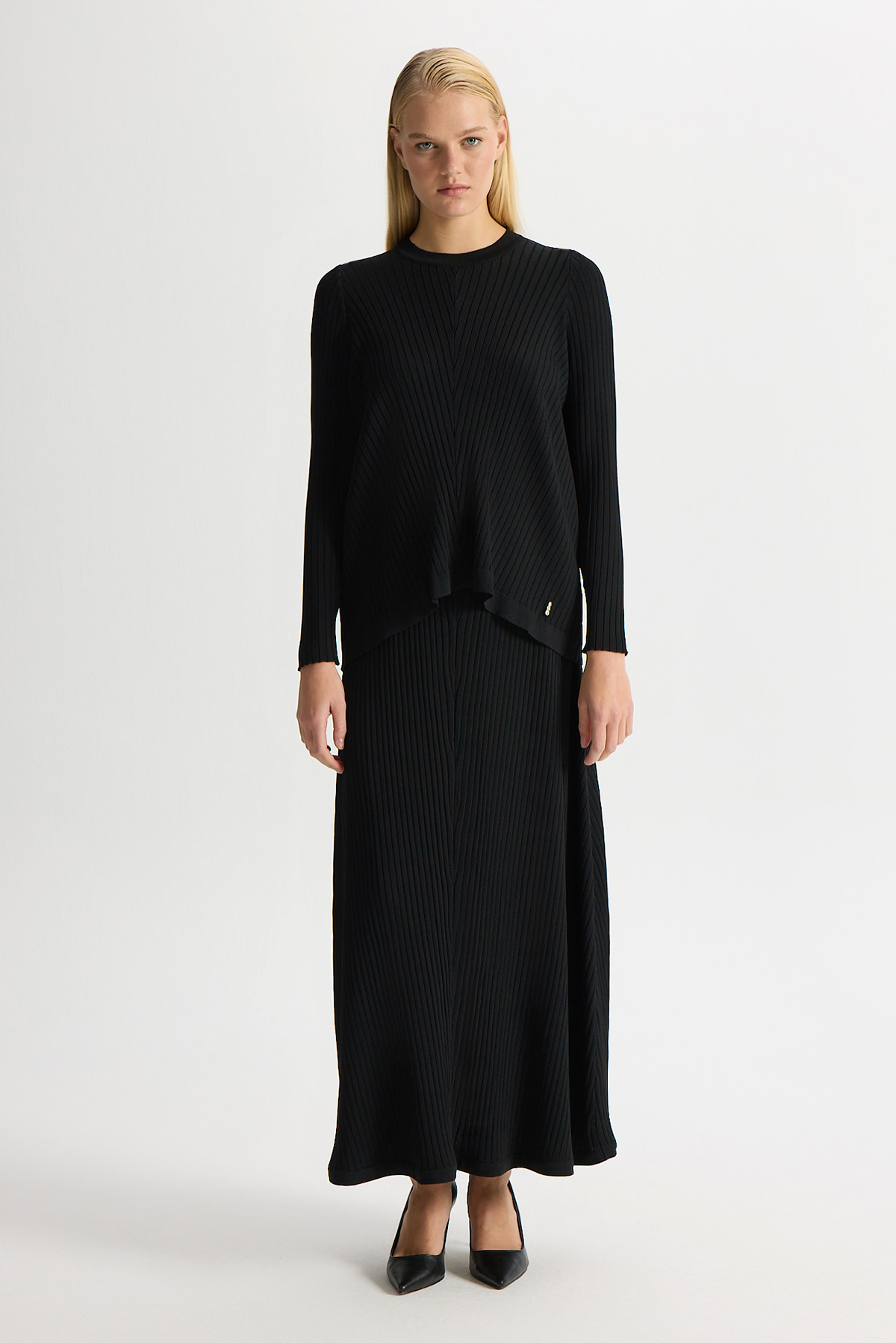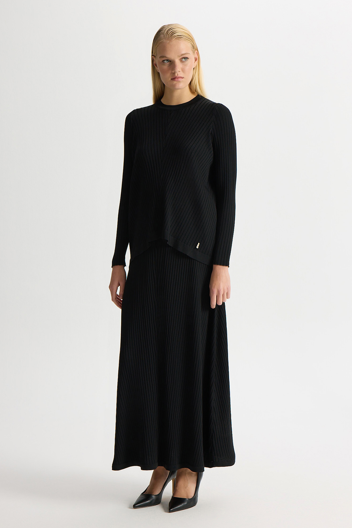 Relaxed Cut Ribbed Knit Skirt