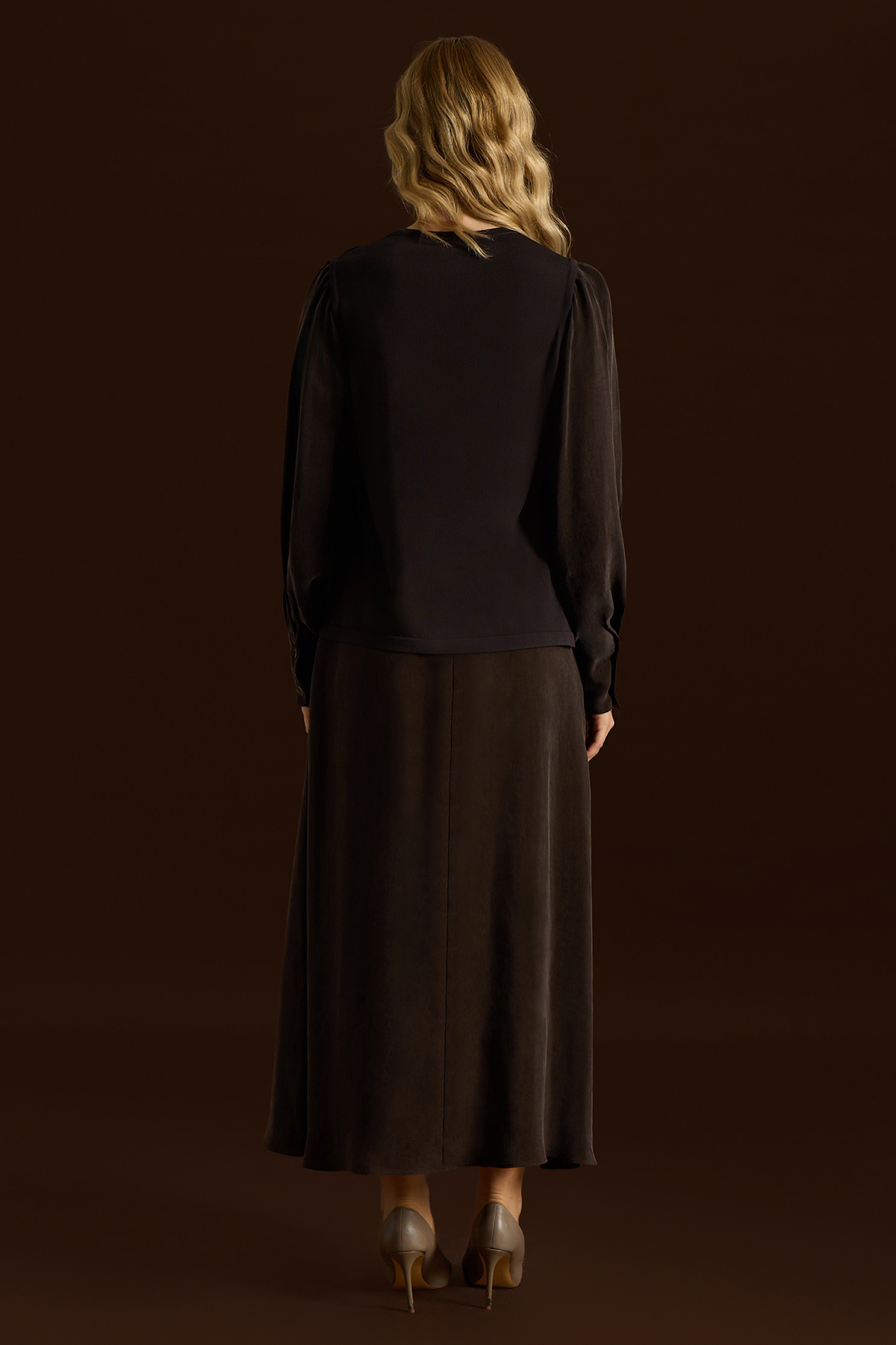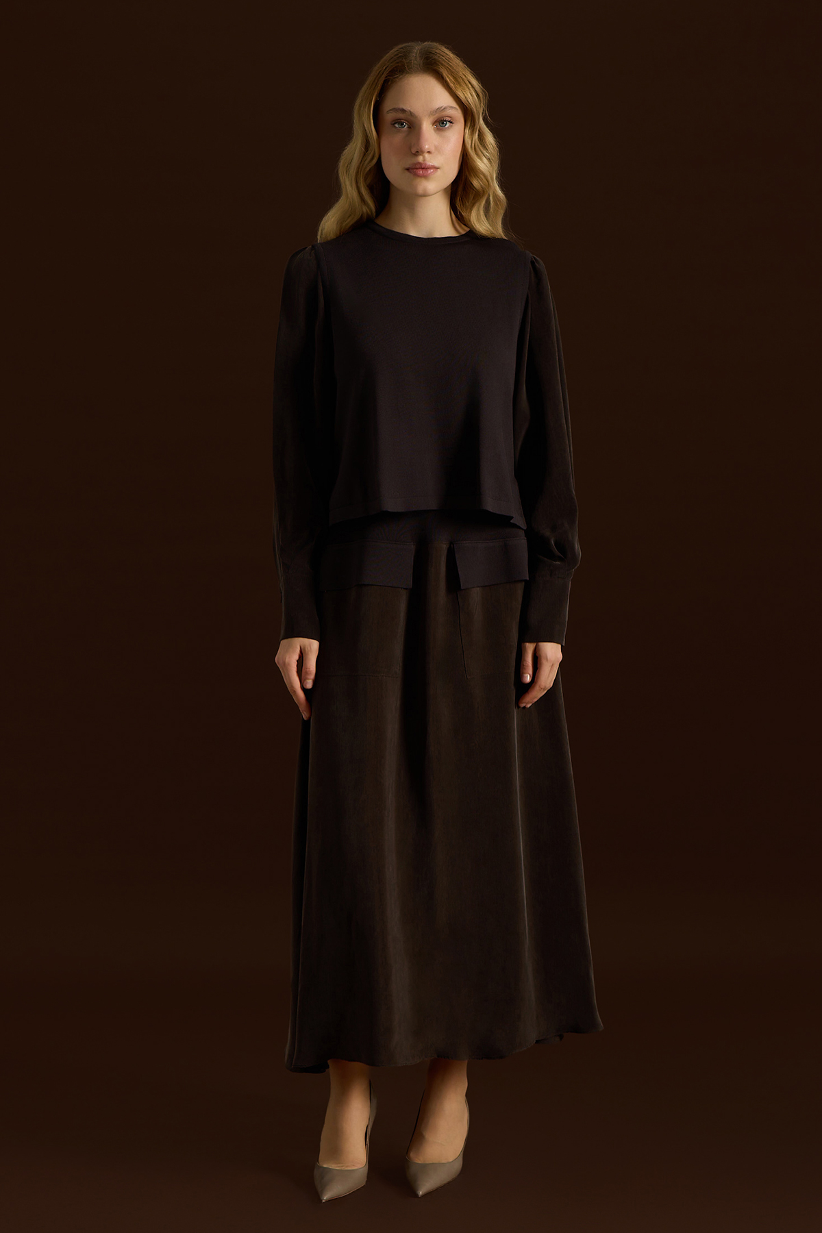 Cep Detaylı Cupro Etek Kahverengi