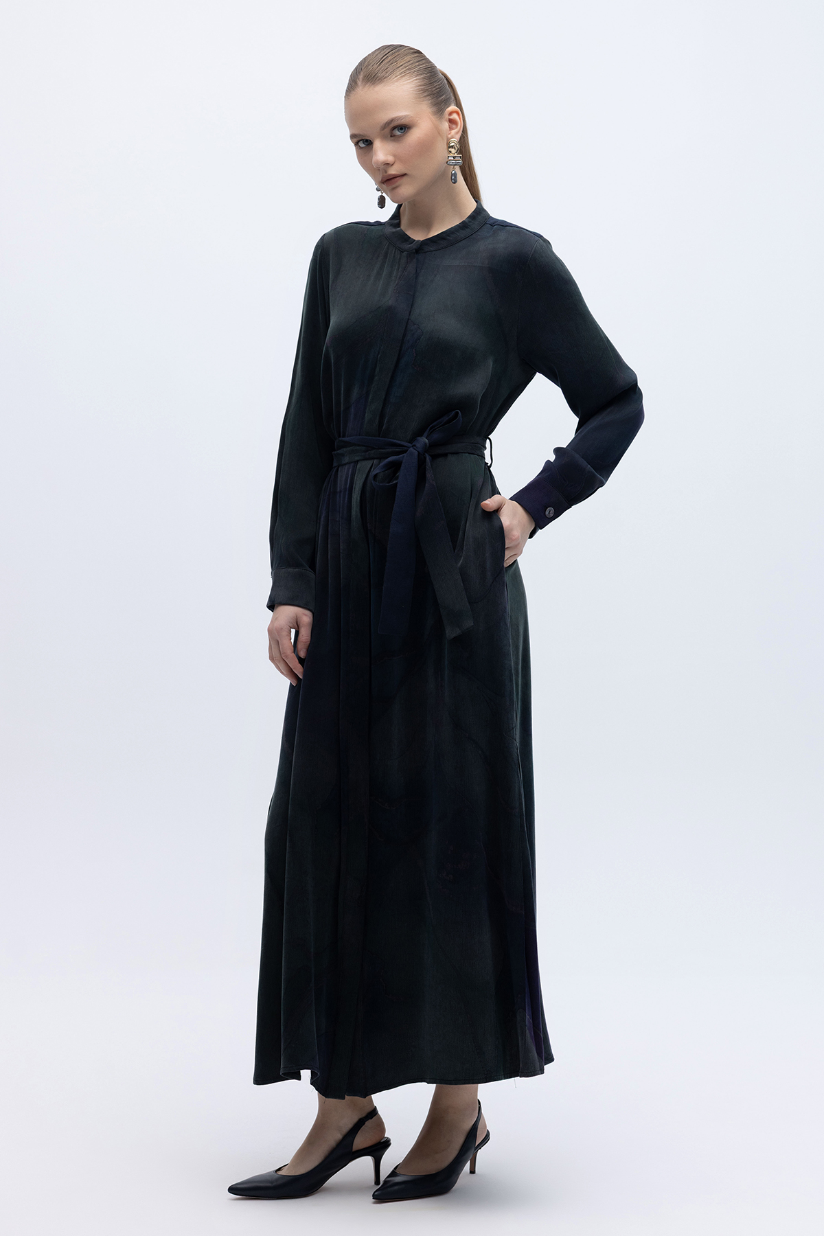 Renkli Uzun Kuşaklı Kap Lacivert