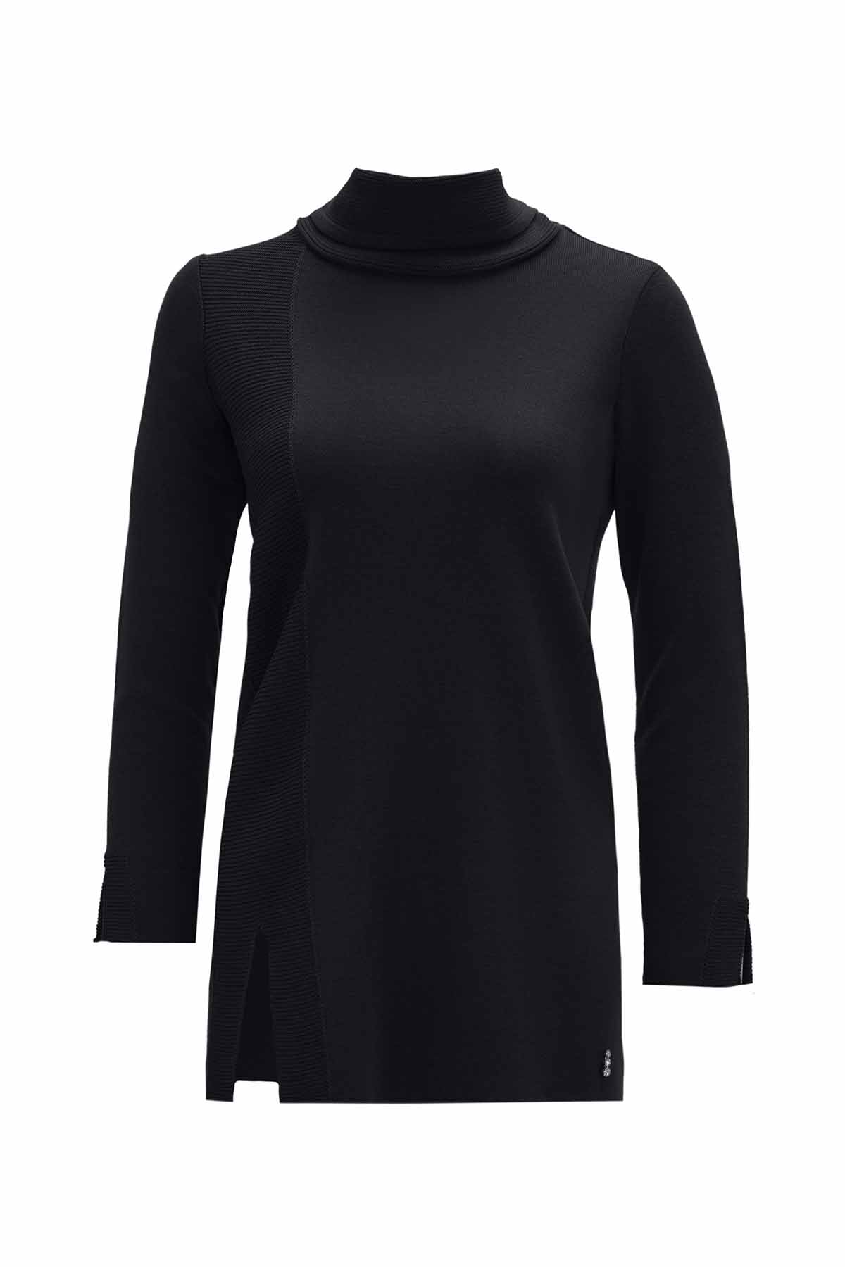 The ribbed knit turtleneck black tunic delivers a modern yet classic look. Crafted from soft knit fabric, it ensures comfort and warmth while maintaining an elegant silhouette. A versatile Miss Dalida design perfect for every occasion.