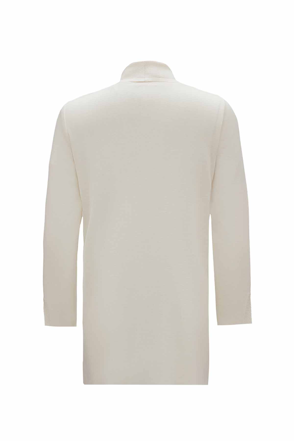The ribbed knit turtleneck ecru tunic offers a soft and elegant look, perfect for layering or wearing on its own. Its minimal tone and cozy texture bring timeless sophistication to any outfit, designed by Miss Dalida for modern comfort.