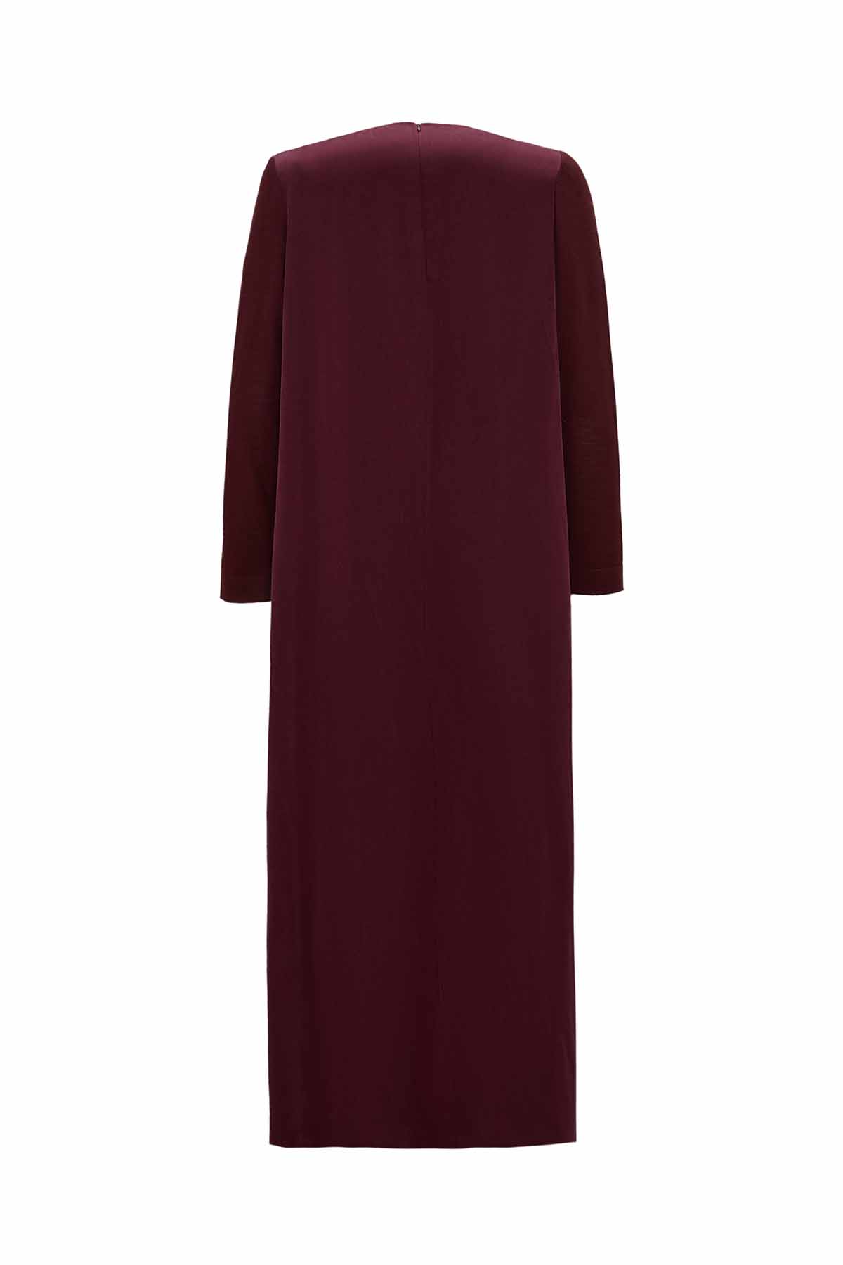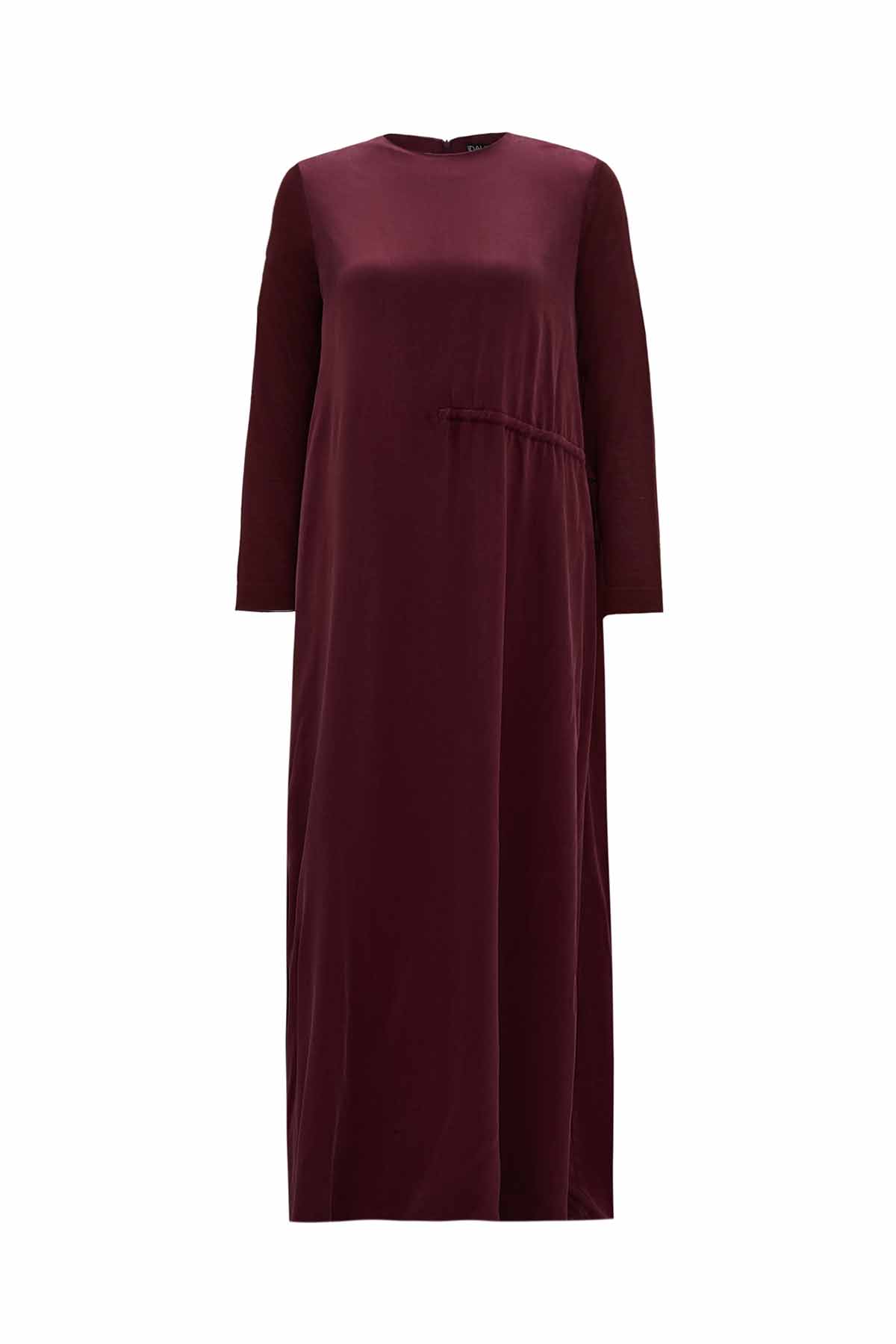 The Ruched Waist Dark Burgundy Cupro Dress features a ruched waist detail for a modern and feminine silhouette. Its soft cupro fabric ensures all-day comfort. The rich burgundy color pairs effortlessly with various accessories, ideal for both office and casual outfits.
