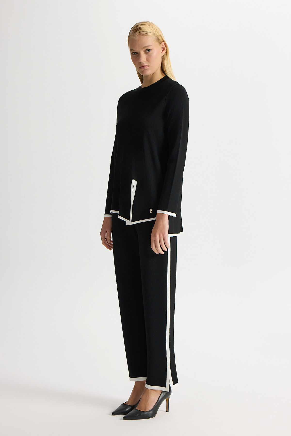 Şerit Detaylı Triko Pantolon Siyah