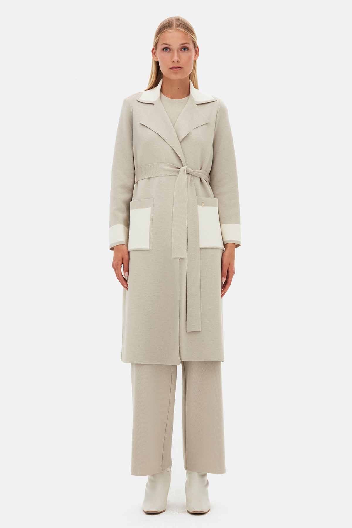 The Shirt-Collar Knit Cardigan with Color Details in Stone combines elegance and comfort through its soft knit texture and stylish color accents. The stone shade provides a refined, natural look that pairs effortlessly with both casual and sophisticated outfits. A versatile layering piece perfect for enhancing everyday style.