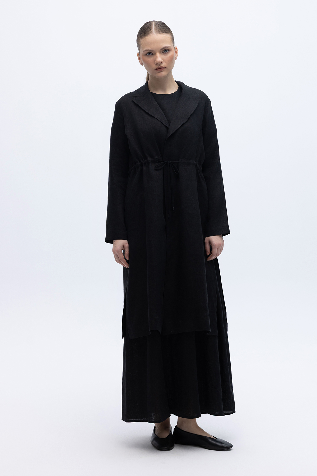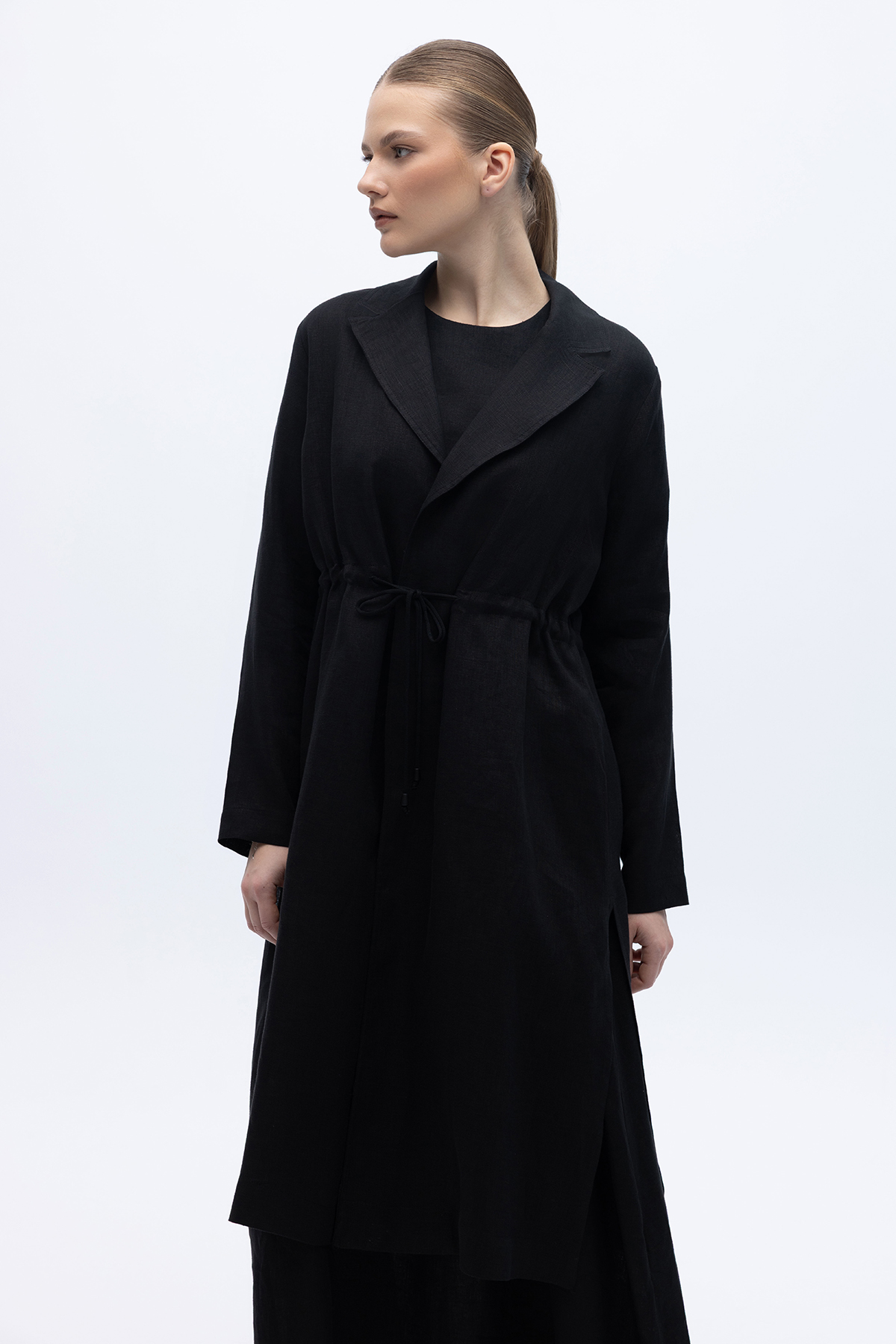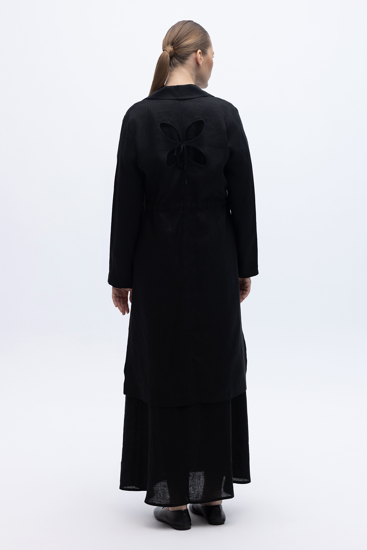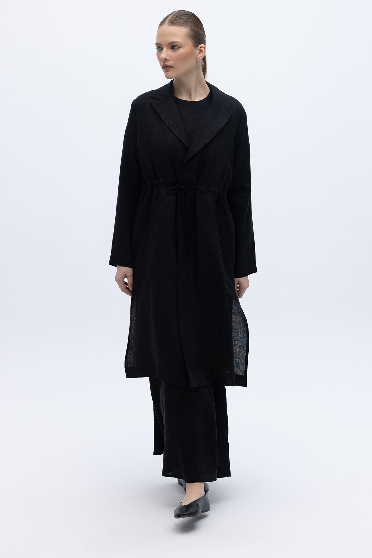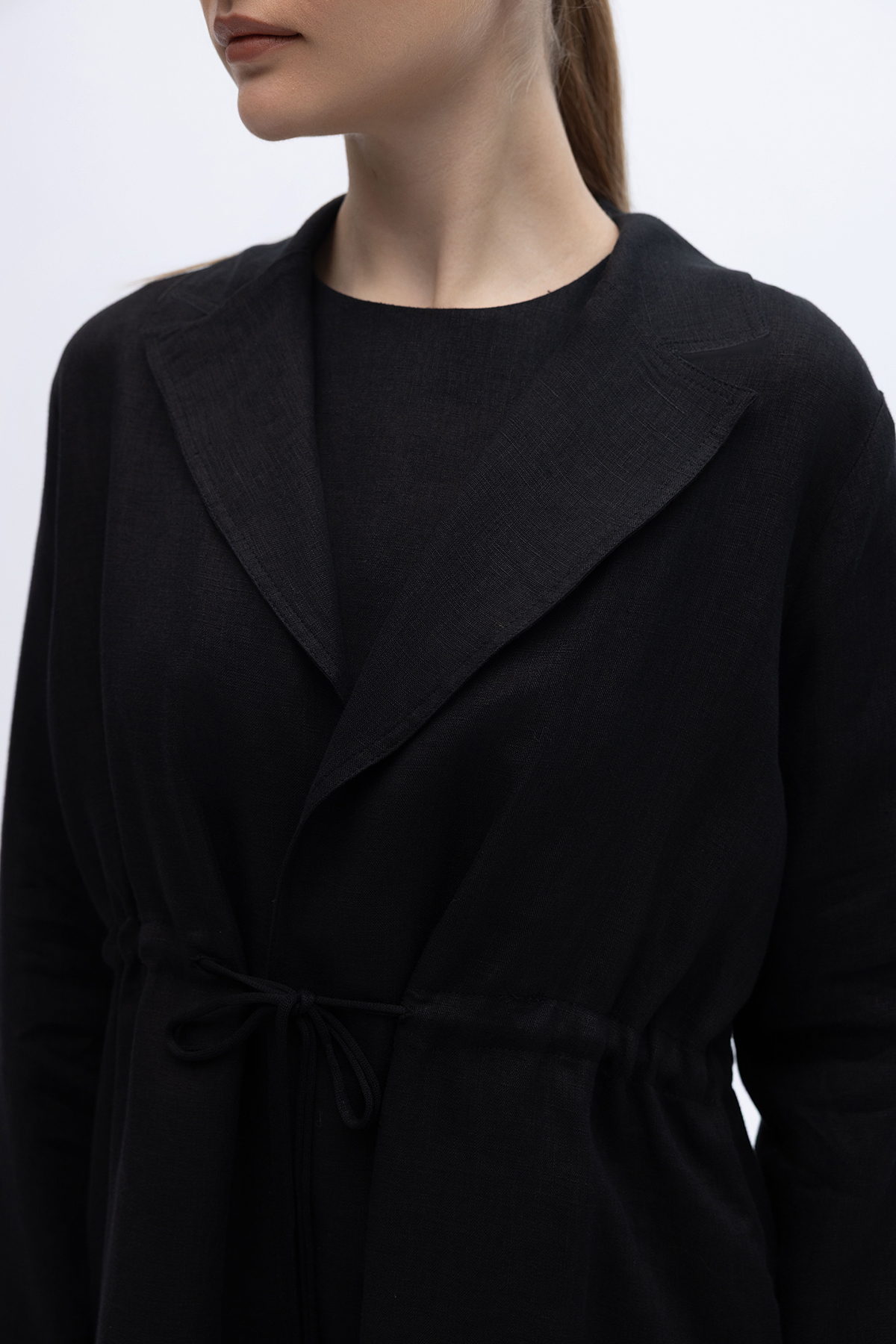 Sırt Detaylı Beli Büzgülü Keten Ceket Siyah