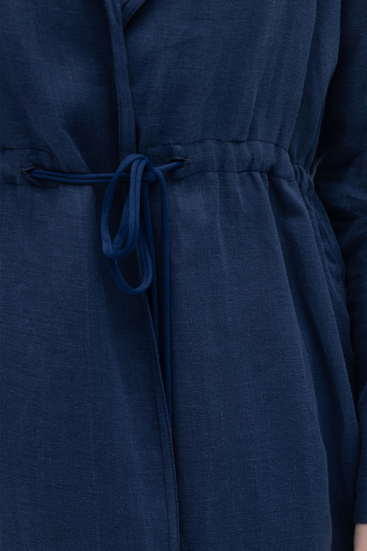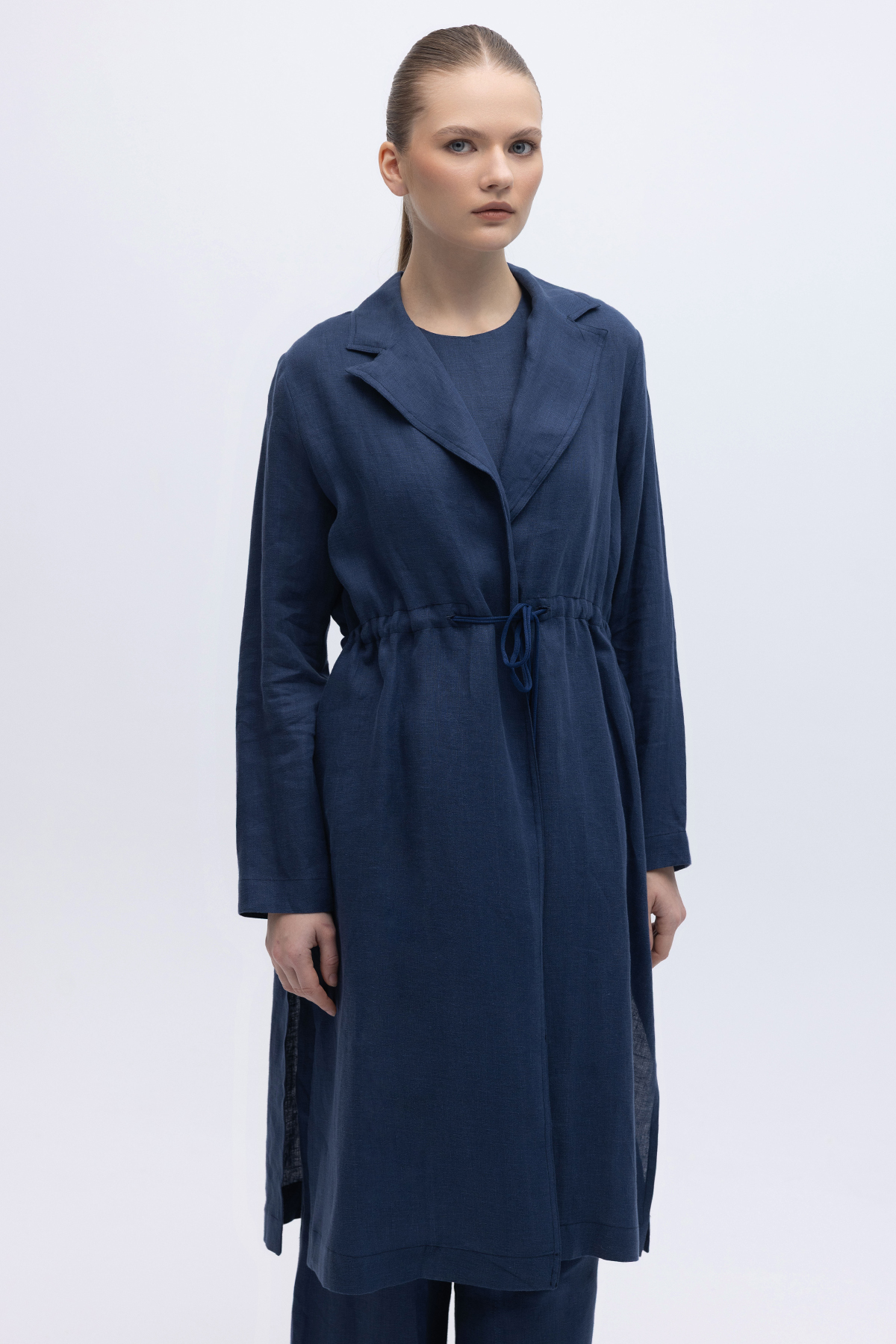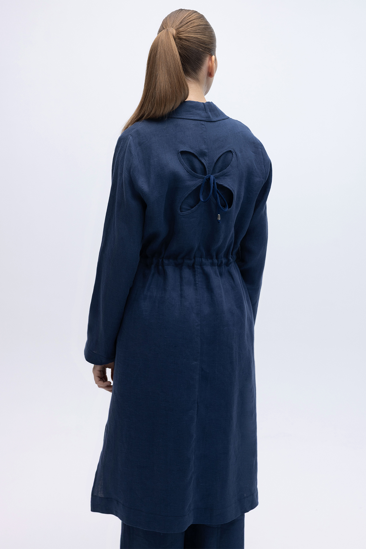 Sırt Detaylı Beli Büzgülü Keten Ceket Navy