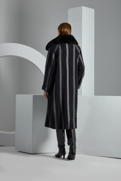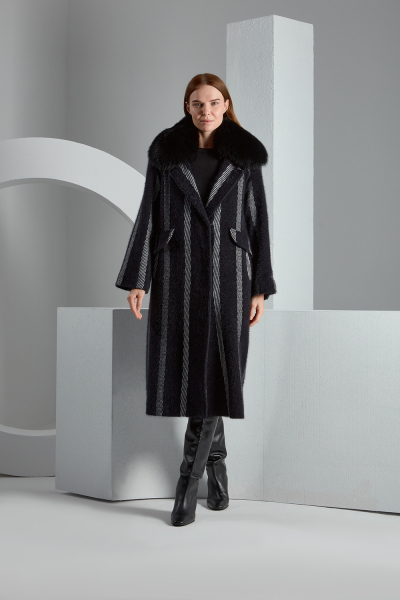 T23K-8003 Kürk Yaka Yumoş Manto BLACK / PONGO-VİOLET