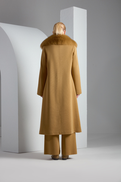 T23K-8007 Kürk Yaka Uzun Triko Manto DACIA-OLİVE