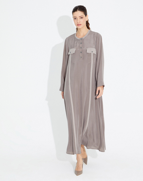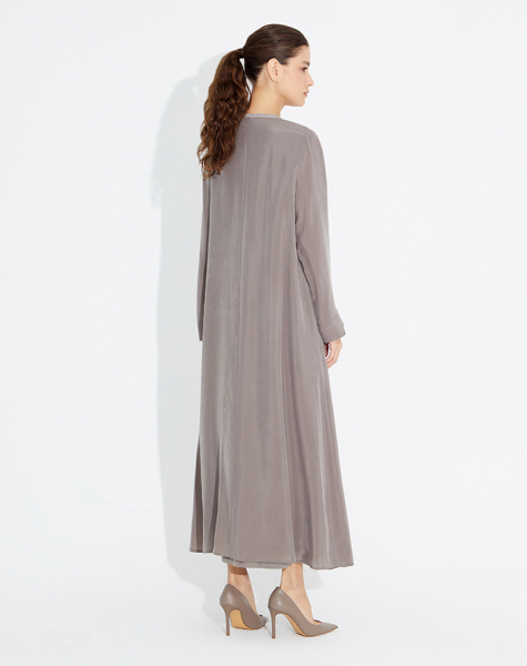 Yakası Taş Düğmeli Uzun Kupra Ta� Elbise