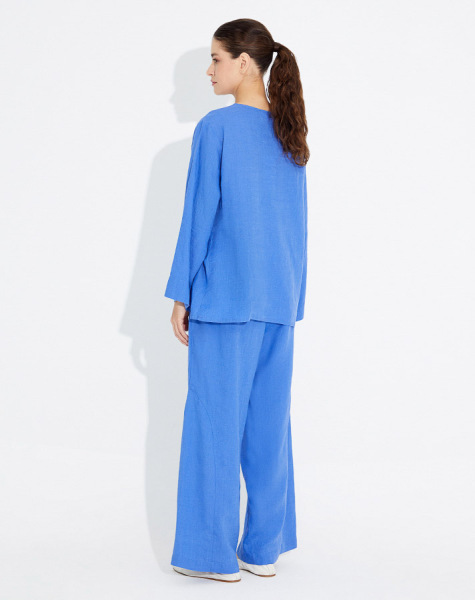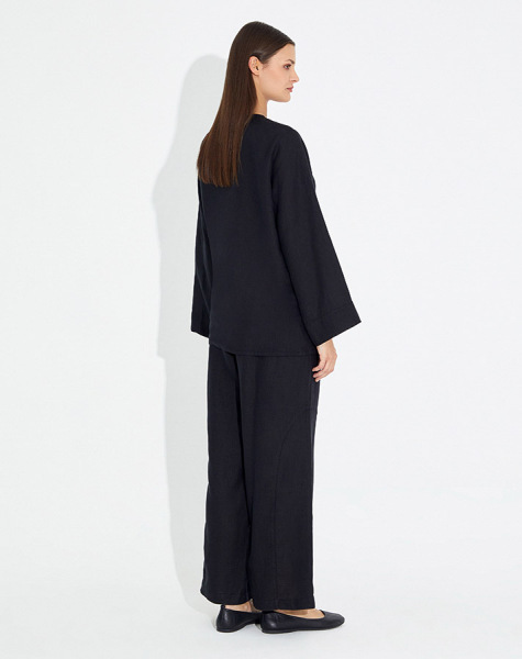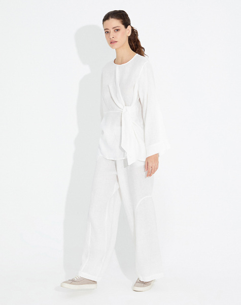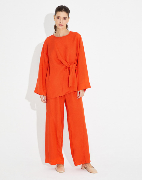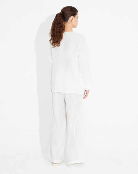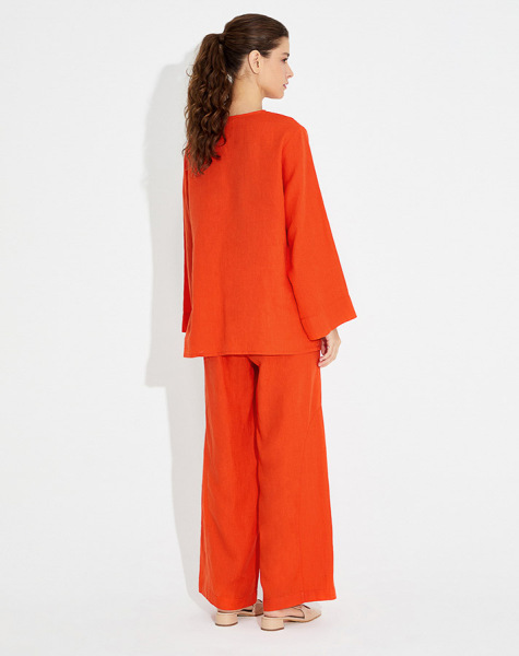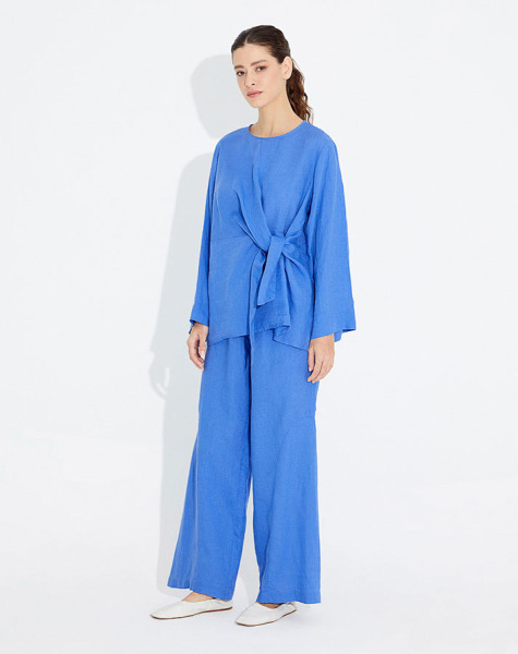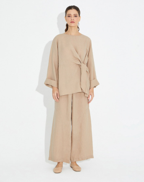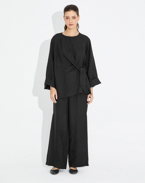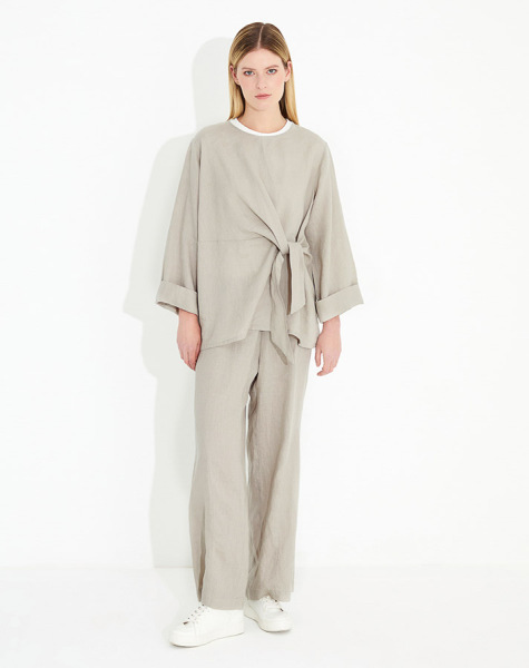T23Y-7009 Paçası Dikiş Detaylı Bol Keten Pantolon GREY