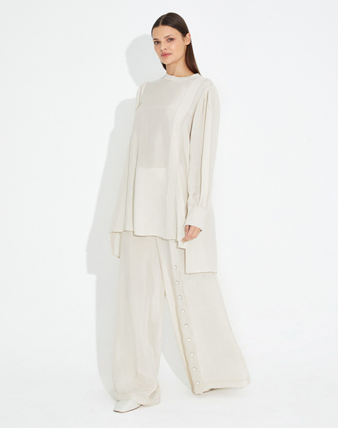 T23Y-7010 Düğme Detaylı Bol Paça Kupra Pantolon STONE