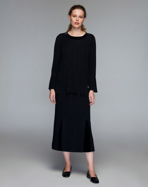 T25K-2008 A Kesim Düğme Detaylı Etek BLACK