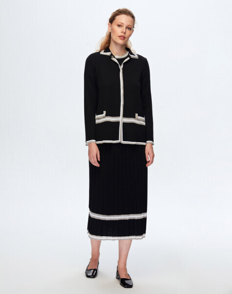 T25Y-9014 Cupro Detaylı Top Düğmeli Triko Hırka BLACK