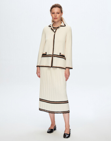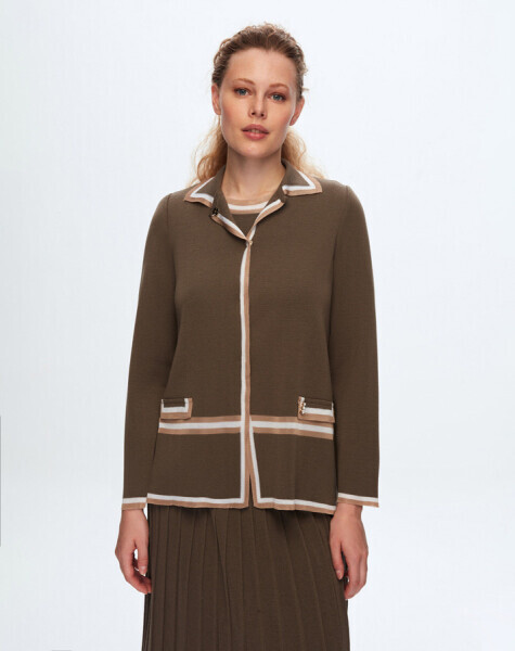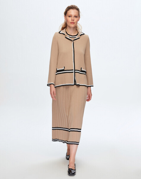 T24K-9009 Taş Şeritli Triko Uzun Hırka COMO-CAREMEL