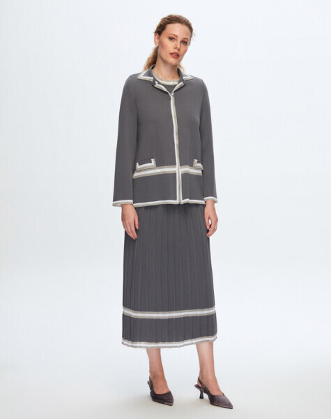 T25K-6021 Saç Örgü Dik Yaka Triko Tunik VİALE-GREY